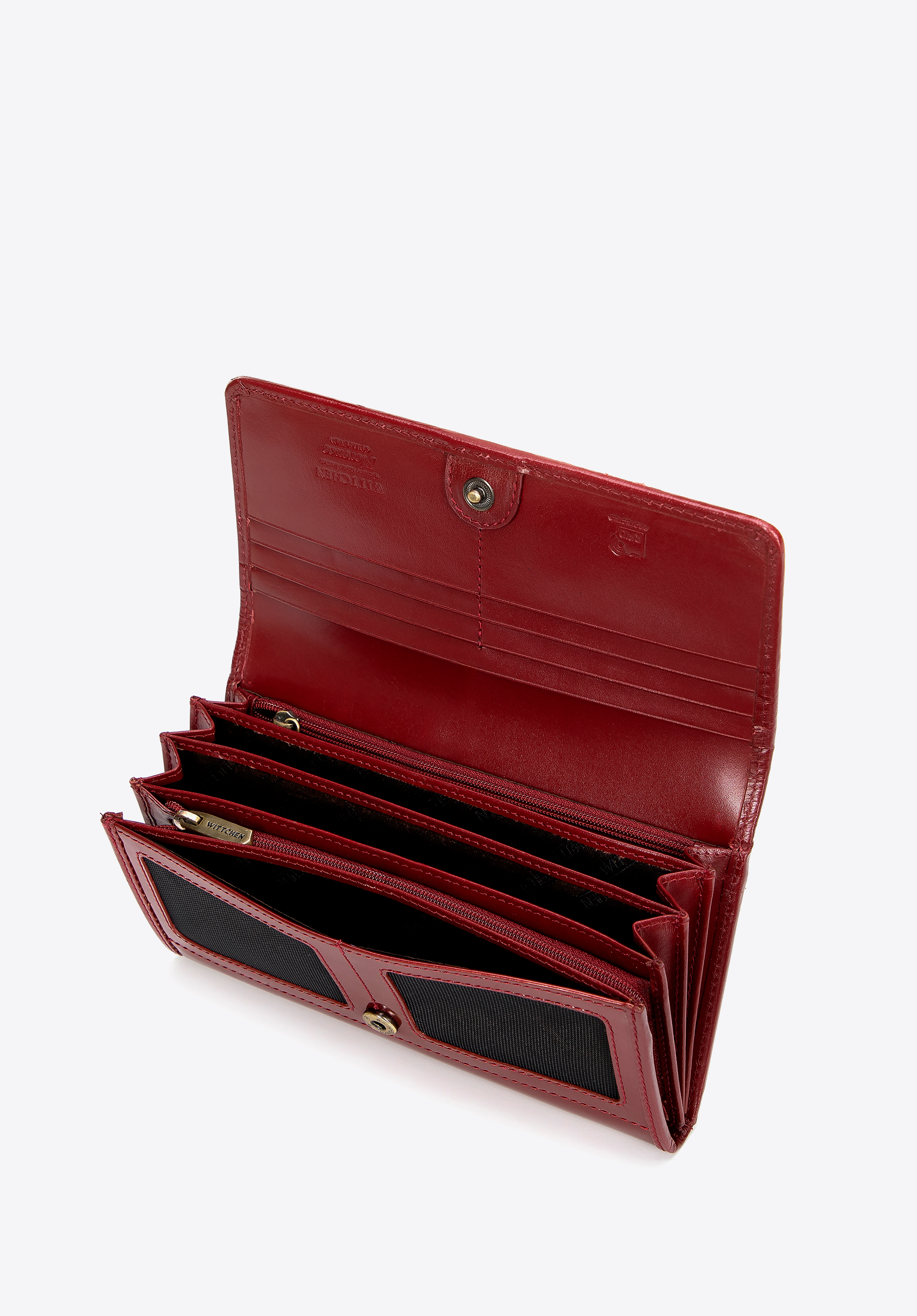 Az elegáns és fényes WITTCHEN női pénztárca tökéletes választás a modern nő számára, aki értékeli a stílust és a funkcionalitást. A legjobb minőségű természetes lakkbőrből készült pénztárca finom fényével tűnik ki, kifinomult karaktert adva neki. Ezenkívül innovatív RFID-blokkoló burkolattal rendelkezik, amely megvédi kártyáit a jogosulatlan szkenneléstől a fokozott biztonság érdekében a mindennapi használat során.