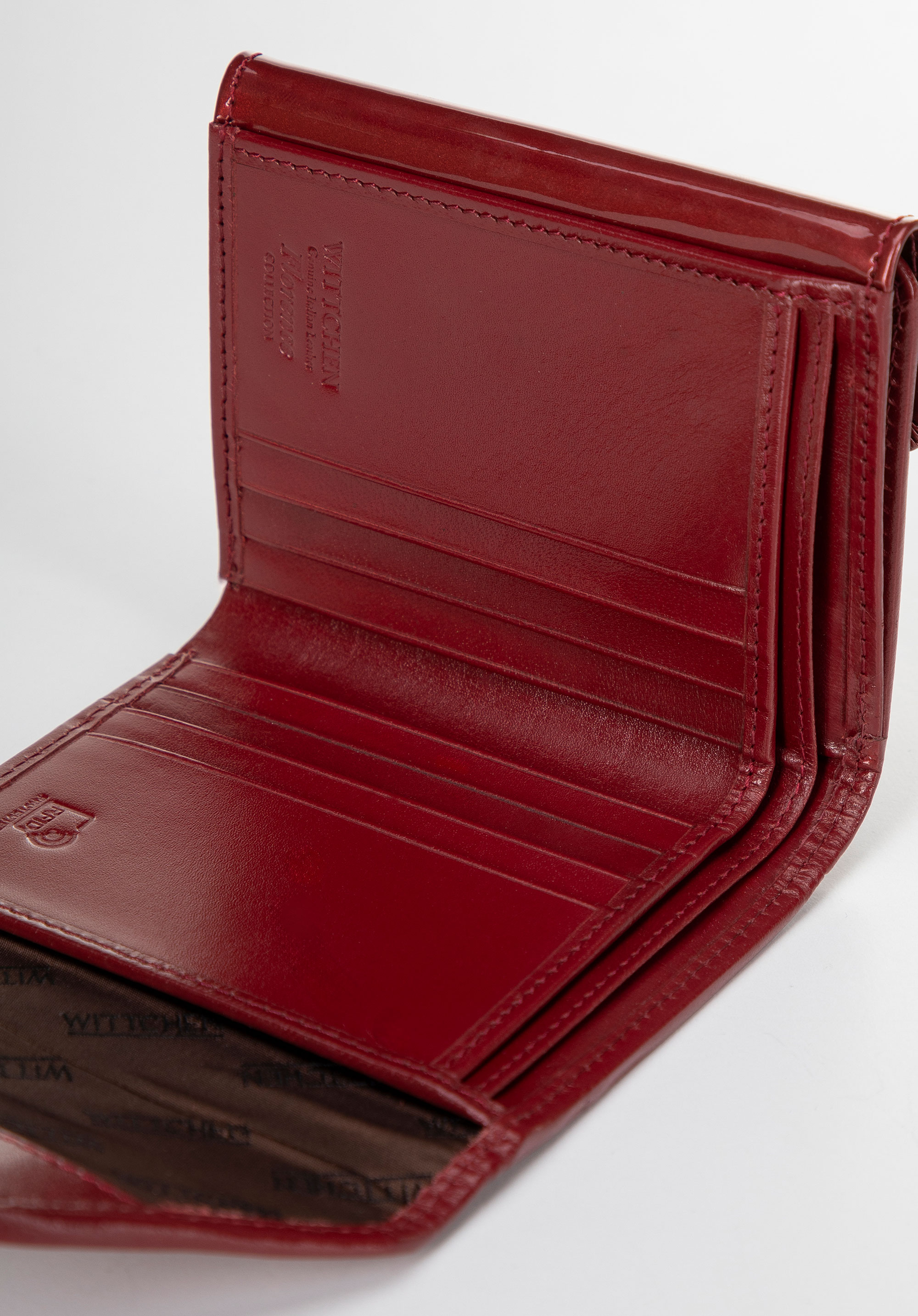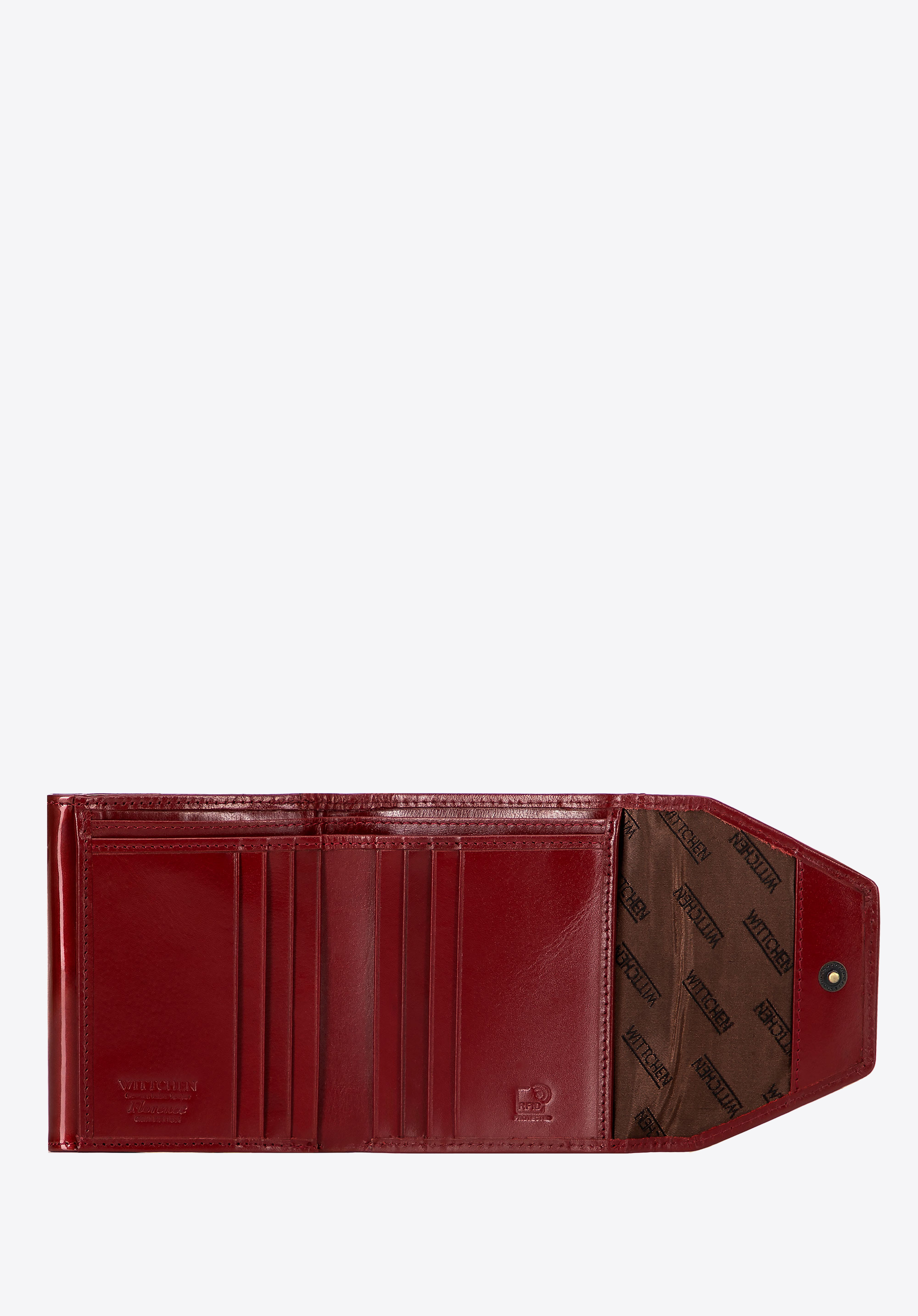 - Egyedülálló design: A festett bőr és a WITTCHEN címer formájú, antik megjelenésű, arany színű díszítés kiemeli a pénztárca luxus jellegét.