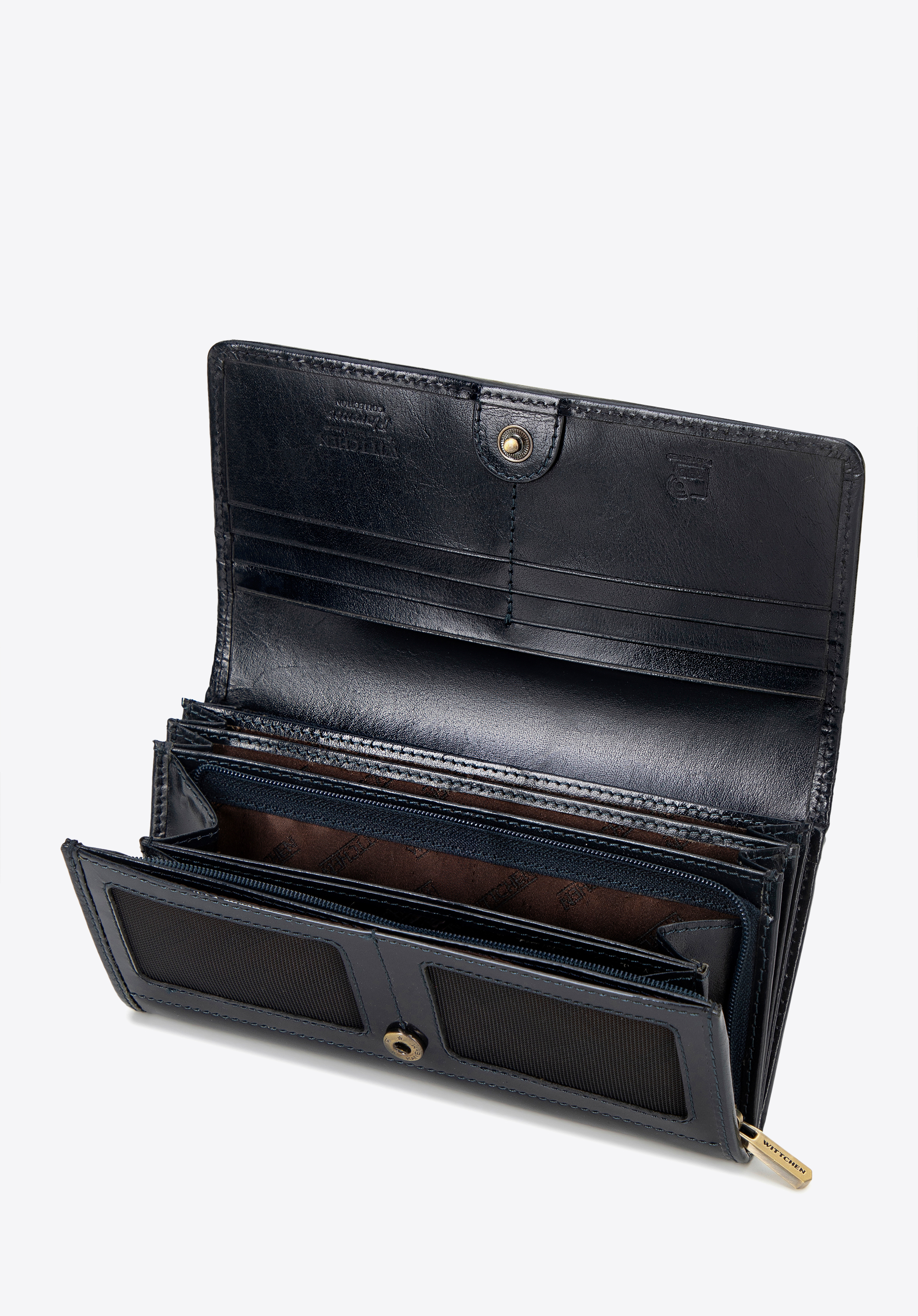 Az elegáns és fényes WITTCHEN női pénztárca tökéletes választás a modern nő számára, aki értékeli a stílust és a funkcionalitást. A legjobb minőségű természetes lakkbőrből készült pénztárca finom fényével tűnik ki, kifinomult karaktert adva neki. Ezenkívül innovatív RFID-blokkoló burkolattal rendelkezik, amely megvédi kártyáit a jogosulatlan szkenneléstől a fokozott biztonság érdekében a mindennapi használat során.