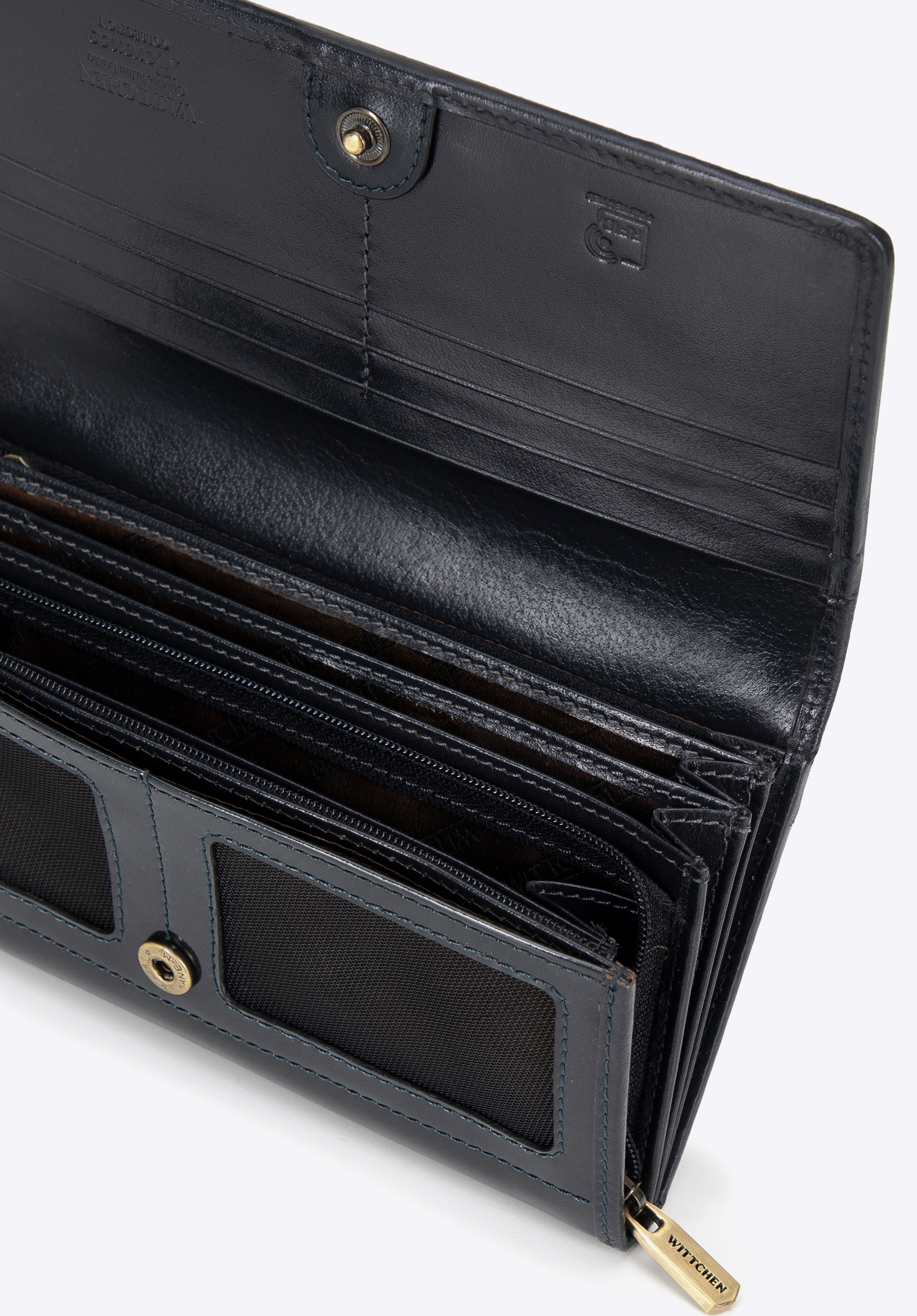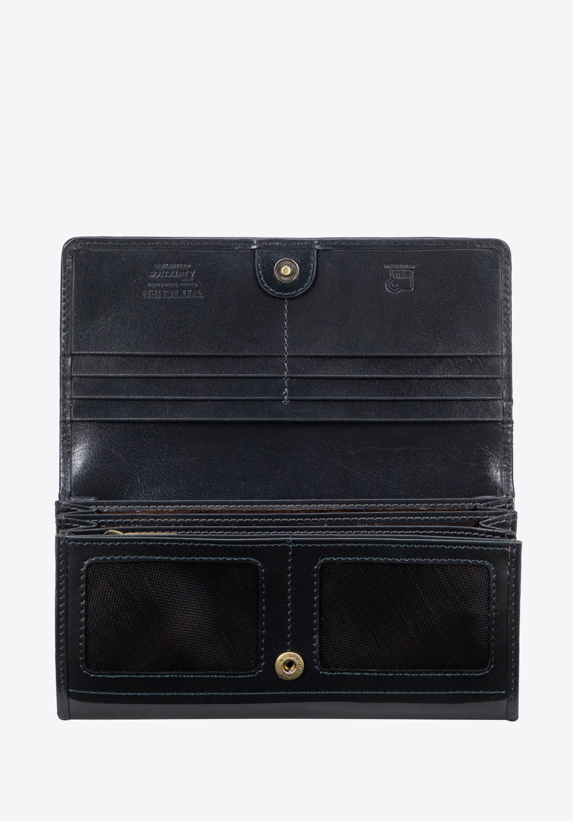 Az elegáns és fényes WITTCHEN női pénztárca tökéletes választás a modern nő számára, aki értékeli a stílust és a funkcionalitást. A legjobb minőségű természetes lakkbőrből készült pénztárca finom fényével tűnik ki, kifinomult karaktert adva neki. Ezenkívül innovatív RFID-blokkoló burkolattal rendelkezik, amely megvédi kártyáit a jogosulatlan szkenneléstől a fokozott biztonság érdekében a mindennapi használat során.