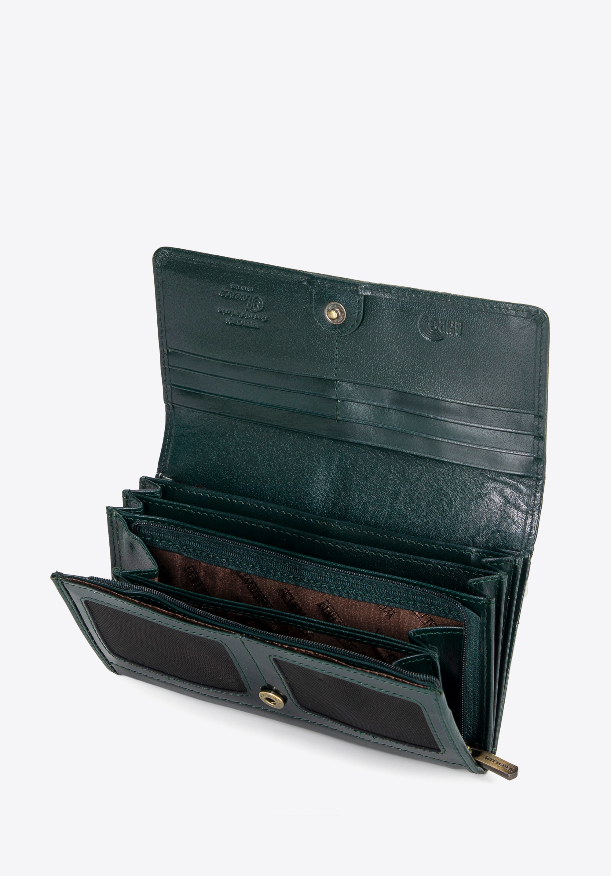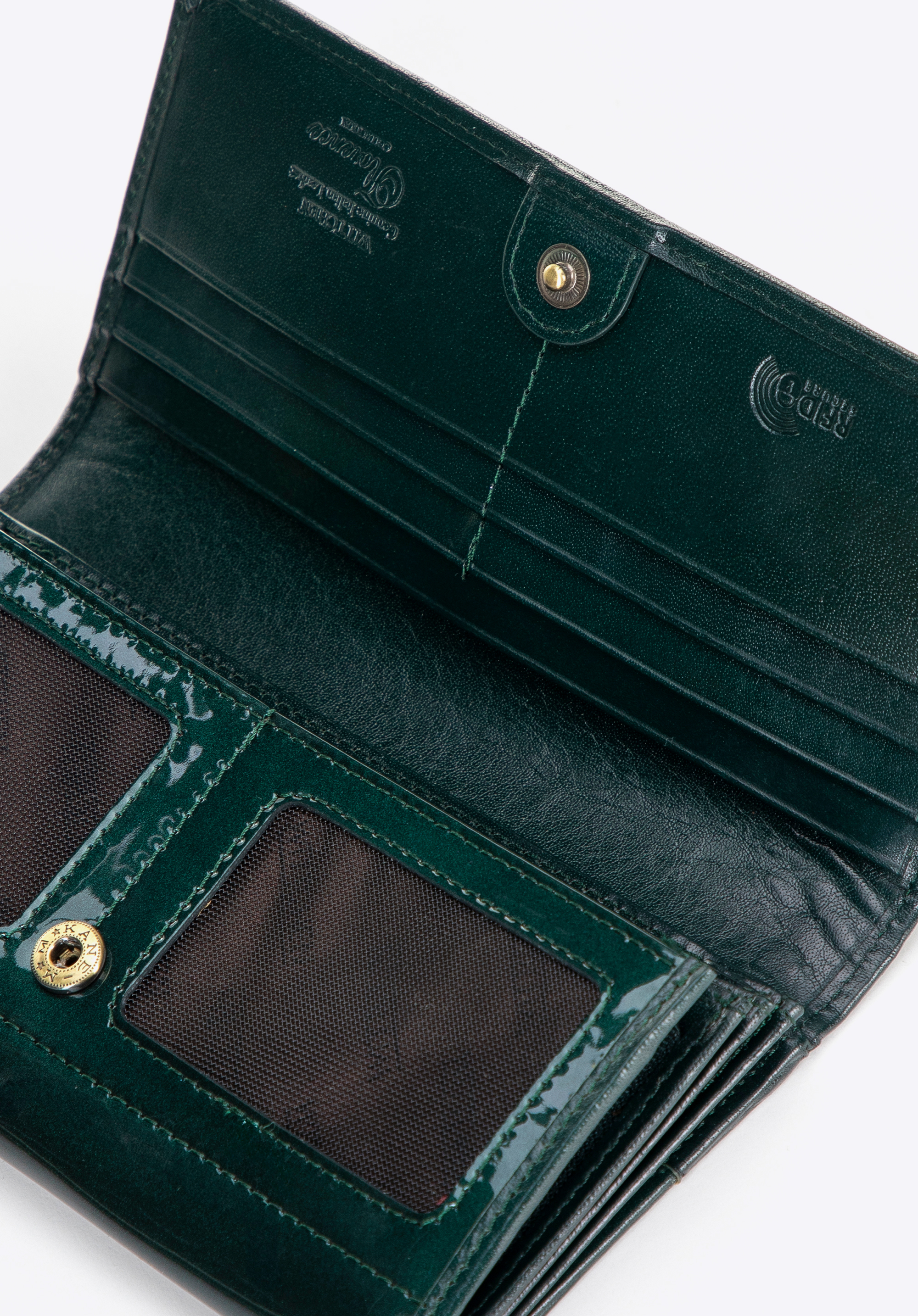Az elegáns és fényes WITTCHEN női pénztárca tökéletes választás a modern nő számára, aki értékeli a stílust és a funkcionalitást. A legjobb minőségű természetes lakkbőrből készült pénztárca finom fényével tűnik ki, kifinomult karaktert adva neki. Ezenkívül innovatív RFID-blokkoló burkolattal rendelkezik, amely megvédi kártyáit a jogosulatlan szkenneléstől a fokozott biztonság érdekében a mindennapi használat során.