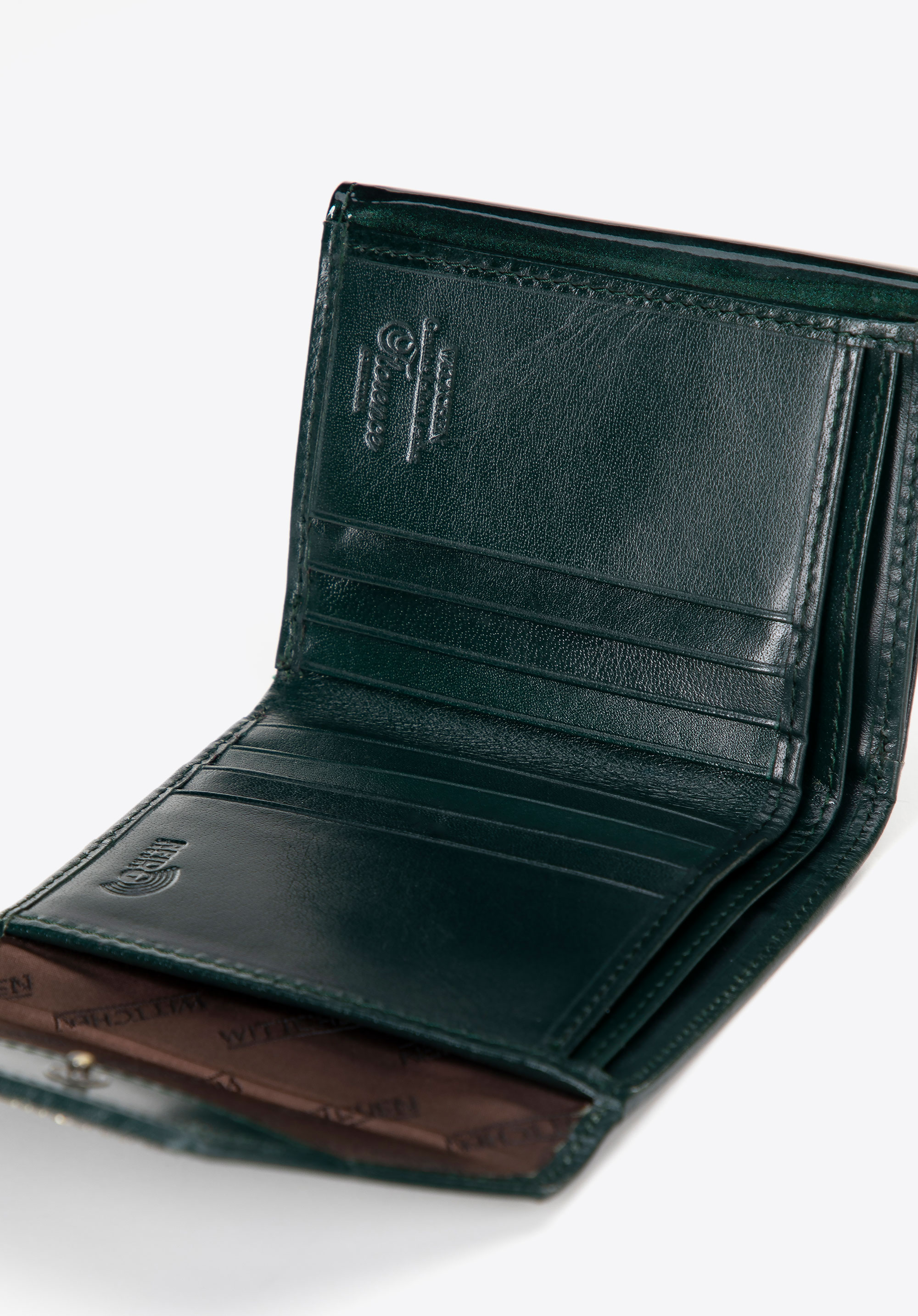 - Egyedülálló design: A festett bőr és a WITTCHEN címer formájú, antik megjelenésű, arany színű díszítés kiemeli a pénztárca luxus jellegét.
