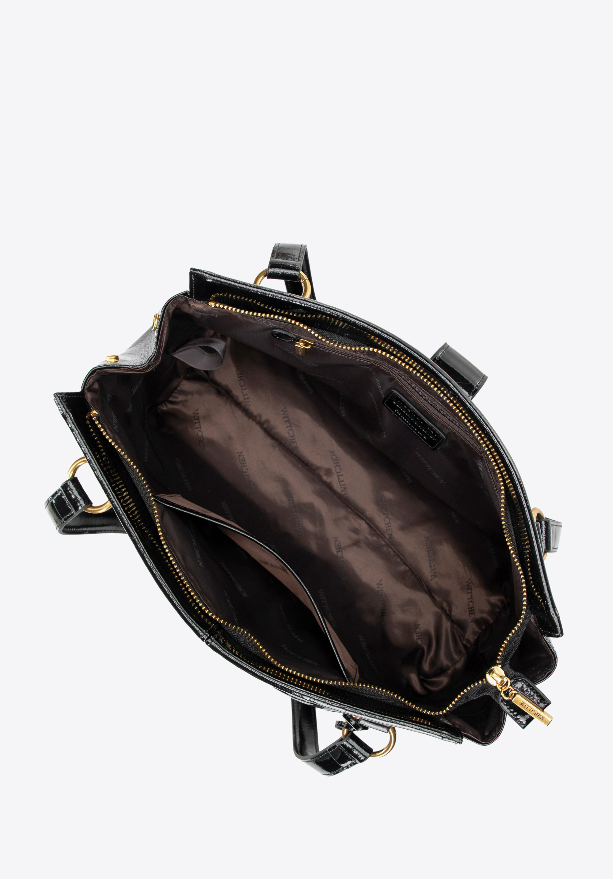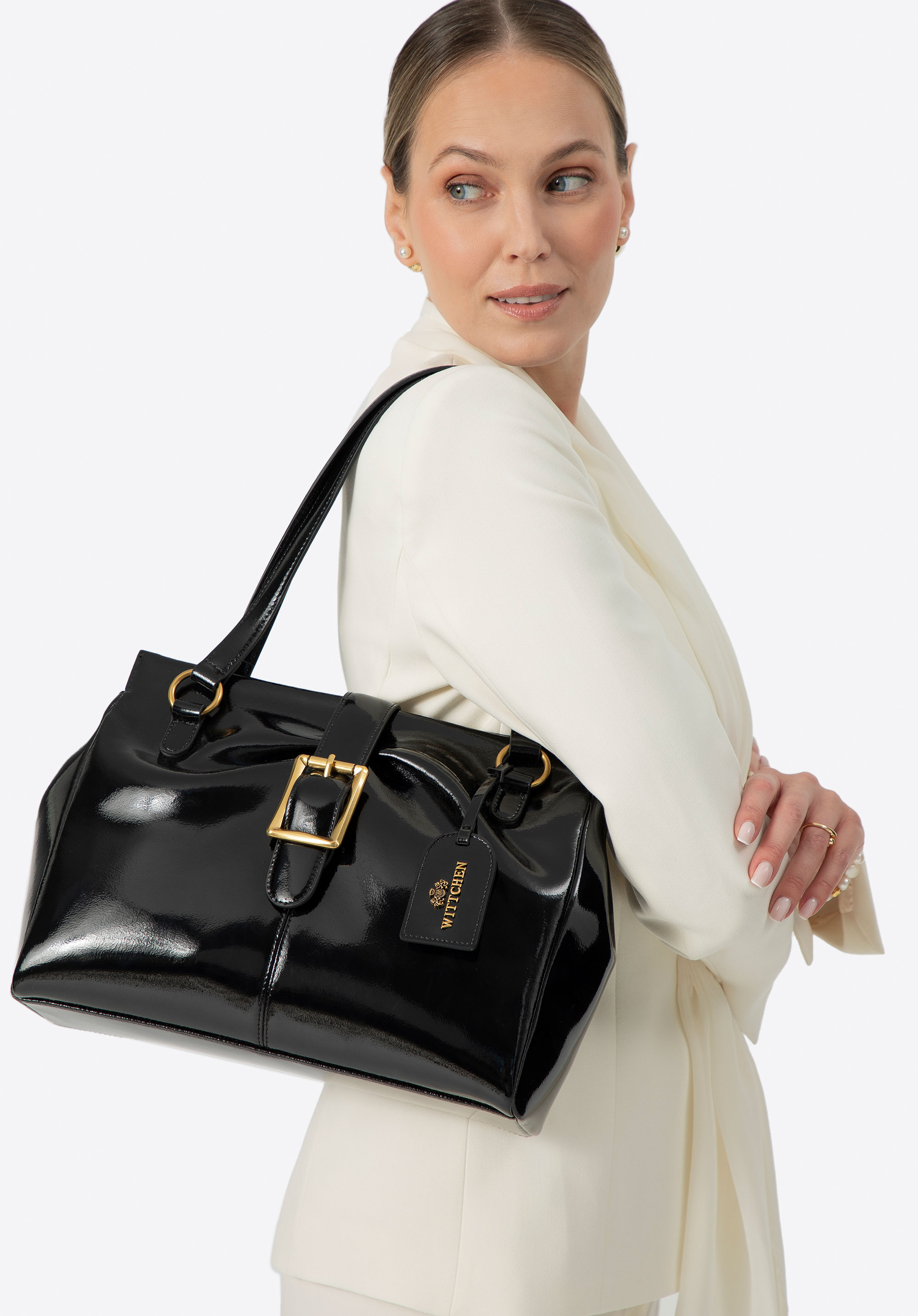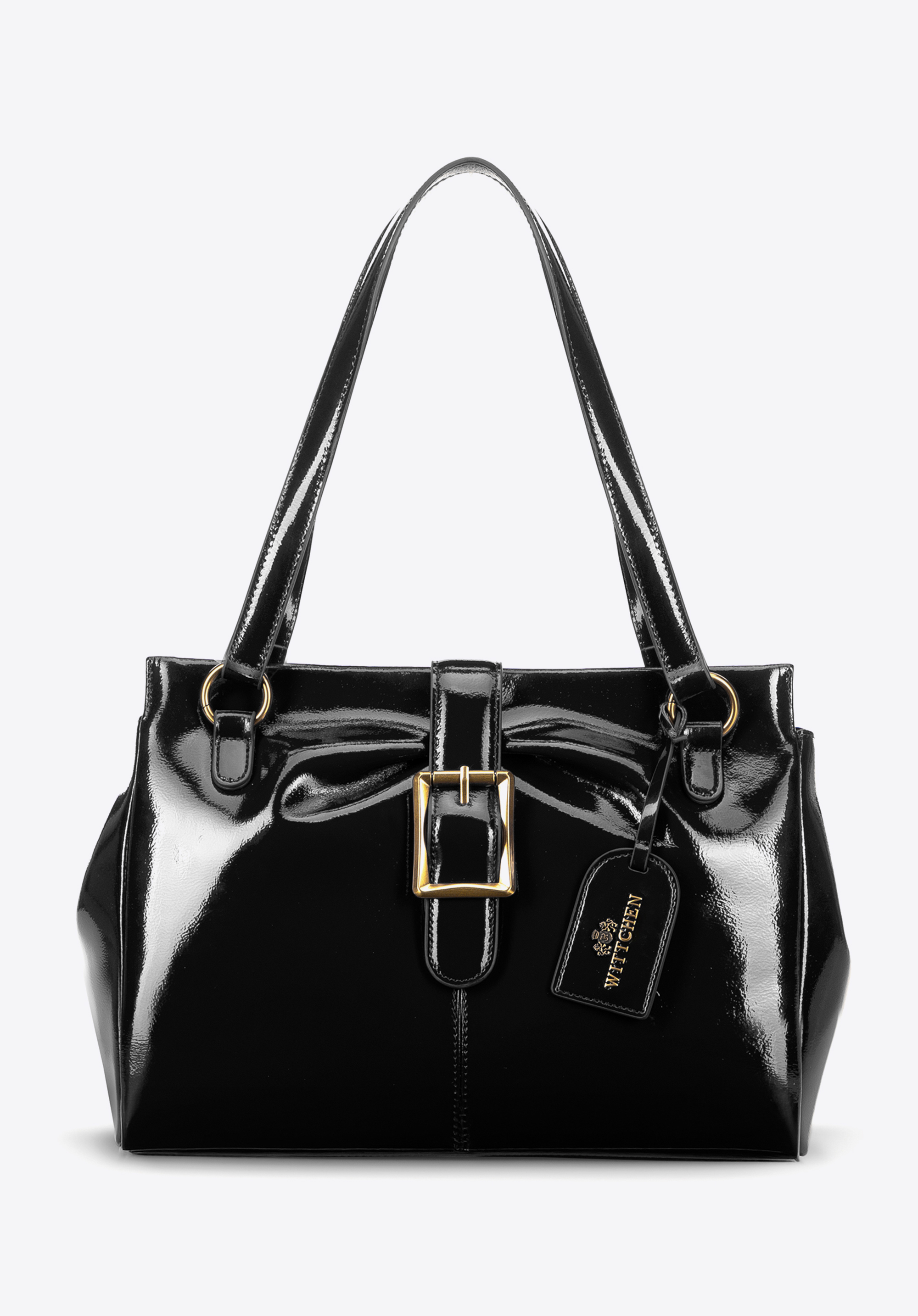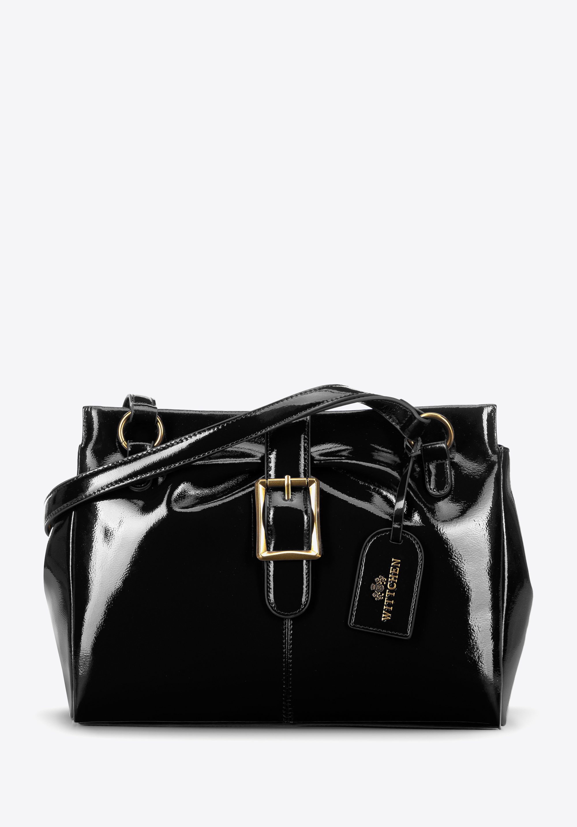 Stílusos és funkcionális - ez a táska a klasszikus elegancia szerelmeseinek kötelező darabja, modern beütéssel. Lakkbőrből készült, és finom csillogásával nyűgöz le, amely egyedi jelleget kölcsönöz neki. A két mikroszálas fogantyú kényelmes viseletet biztosít, az okos kialakítás pedig lehetővé teszi, hogy az oldalsó pántoknak köszönhetően változtassuk a szabást. Cipzárral és mágneses pánttal zárható, biztonságot és kényelmet nyújt.