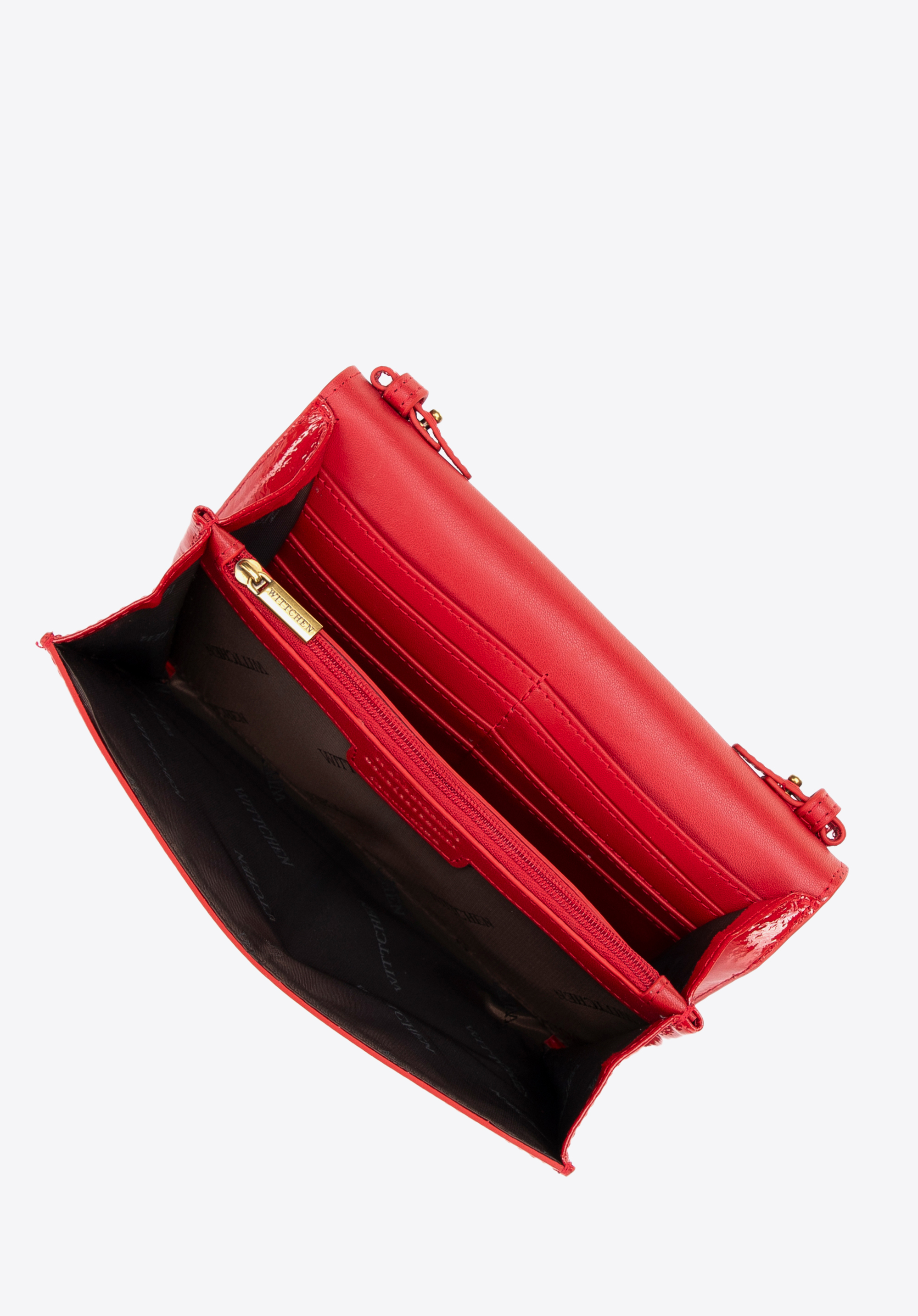 Fedezd fel az elegancia és a funkcionalitás tökéletes keverékét! Természetes bőrből készült kistáskánk a klasszikus dizájnt modern csavarral ötvözi. A fényes bőr azonnal vonzza a tekintetet, míg a szárny dekoratív csatja egyedi hatást kölcsönöz. A levehető láncnak köszönhetően klasszikus clutch táskaként vagy kényelmes crossbody táskaként is viselheted. Mágneses záródása, két tágas rekesz, cipzáras zseb és 8 kártyahely ideális választás minden alkalomra.