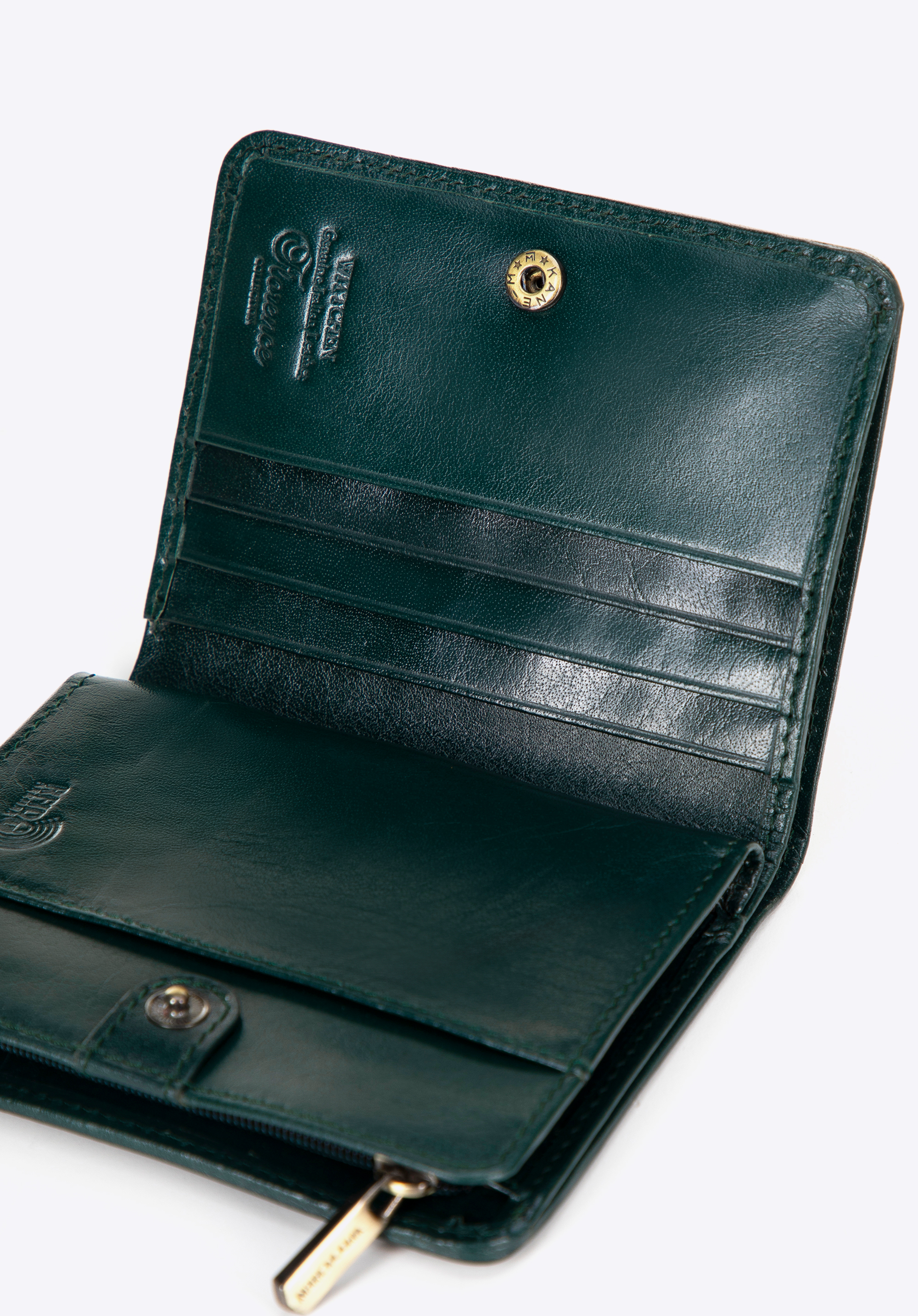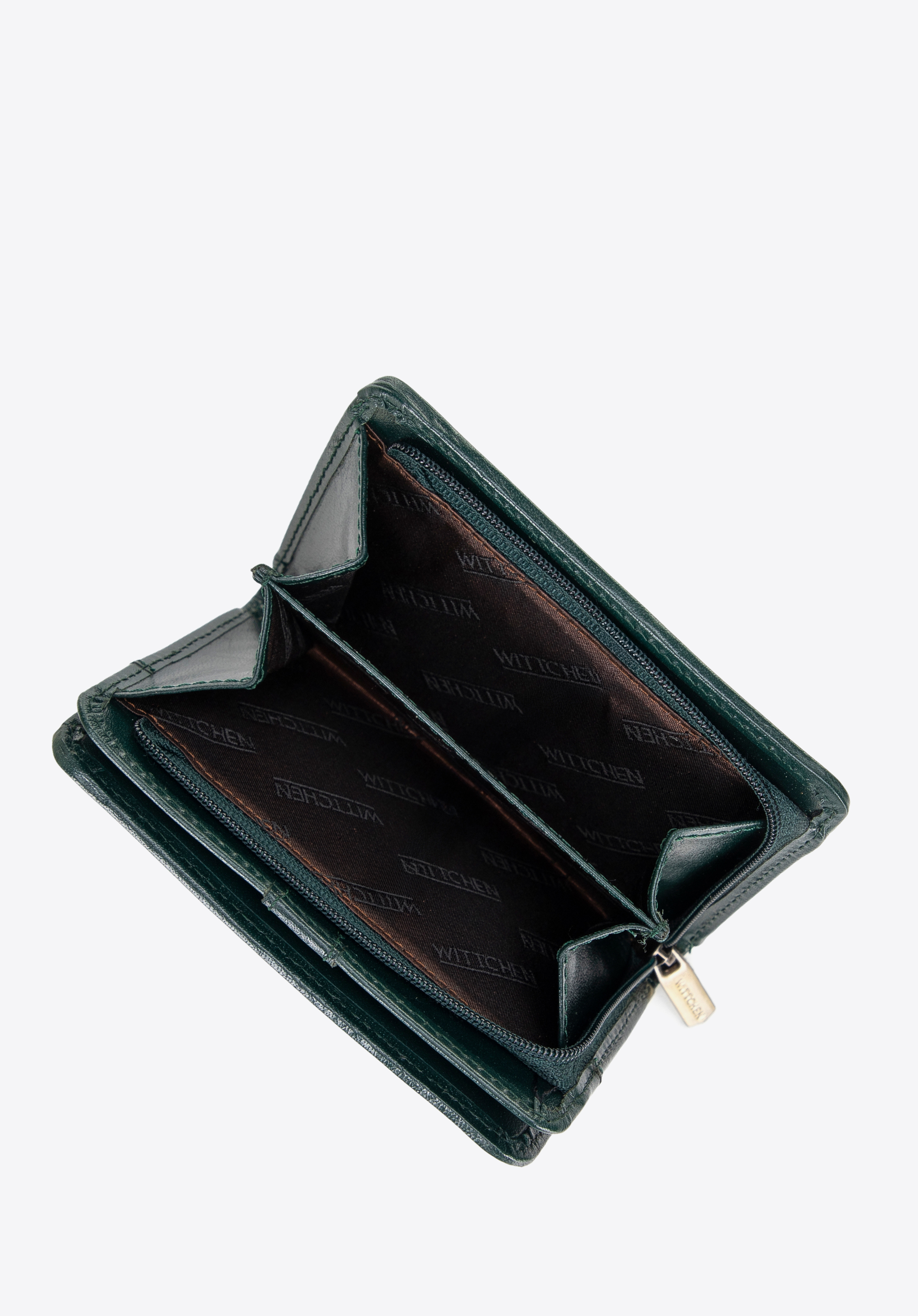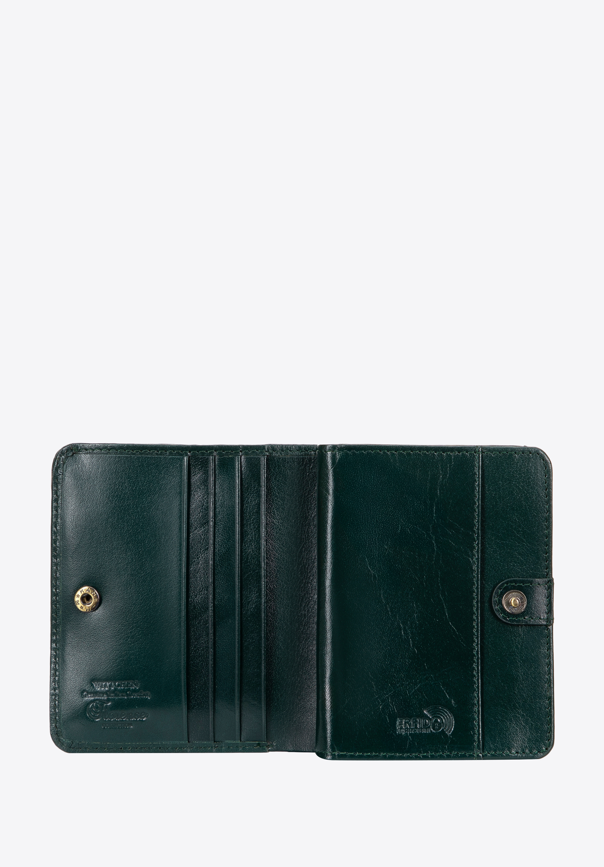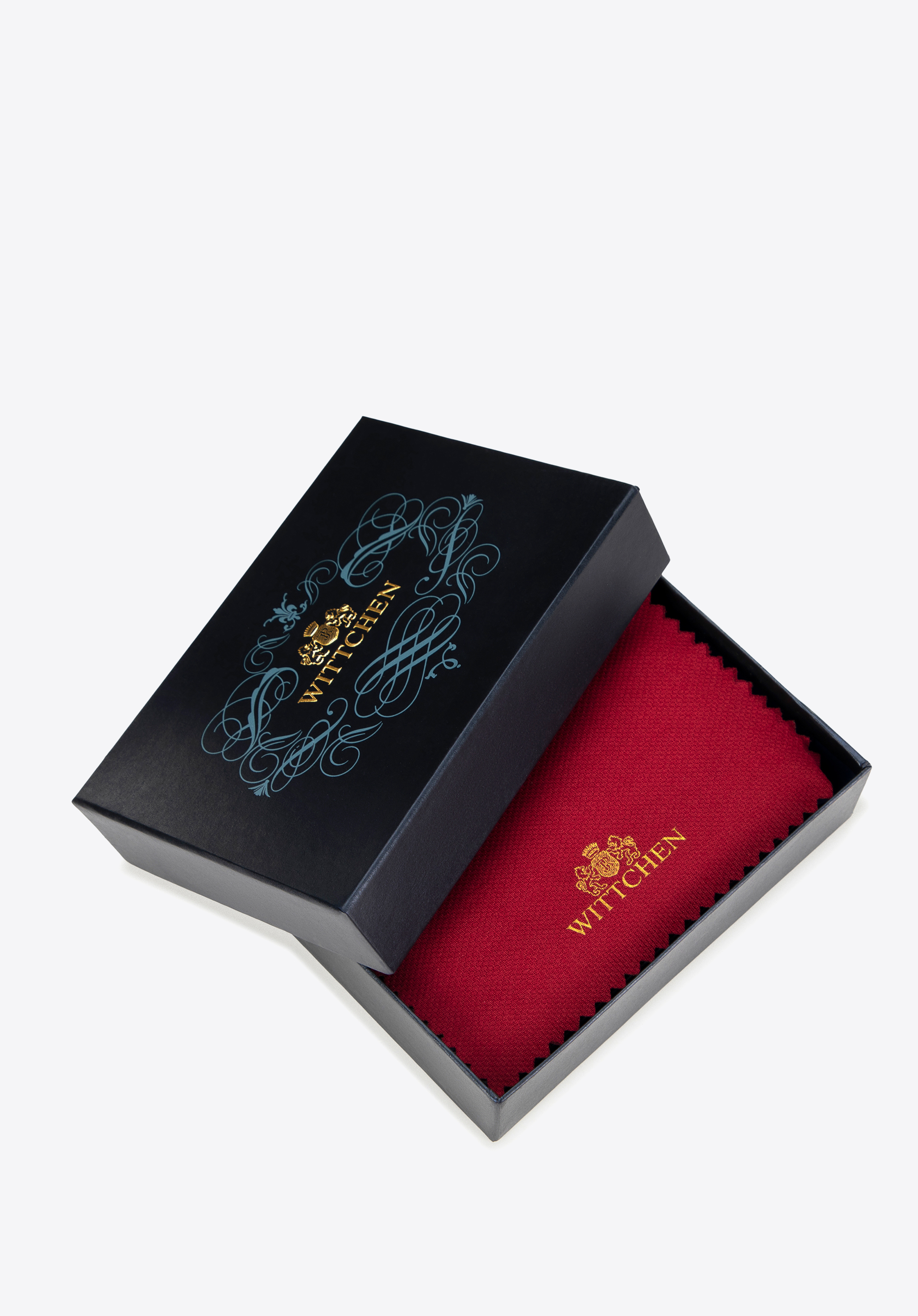 - Részletek: A díszítés a WITTCHEN címer formájában, régi arany színben, amely finom eleganciát kölcsönöz a pénztárcának.