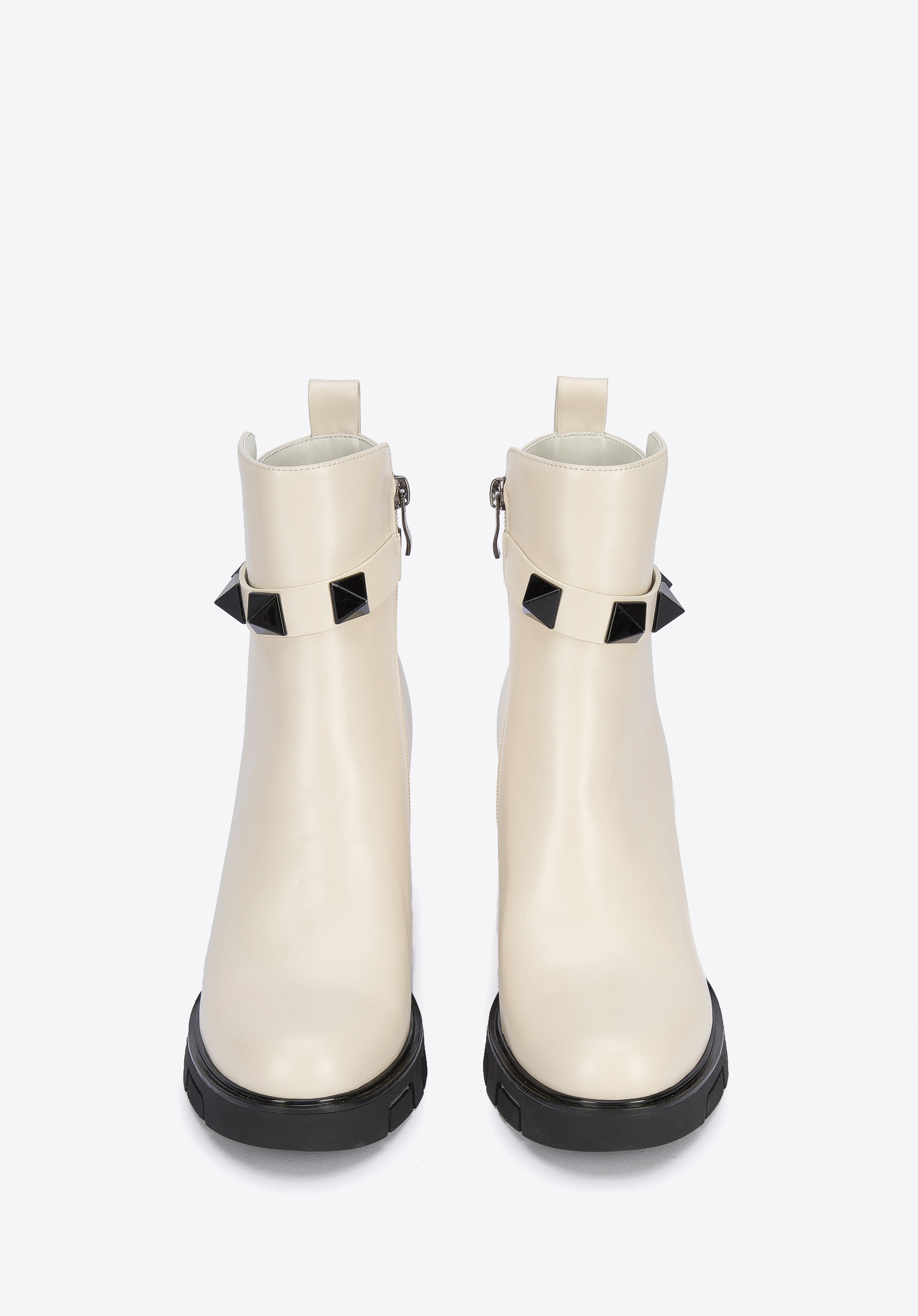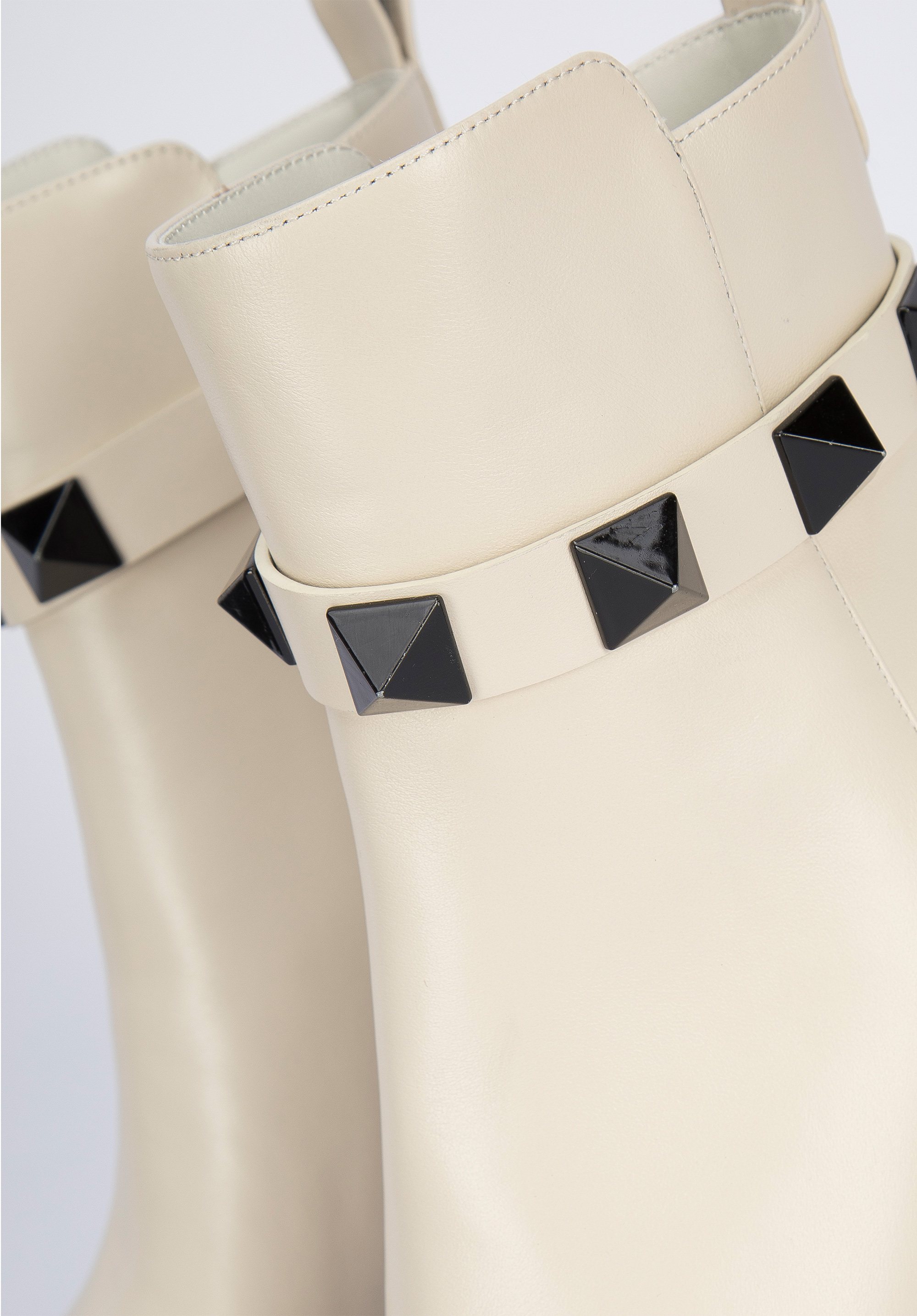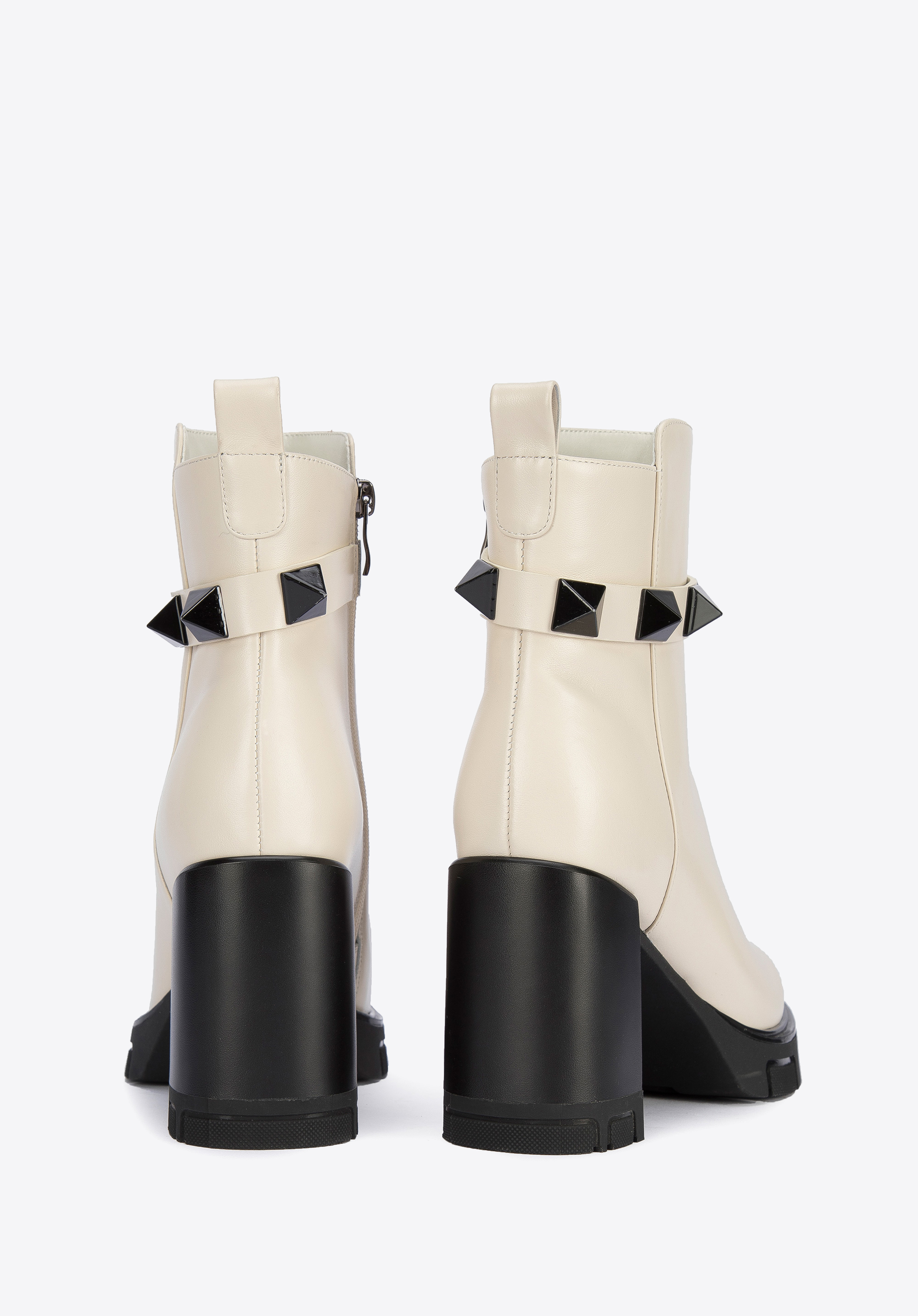 A szegecselt pánt a vádli magasságában, új jelleget kölcsönöz a cipőnek.