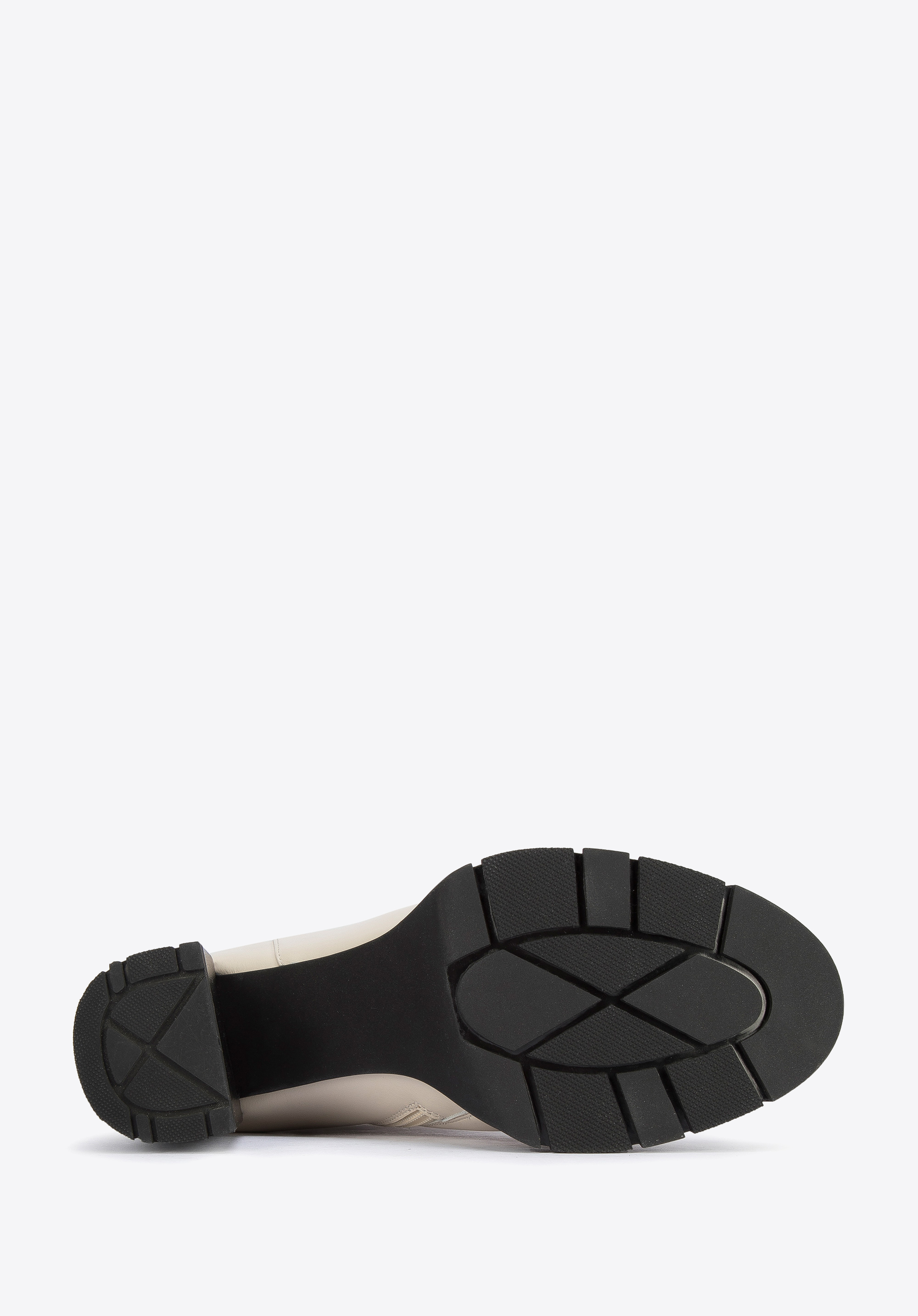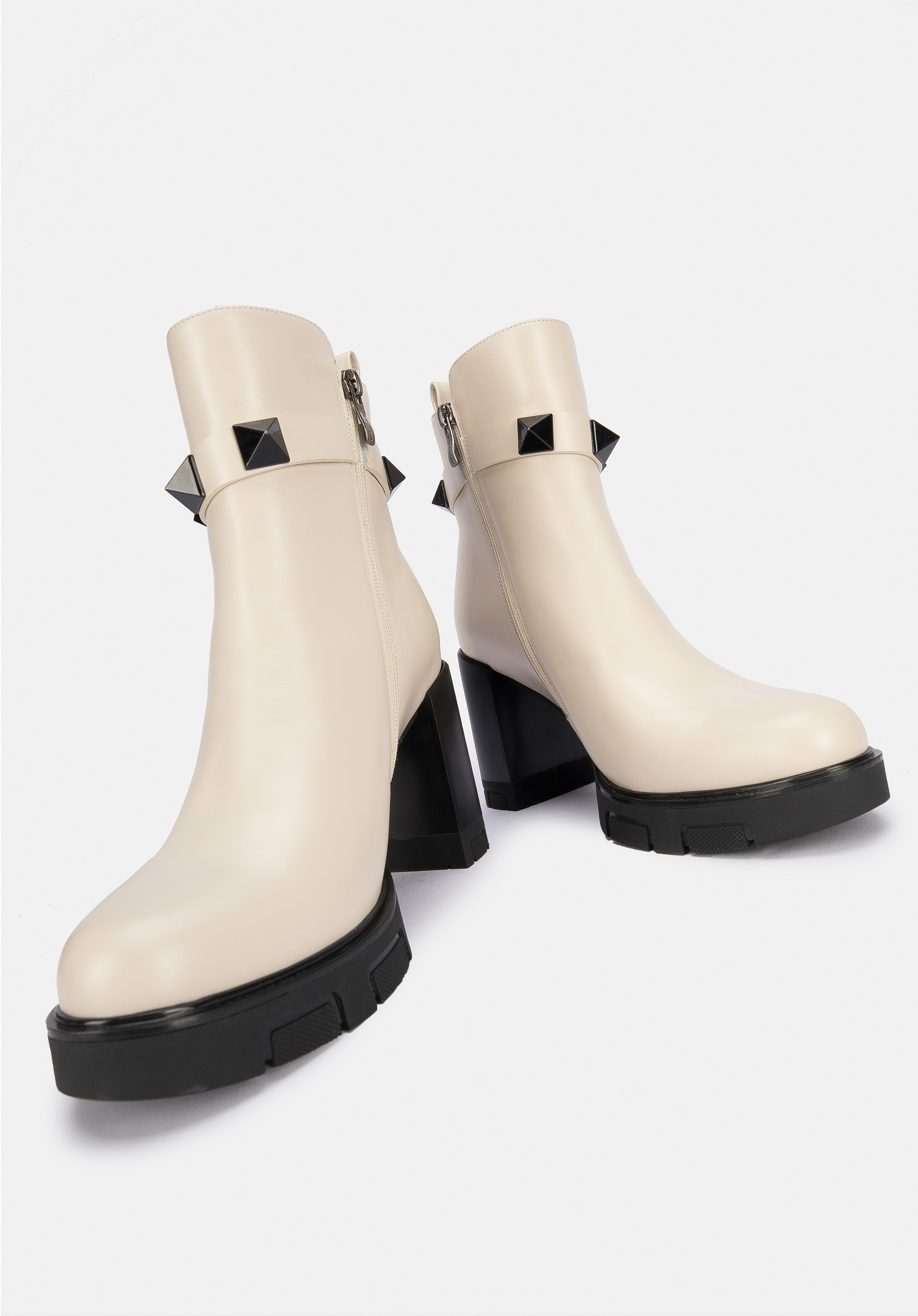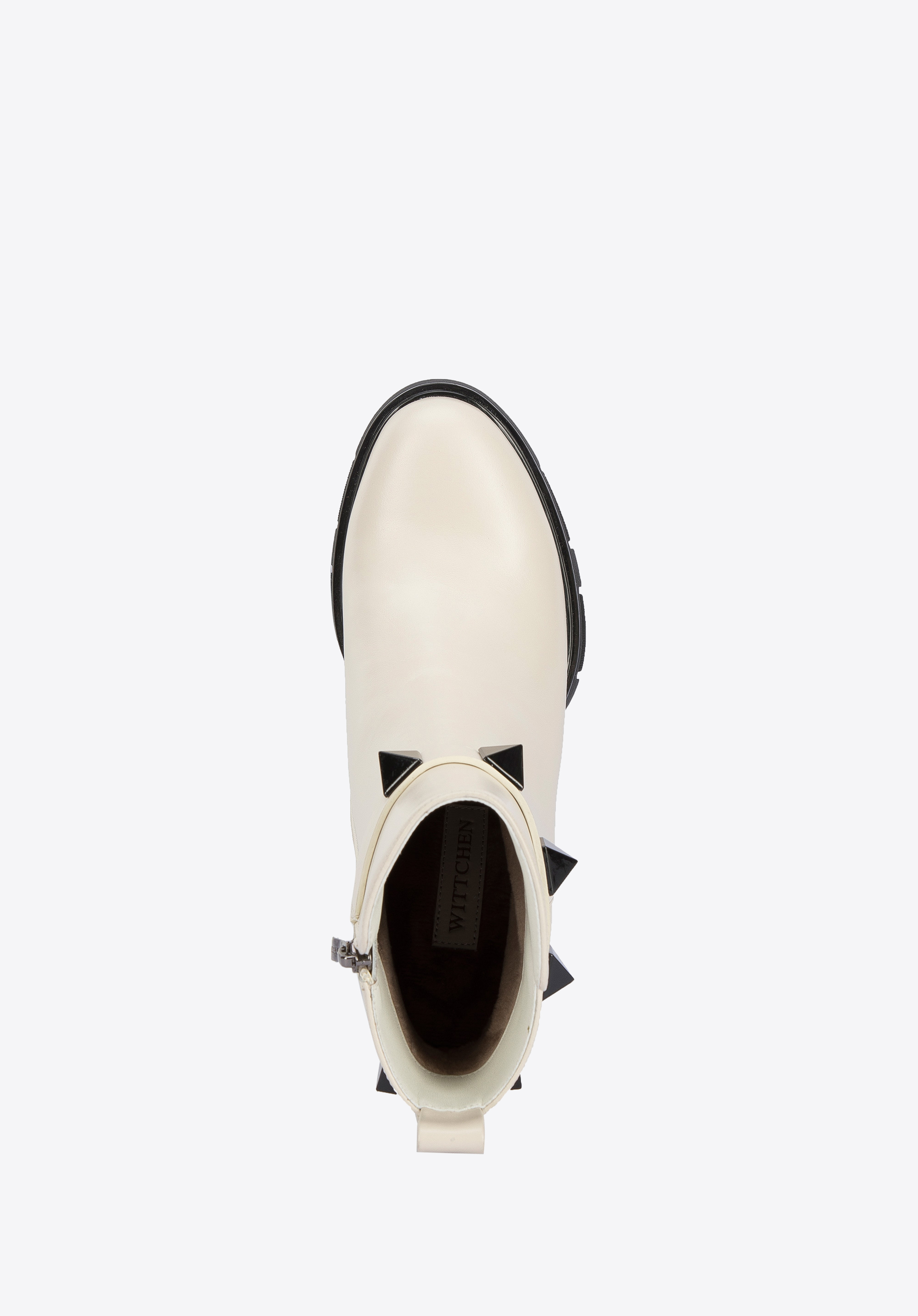 A szegecselt pánt a vádli magasságában, új jelleget kölcsönöz a cipőnek.