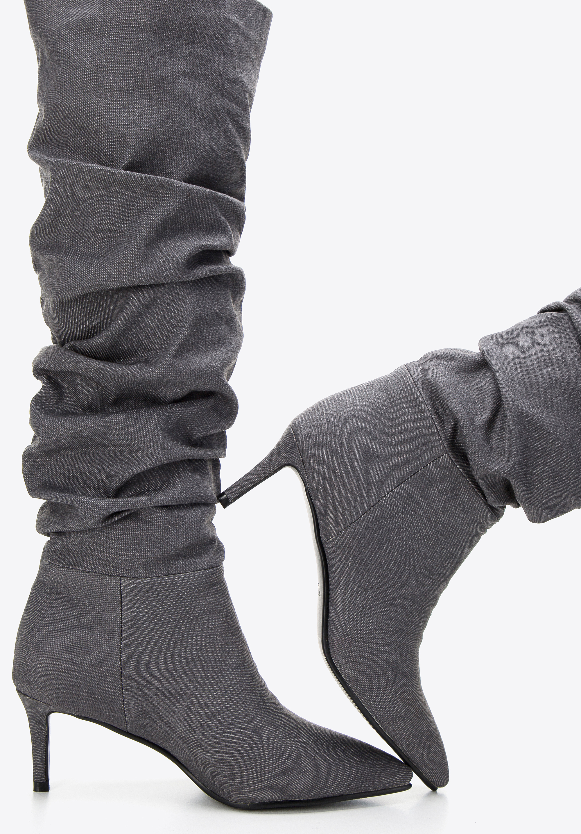 Már első látásra felkeltik az érdeklődést, meglepnek és felkeltik a figyelmet – ilyenek női magassarkú farmercsizmáink. Jelleget adnak minden ruhához. Ha szereted az egyedi cipőket - tökéletesek az Ön számára. Pamutszövetből készült (farmer), amely jól mutat a lábszáron. Belül puha, gyapjú béléssel rendelkeznek, ami növeli a használat kényelmét, és egész nap viselheti őket. Elegáns hegyes orrral és elegáns tűsarkúval rendelkeznek, amely keresett és kecses megjelenést kölcsönöz a sziluettjének. A szárnál lévő gurulás keskenyíti a láb sziluettjét, míg a magassarkú boka megnyújtja a lábfejet. Ez a magas sarkú térdcsizma igazán szenzációs.