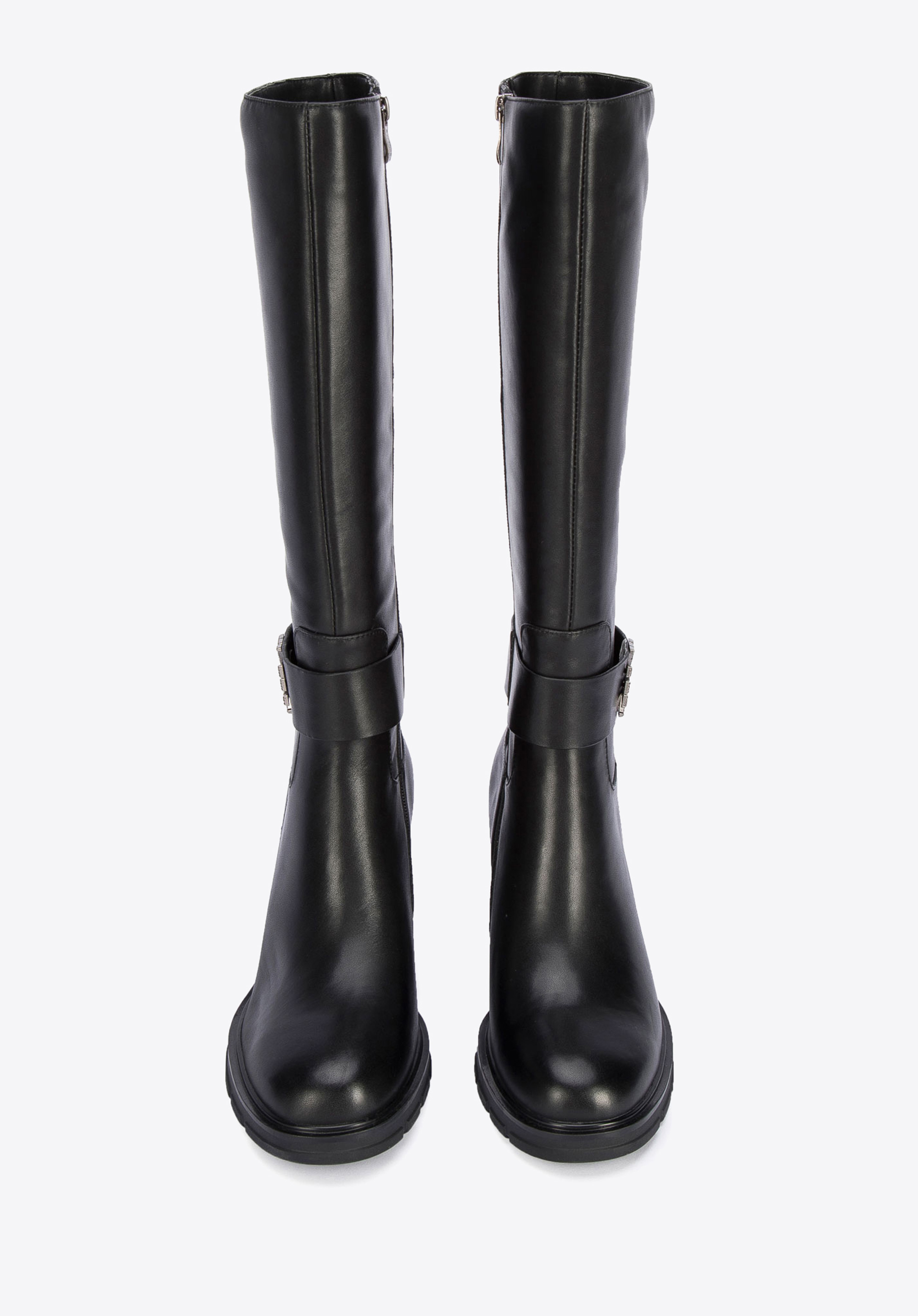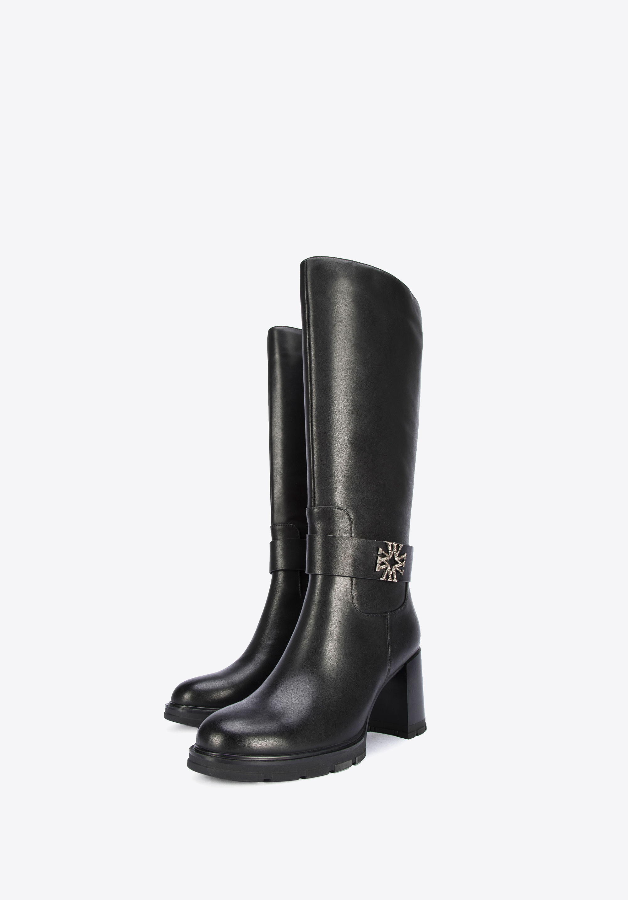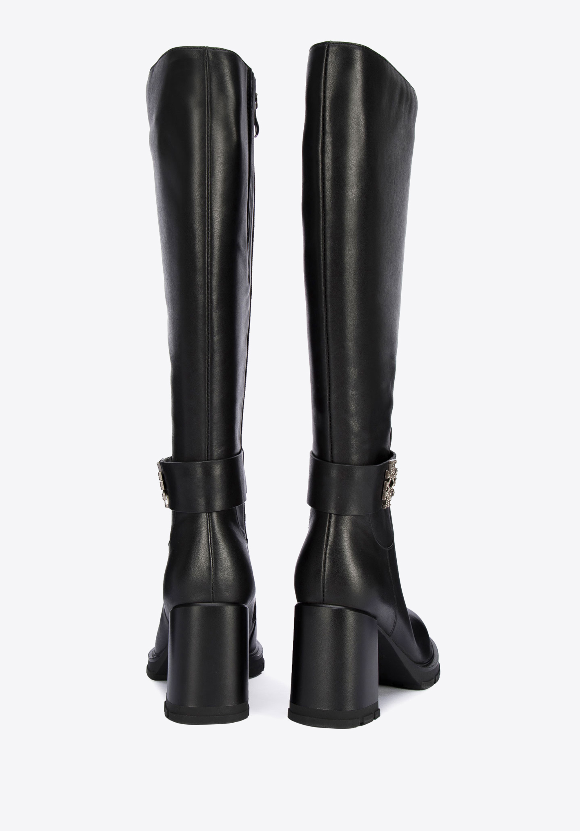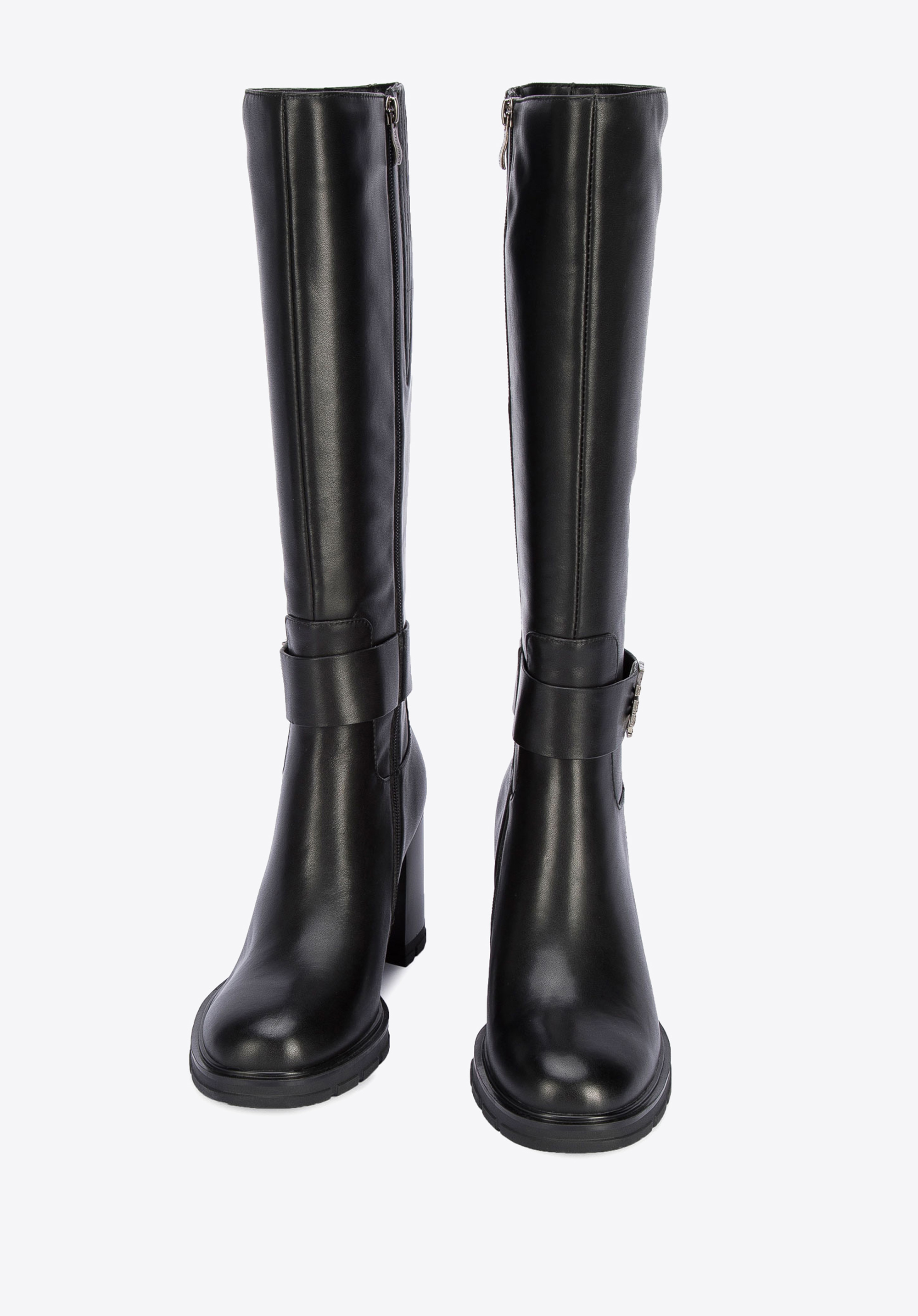 Fekete tömbsarkú csizma.