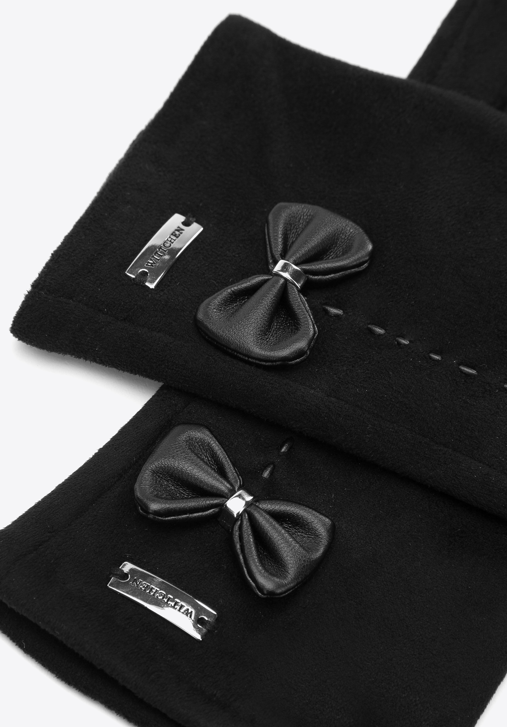 Fektess be egy pár klasszikus és tartós kesztyűbe. Velúrbőrből készült kesztyűnk puha és meleg, igazi téli alapdarab. A dekoratív kis masnikkal és dekoratív varrással díszített pár valóban időtlen kincs. Kombinálható elegáns és steppelt kabátokkal egyaránt.