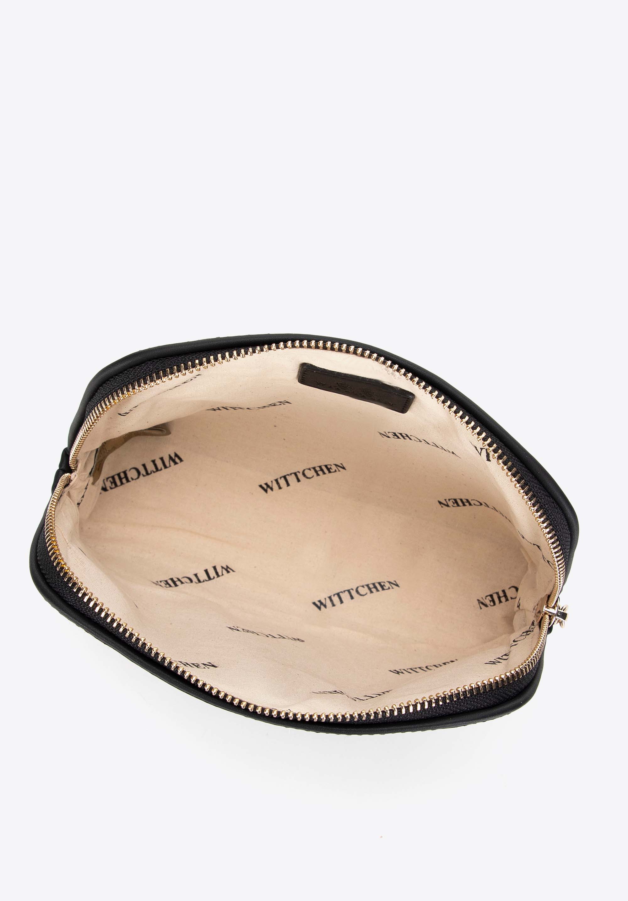 - Bélés : A kozmetikai táska belsejét a gyártó logójával ellátott, világos béléssel készítettük, ez pedig eleganciát ad, és megkönnyíti a legfontosabb dolgok megtalálását.