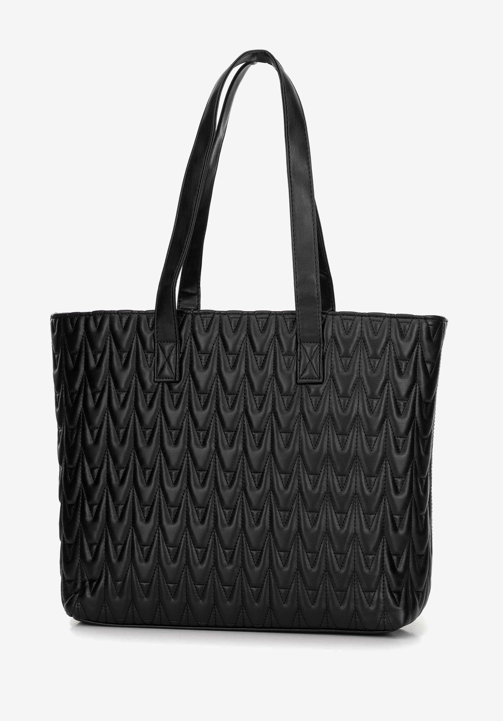 Bővítsd ruhatáradat egy stílusos kézitáskával, amely ötvözi a modern dizájnt és a kivételes funkcionalitást. Ez az öko-bőrből készült shoppertáska minden bizonnyal kedvenc kiegészítőd lesz, köszönhetően az elegancia és a praktikum keverékének. Az egyrekeszes kialakítás cipzárral rögzíthető, biztosítva a holmijaid biztonságát és a könnyű hozzáférést. Ezt a női kézitáskát geometrikus minta és egy dekoratív, rögzített láncrészlet díszíti az elején. Az erős talp stabilitást és tartósságot biztosít, míg a három belső zseb garantálja a legértékesebb tárgyaid biztonságos tárolását.