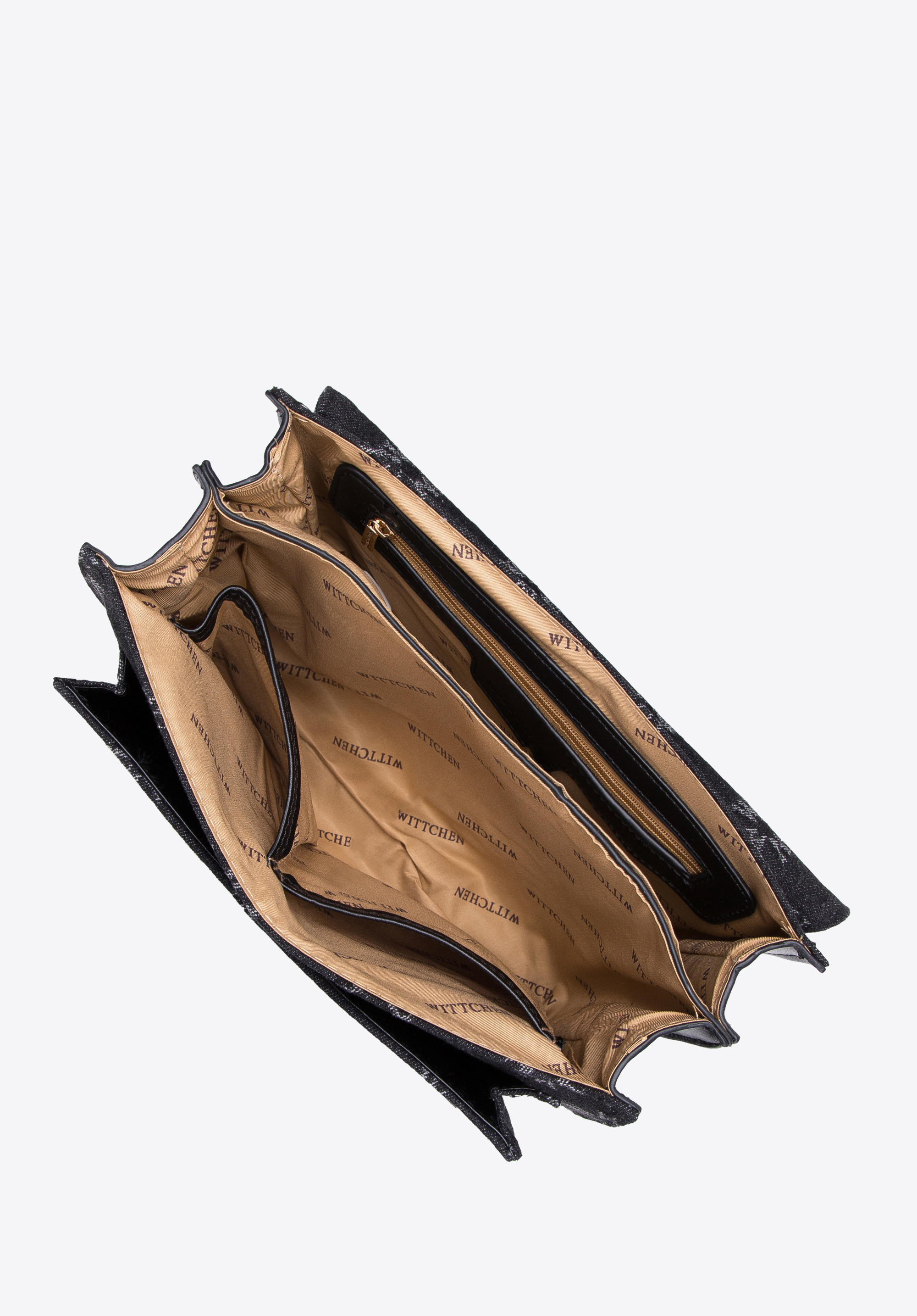 Ezzel a stílusos kiegészítővel sok figyelmet vonzol majd. WITTCHEN monogramos farmer bevonat fedi a táska elejét és fülét. Az oldalak kiváló minőségű ökológiai bőrből készültek. A belsejében két rekesz található, amelyek megkönnyítik a rendtartást és az illeszkedést: egy pénztárca, egy telefon, zsebkendők, kézkrém, egy kis naptár és néhány apróság. Hordhatod tetszés szerint: a válladon vagy a kezedben a hosszú lánc leválasztása után. Ez a modell szinte minden sima ruhát változatossá tesz és karaktert kölcsönöz kedvenc chinodnak és pólódnak. A női monogramos farmer crossbody táska egy divatos kiegészítő, amelyet sok évszakon át viselhetsz.