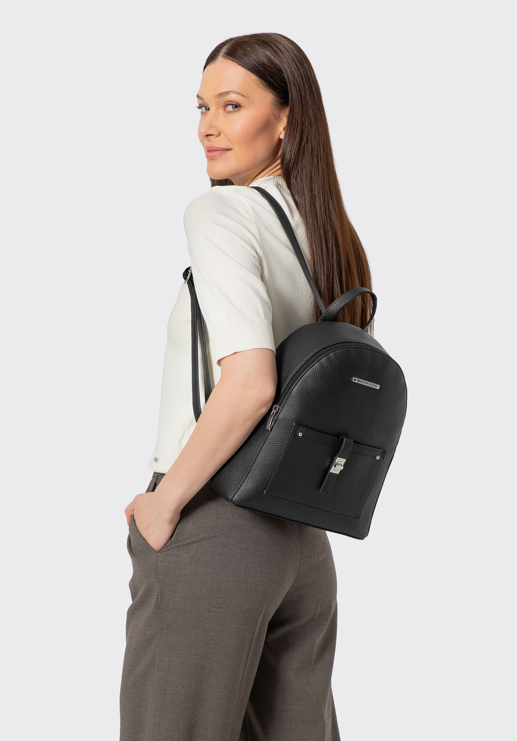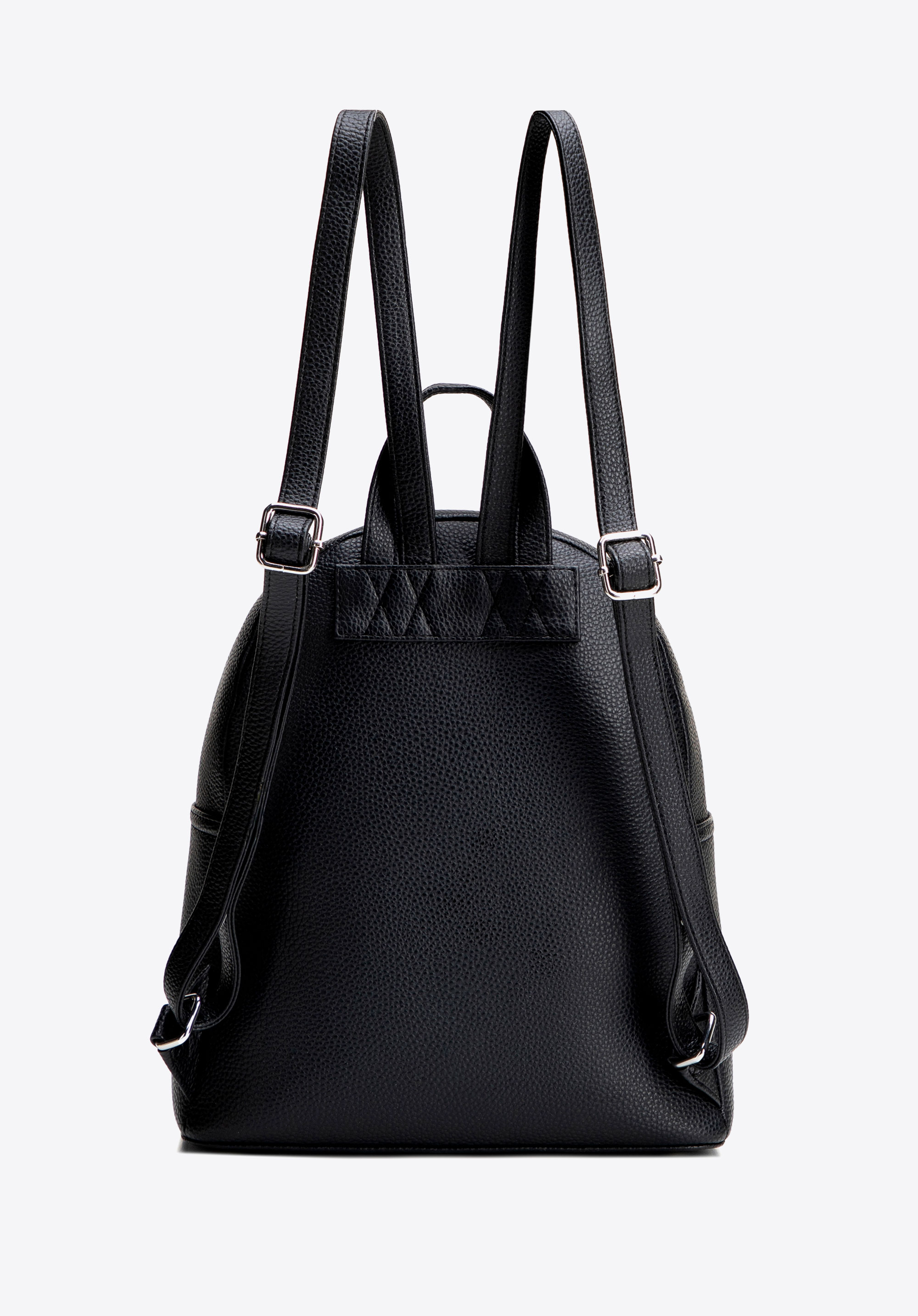 Ez a női hátizsák ideális választás, ha kényelmes alternatívát keresel a kézitáskák helyett, de a stílusról nem kell lemondanod. Műbőrből készült, időtlen dizájnjával és a természetes bőrre emlékeztető finom kavicsos textúrájával lenyűgöző. Minimalista formája révén könnyen kombinálható munkaruhával, valamint lazább, mindennapi öltözékekkel is. A praktikus felső fogantyú lehetővé teszi, hogy kézben is hordozd, amikor szükséges, míg az állítható pántok tökéletes illeszkedést biztosítanak az egész napos kényelem érdekében.