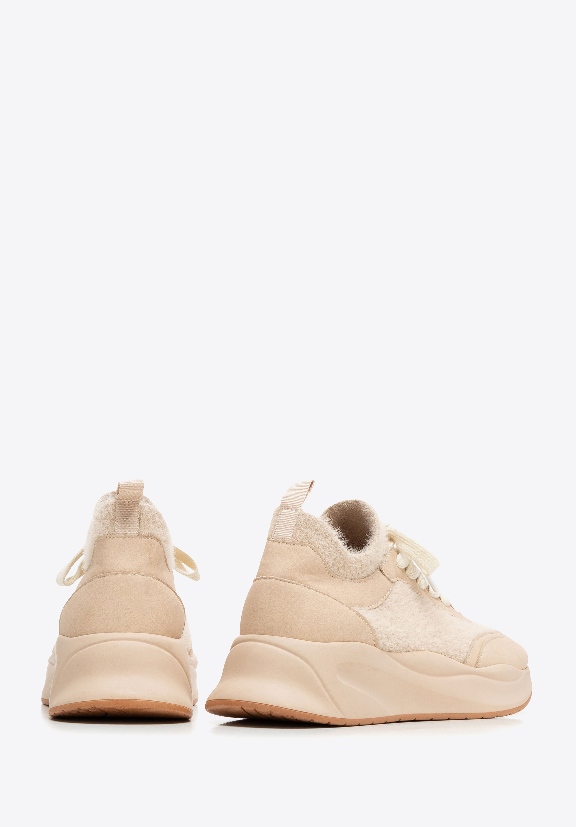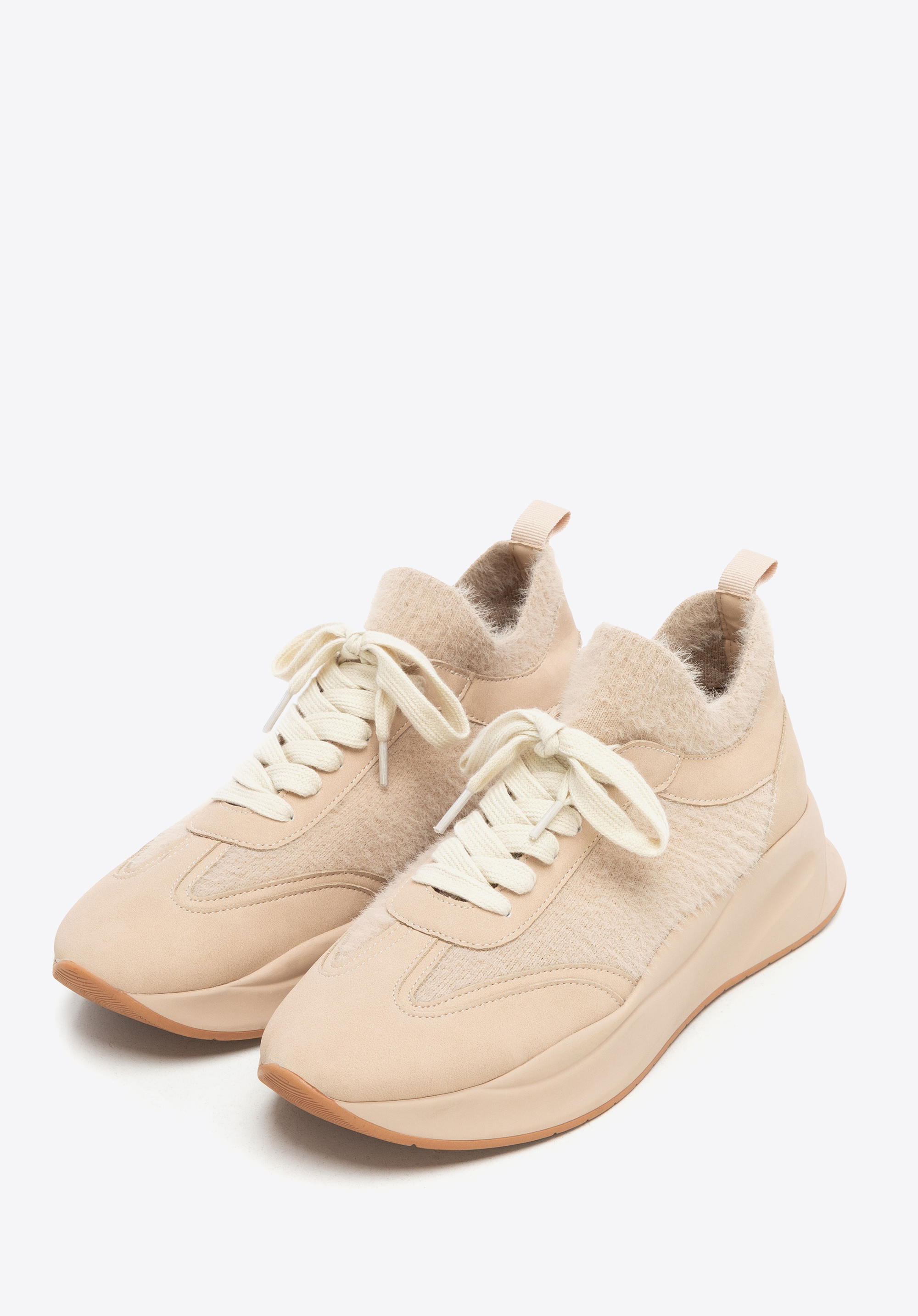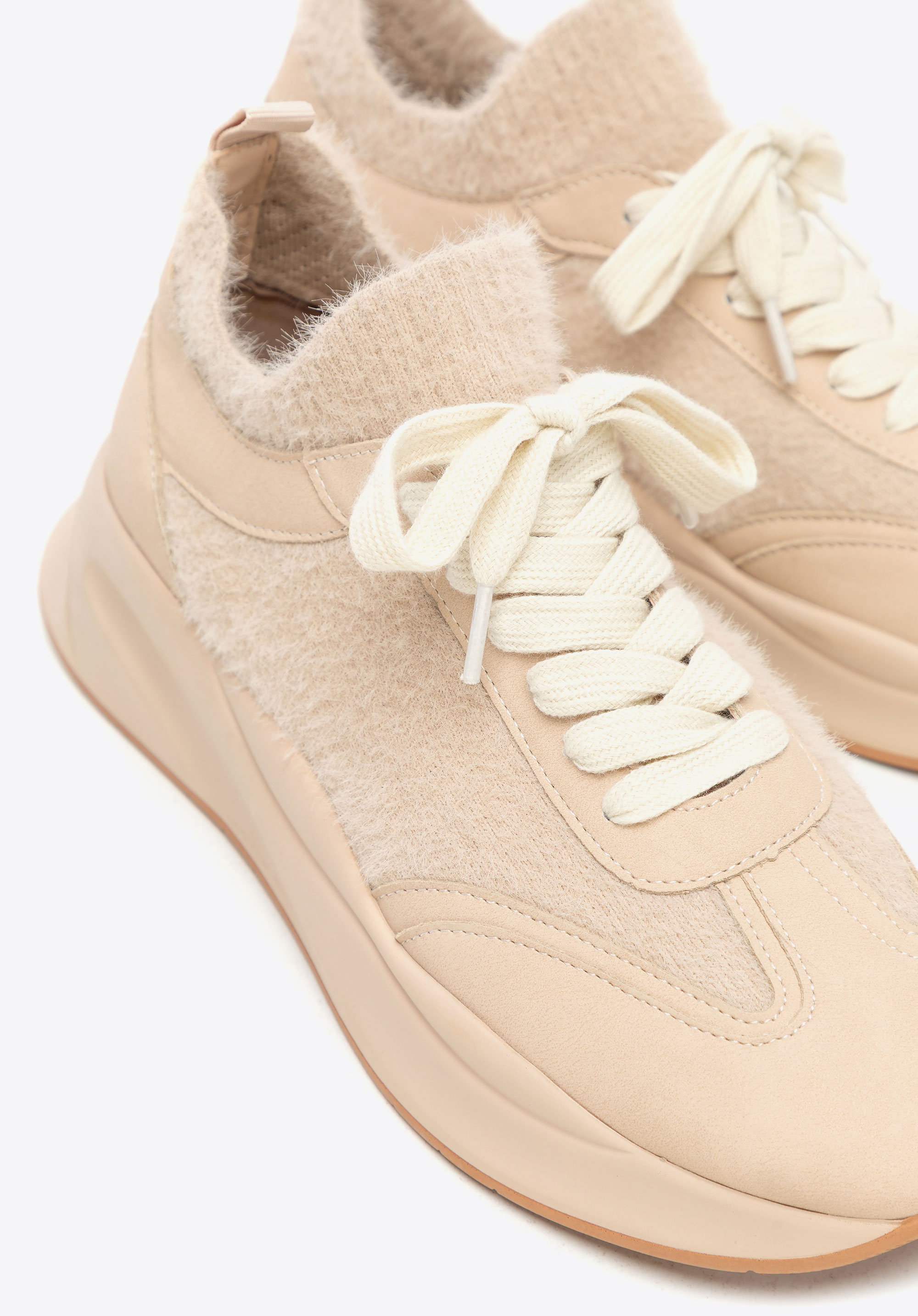 Női műbőr sportcipő műszőrme díszítéssel bézs