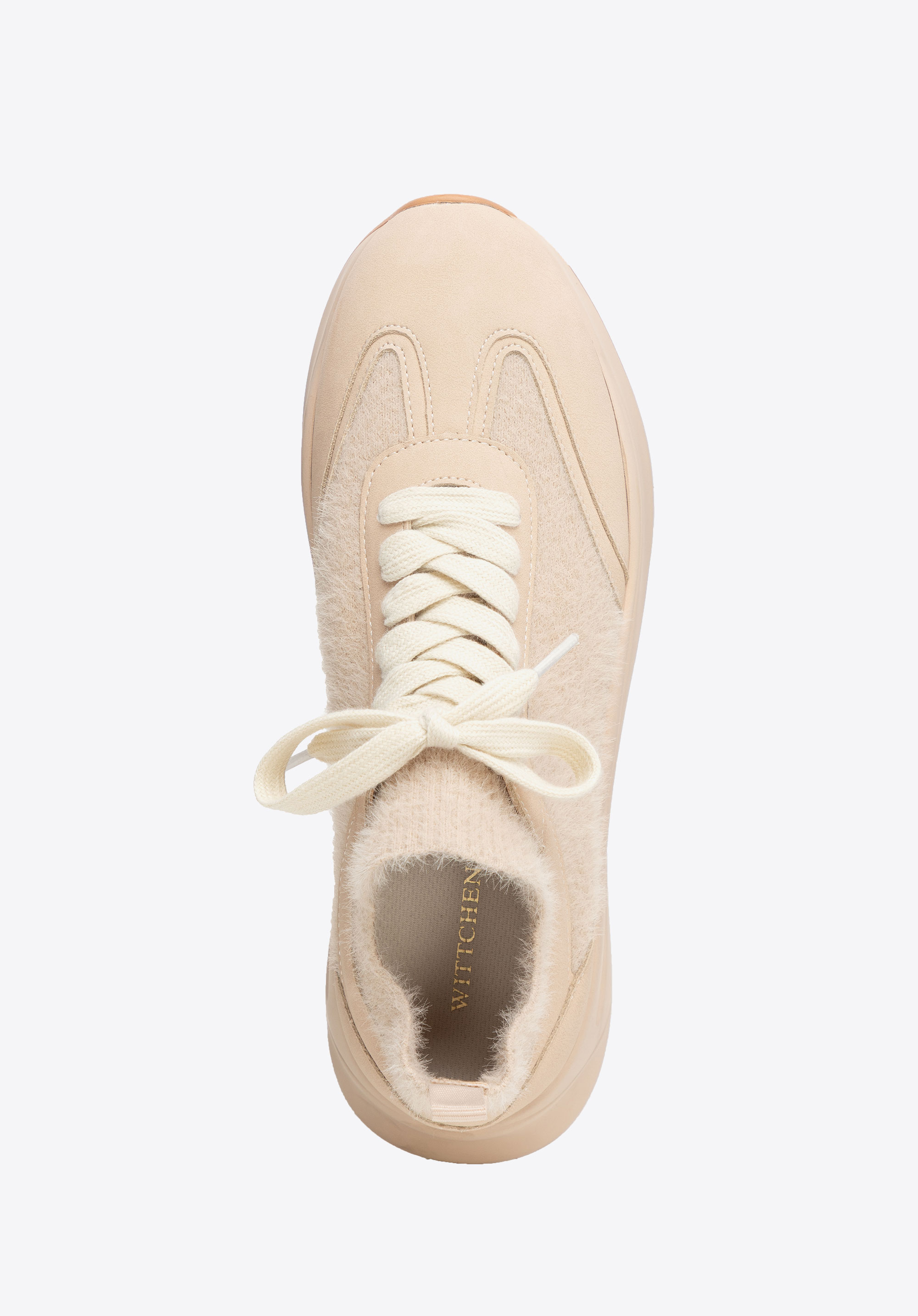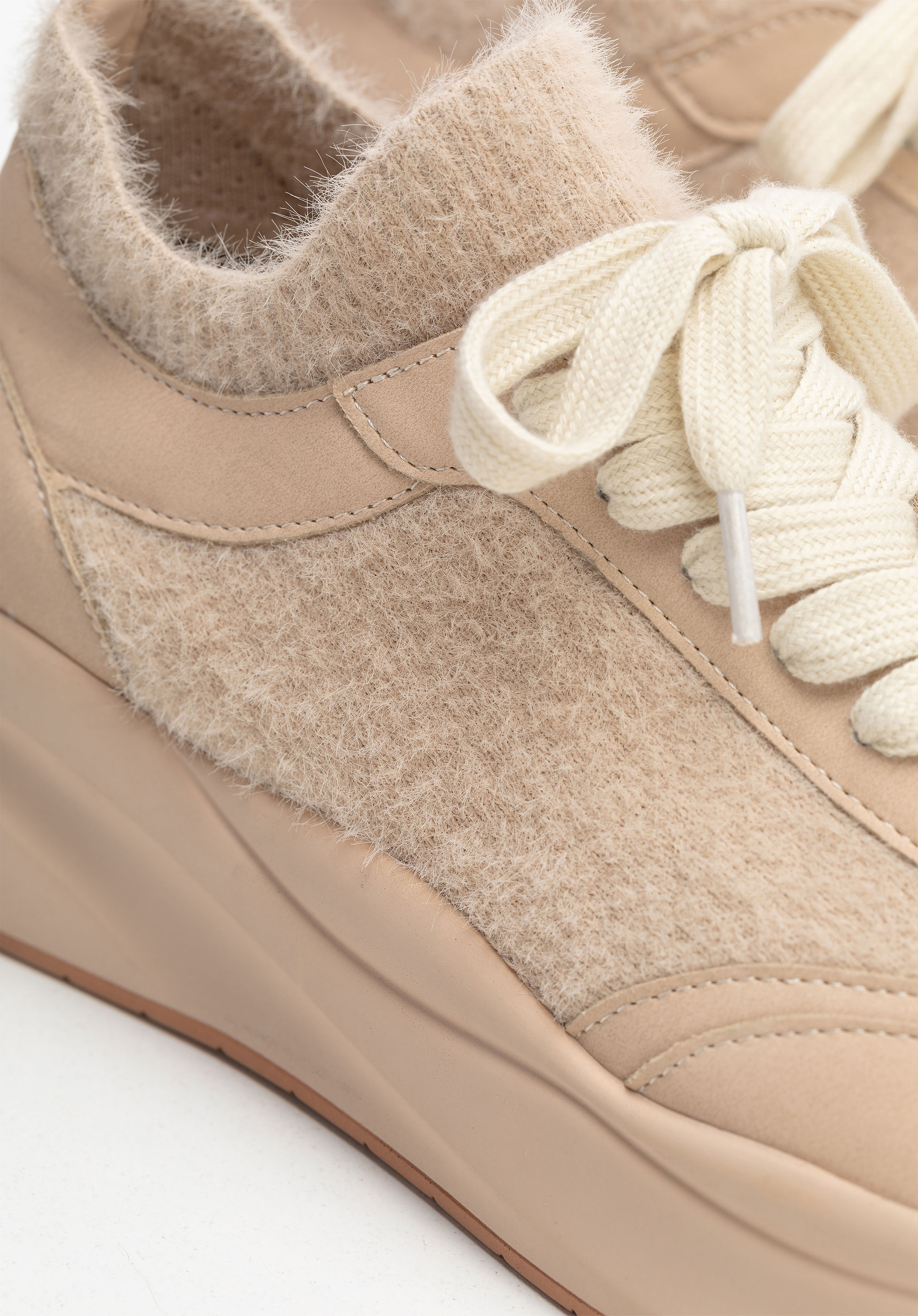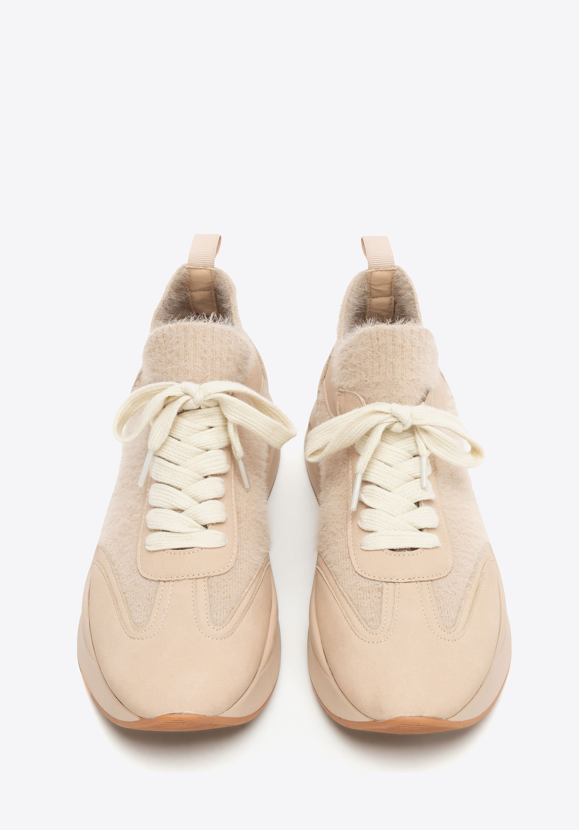 Női műbőr sportcipő műszőrme díszítéssel bézs