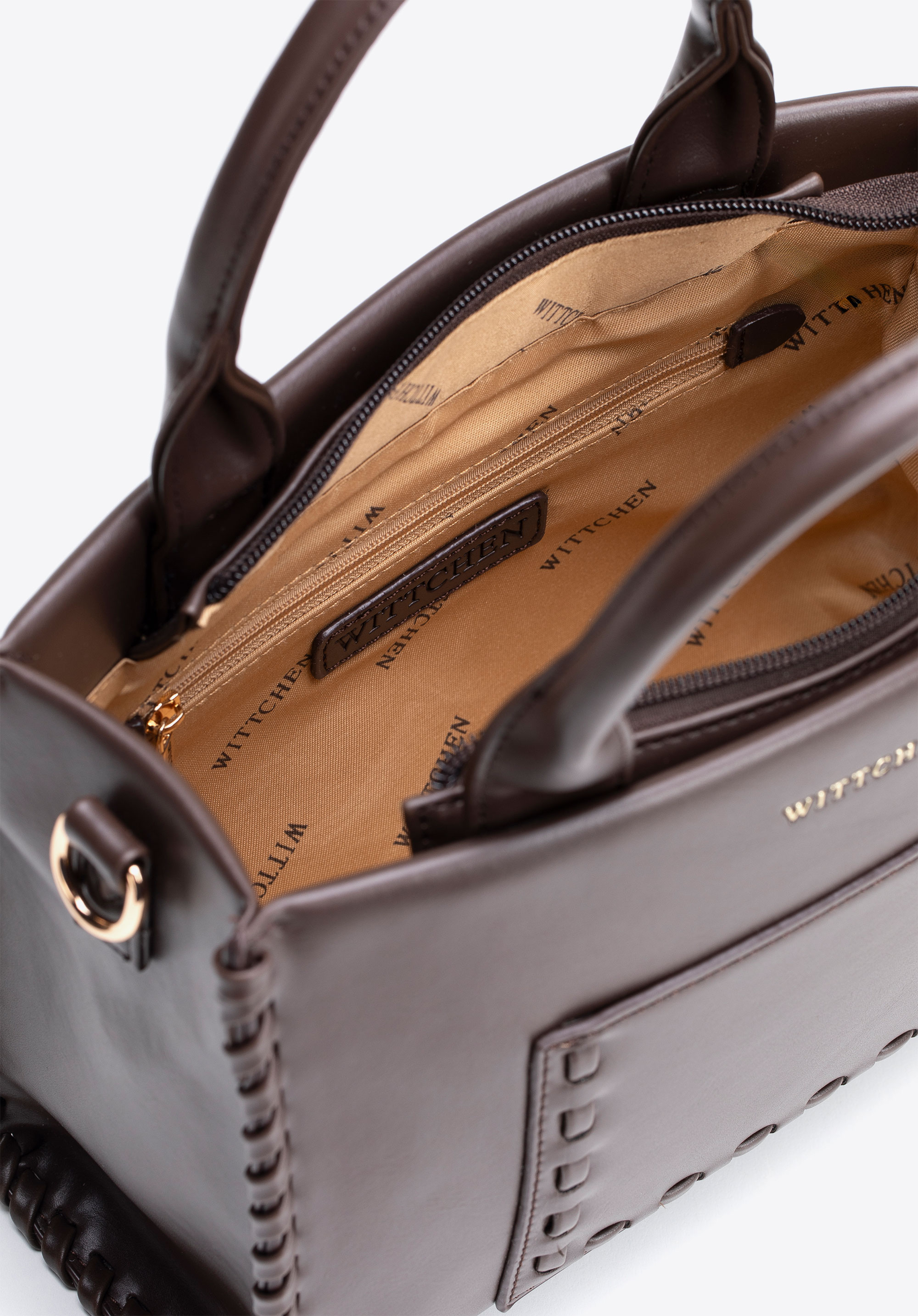 Képzelj el egy kézitáskát, amely egyszerre elegáns, könnyű és igazán kényelmes a mindennapi hordáskor. Ezt a kis méretű táskát kifejezetten azoknak tervezték, akik értékelik a visszafogott stílust, és szeretik kéznél tartani a legszükségesebb holmijukat. Műbőrből készült, kifinomult megjelenésű, míg a díszes varrás jellegzetes, letisztult karaktert kölcsönöz neki. Egy részlet, amely vonzza a tekintetet és gyönyörűen kiemeli a táska formáját.
