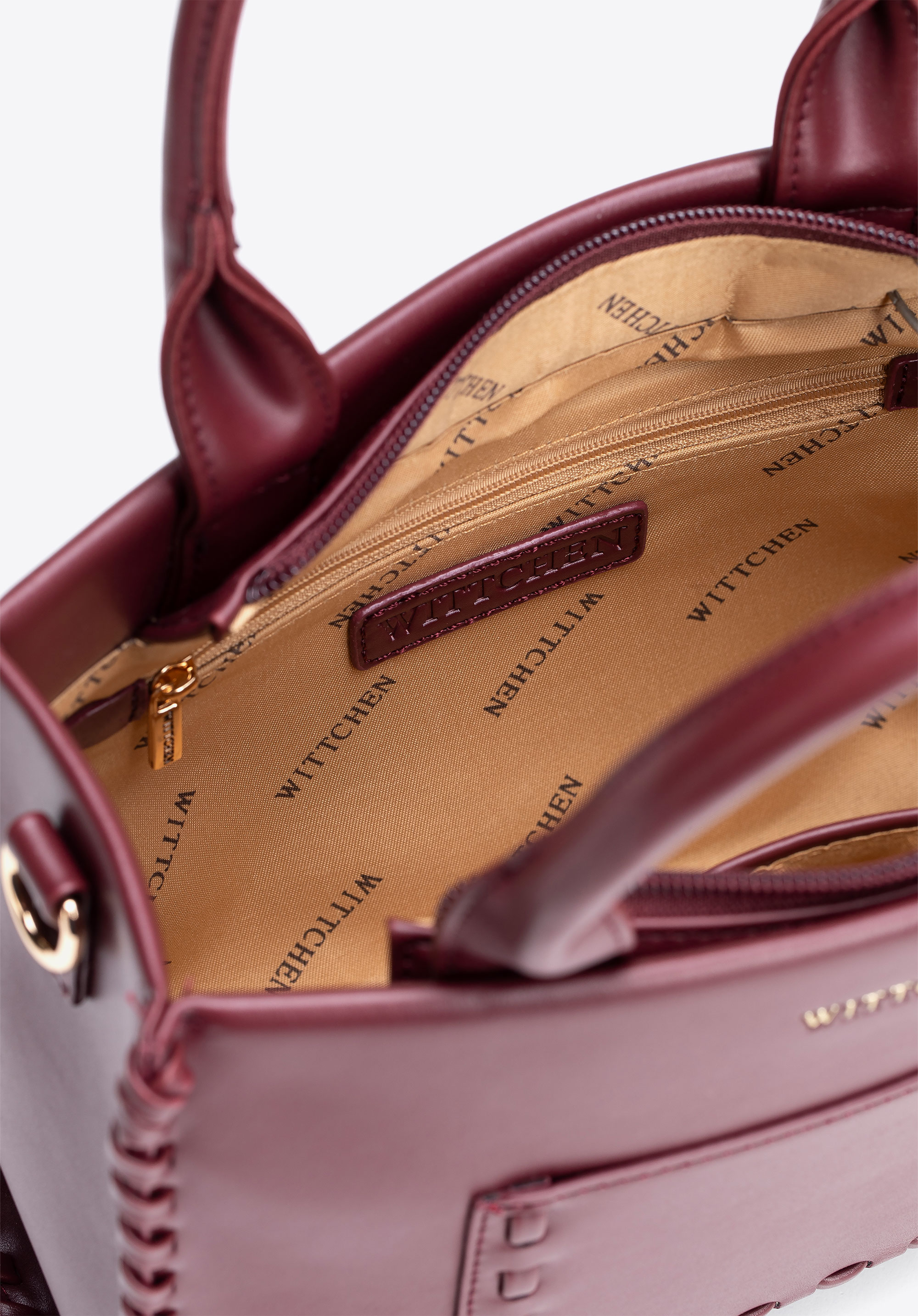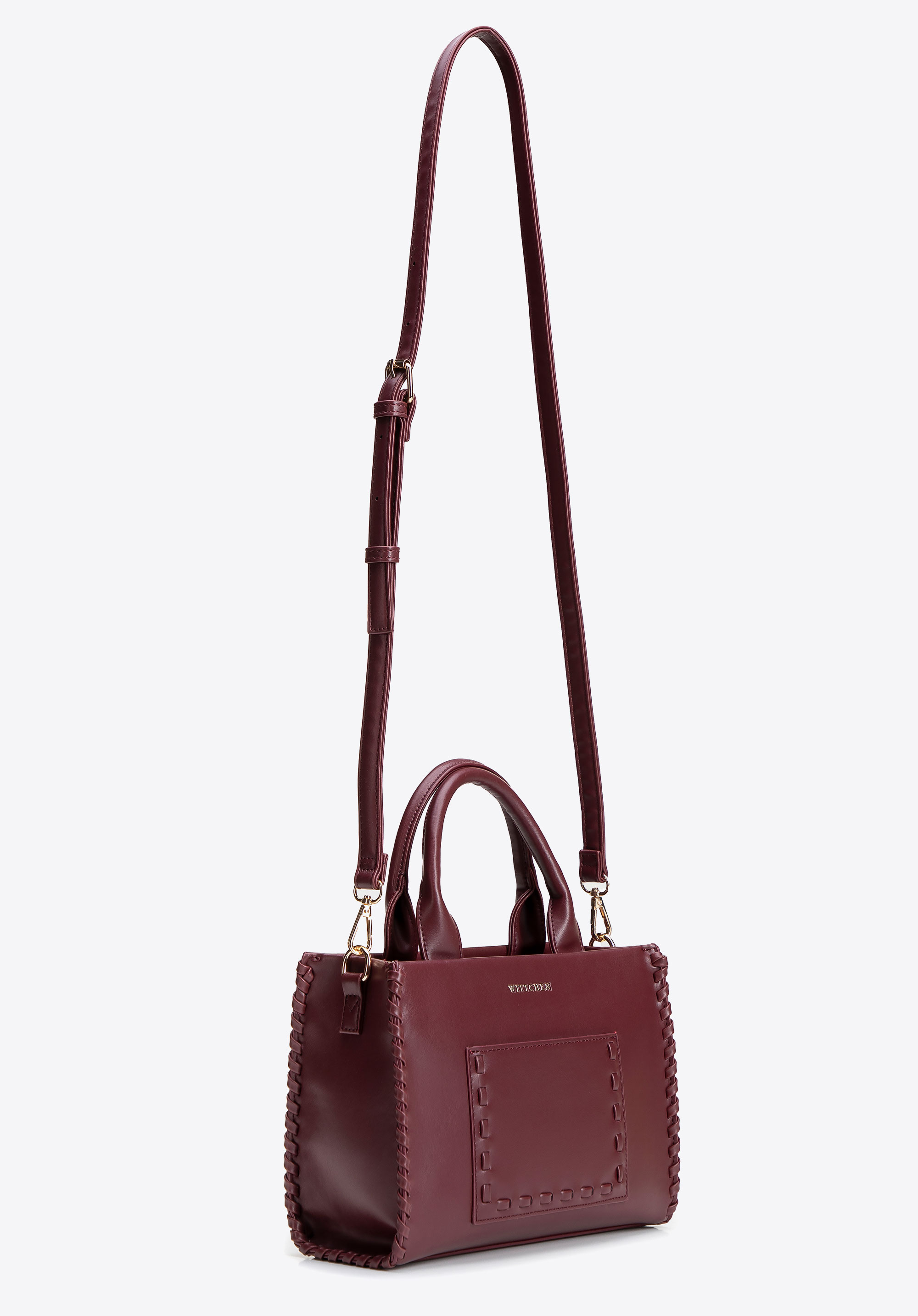 Női műbőr táska díszvarrással bordó