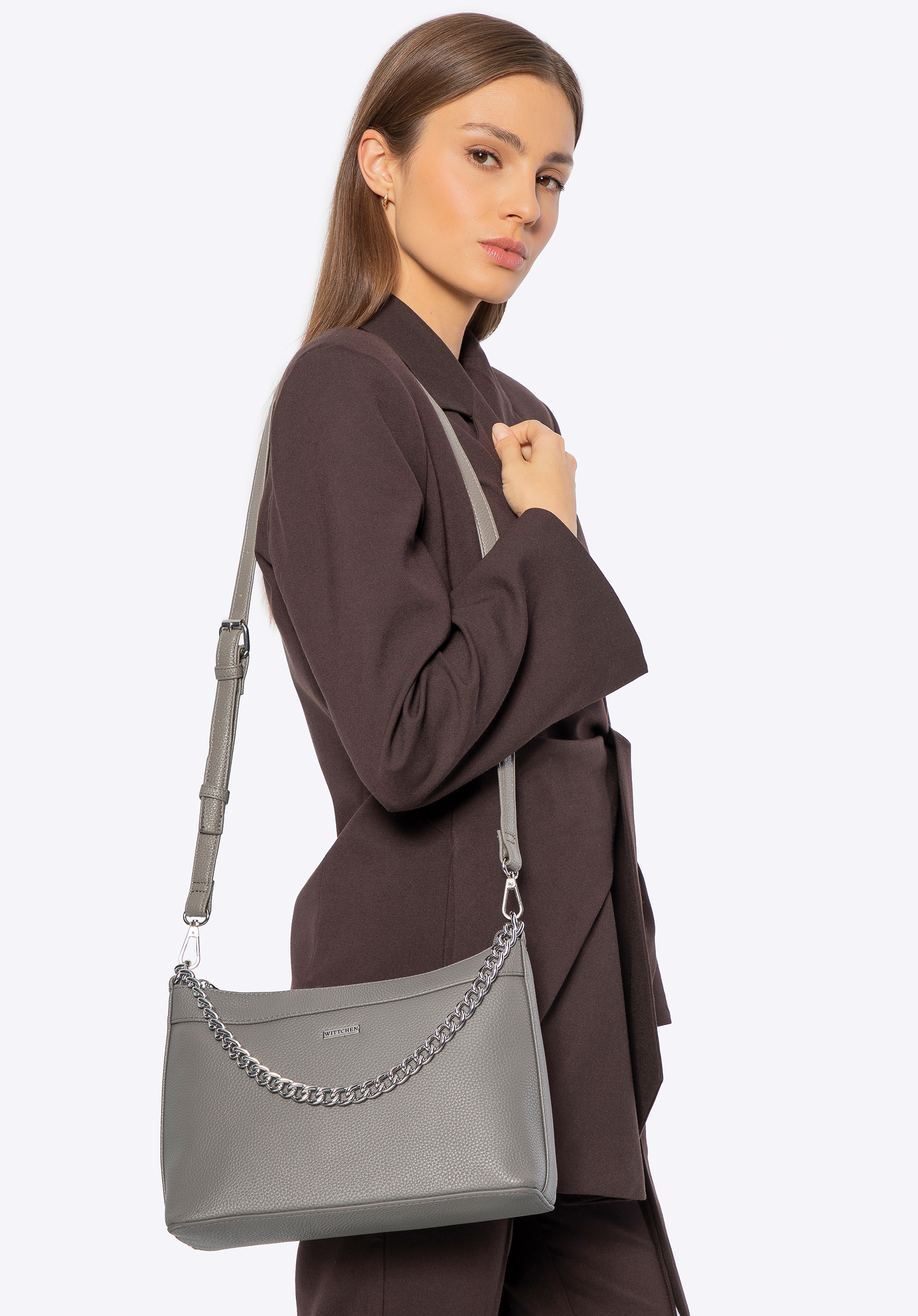 Tanácsunk: Párosítsa a kézitáskát klasszikus farmernadrággal, bő pulóverrel és kényelmes edzőcipővel a hétköznapi megjelenés érdekében. Egy esti kiránduláshoz válasszon elegáns ruhát, sarkú cipőt és finom ékszereket a lánc színében, hogy elegáns ruhát alkosson.