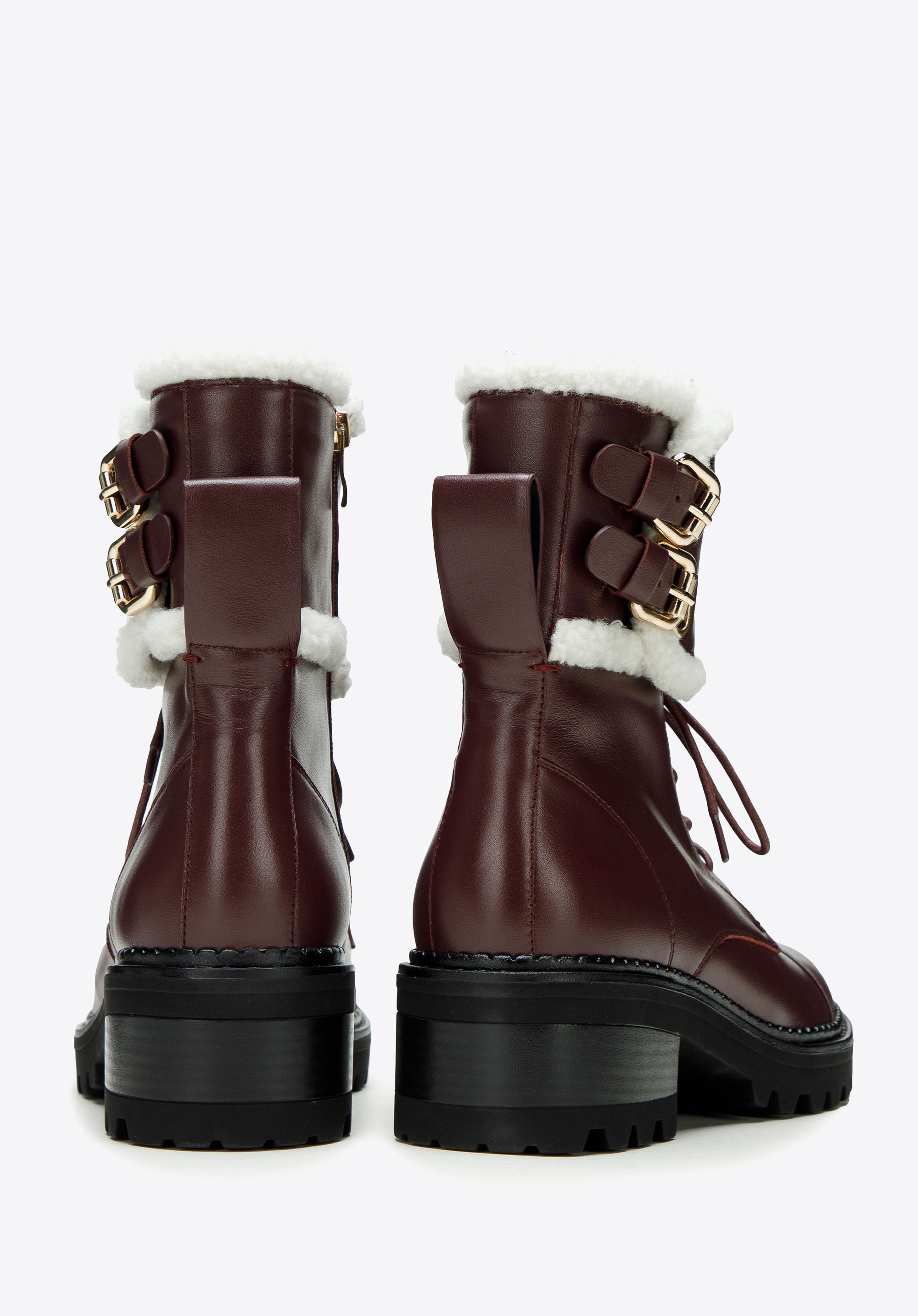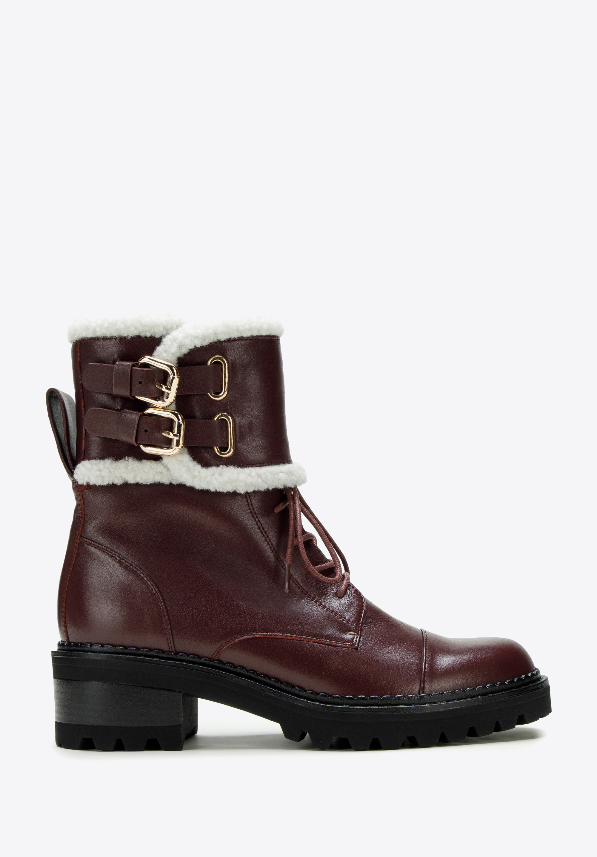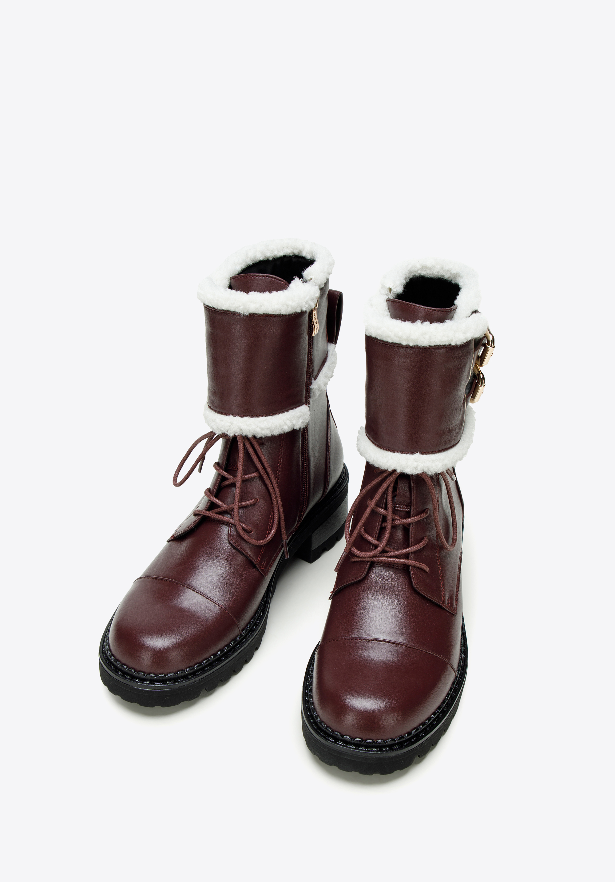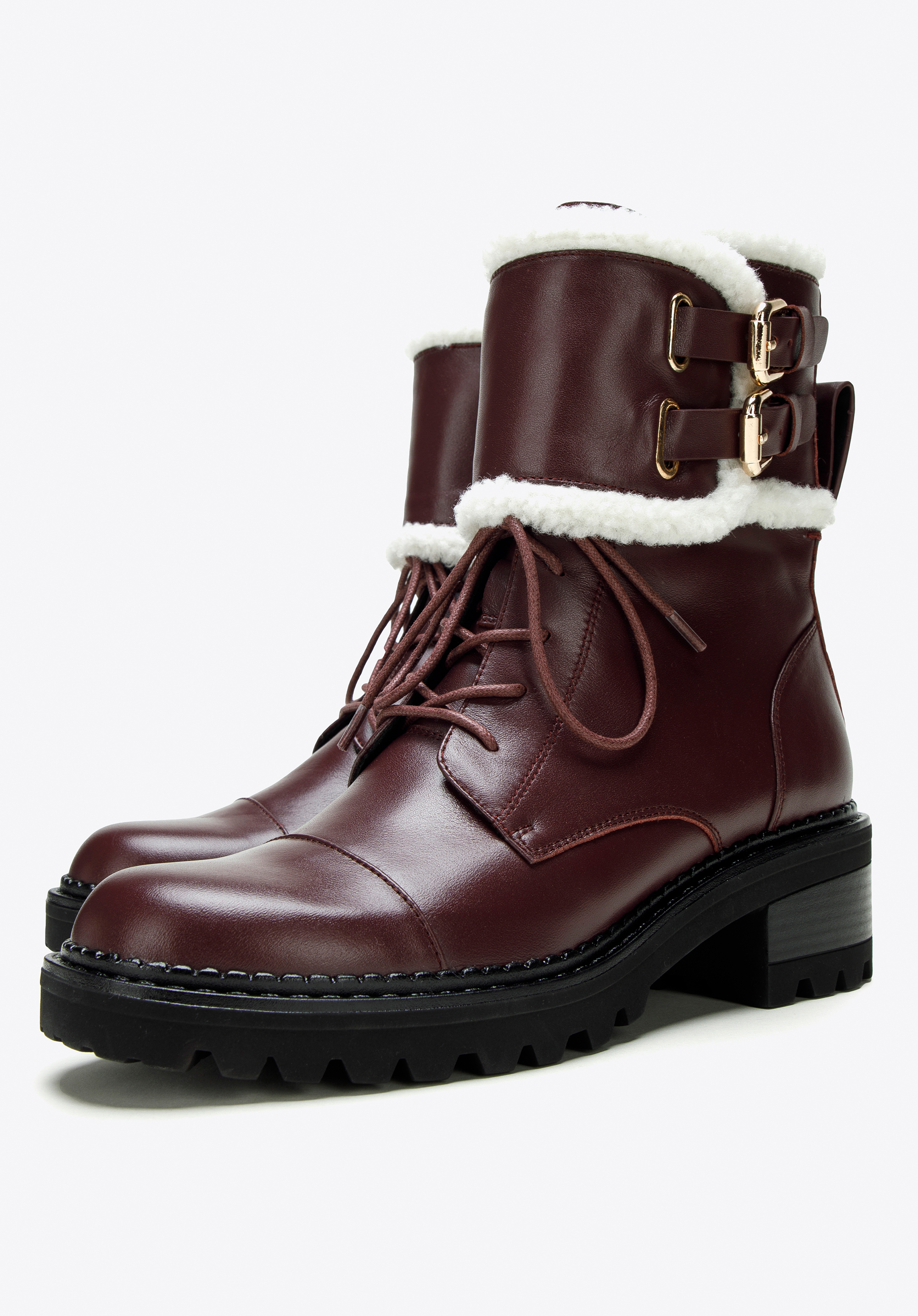 Ezt a stílusos fűzős bokacsizmát a kalandos őszi időjárásra tervezték. Prémium minőségű természetes bőrből készült, gumiból készült platform talppal és praktikus húzófüllel rendelkezik. A bolyhos műszőrme gallérral ezek a csizmák kifinomultságot kölcsönöznek minden öltözéknek. A praktikus oldalsó cipzárral és a dupla csattal záródó pánttal ez a csizma ideális társ a hideg téli napokra. Ez a bakancs izgalmat visz a téli hétköznapokba.
