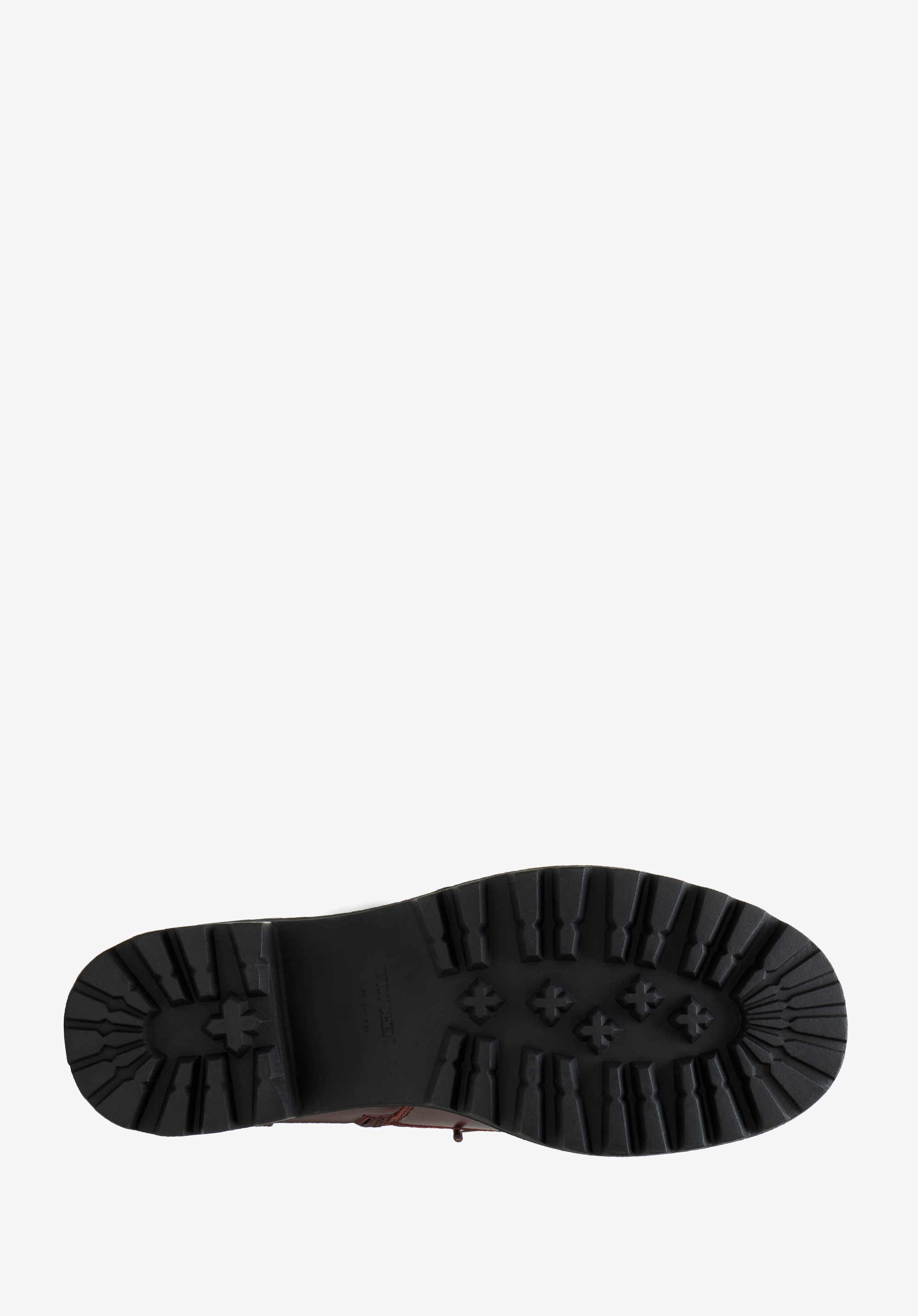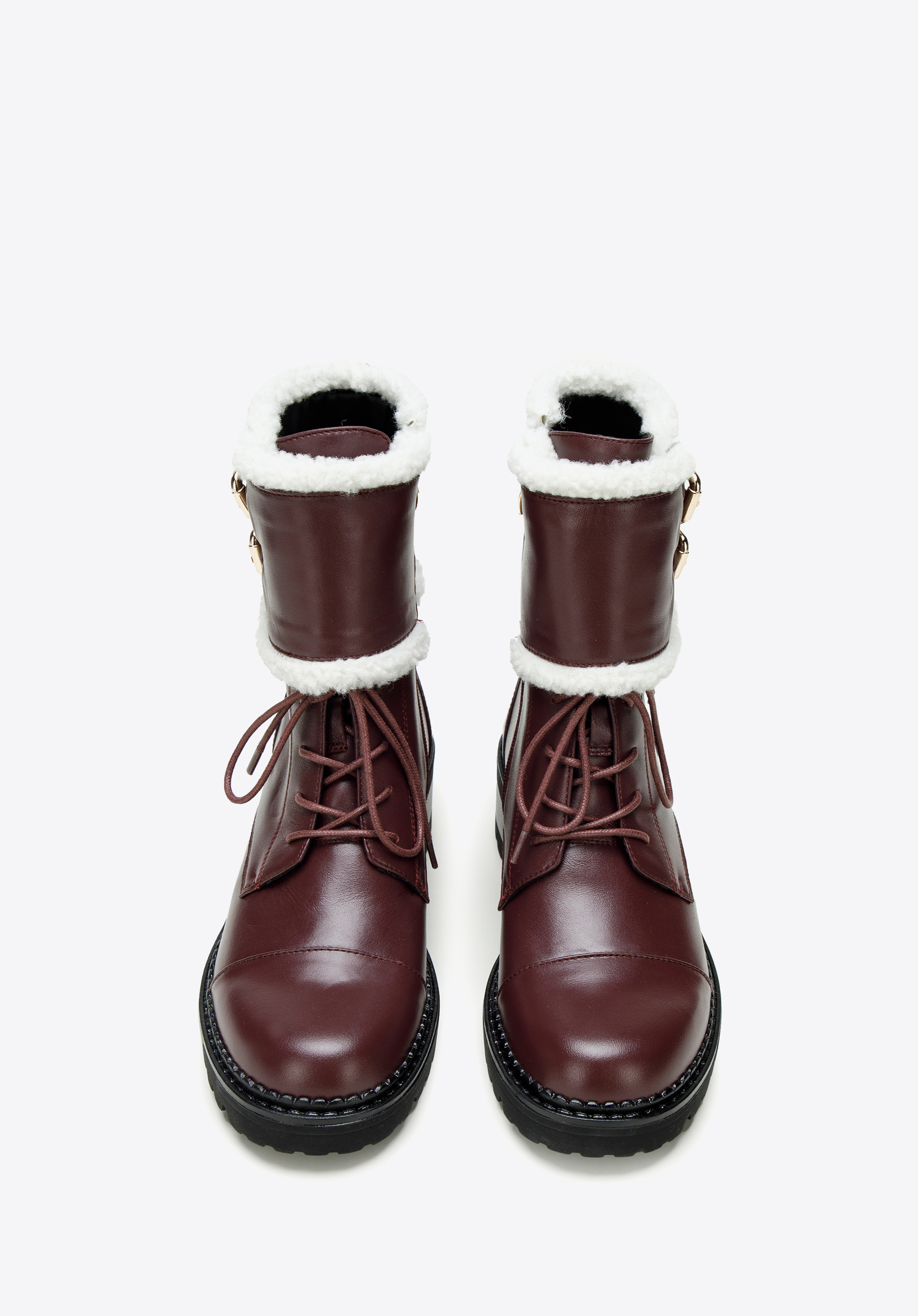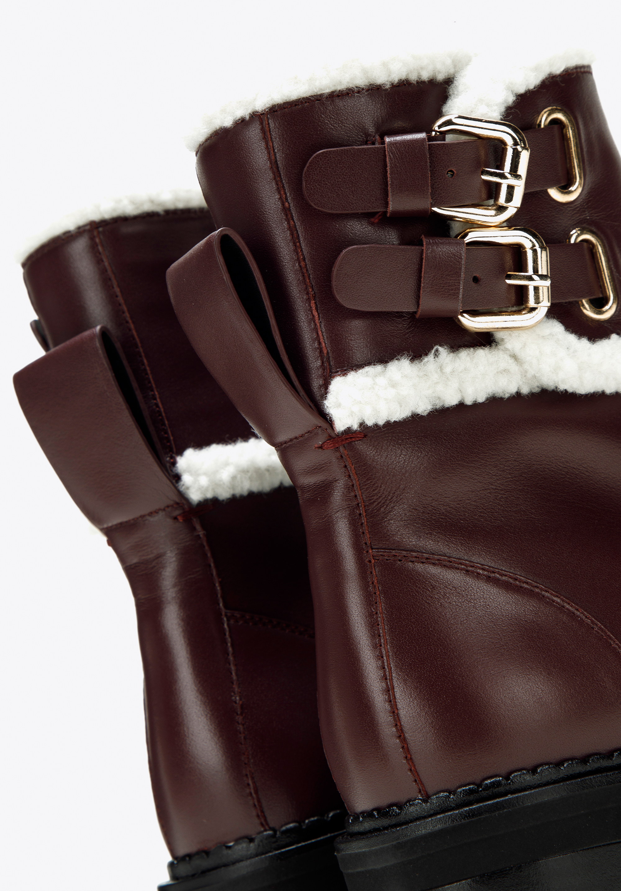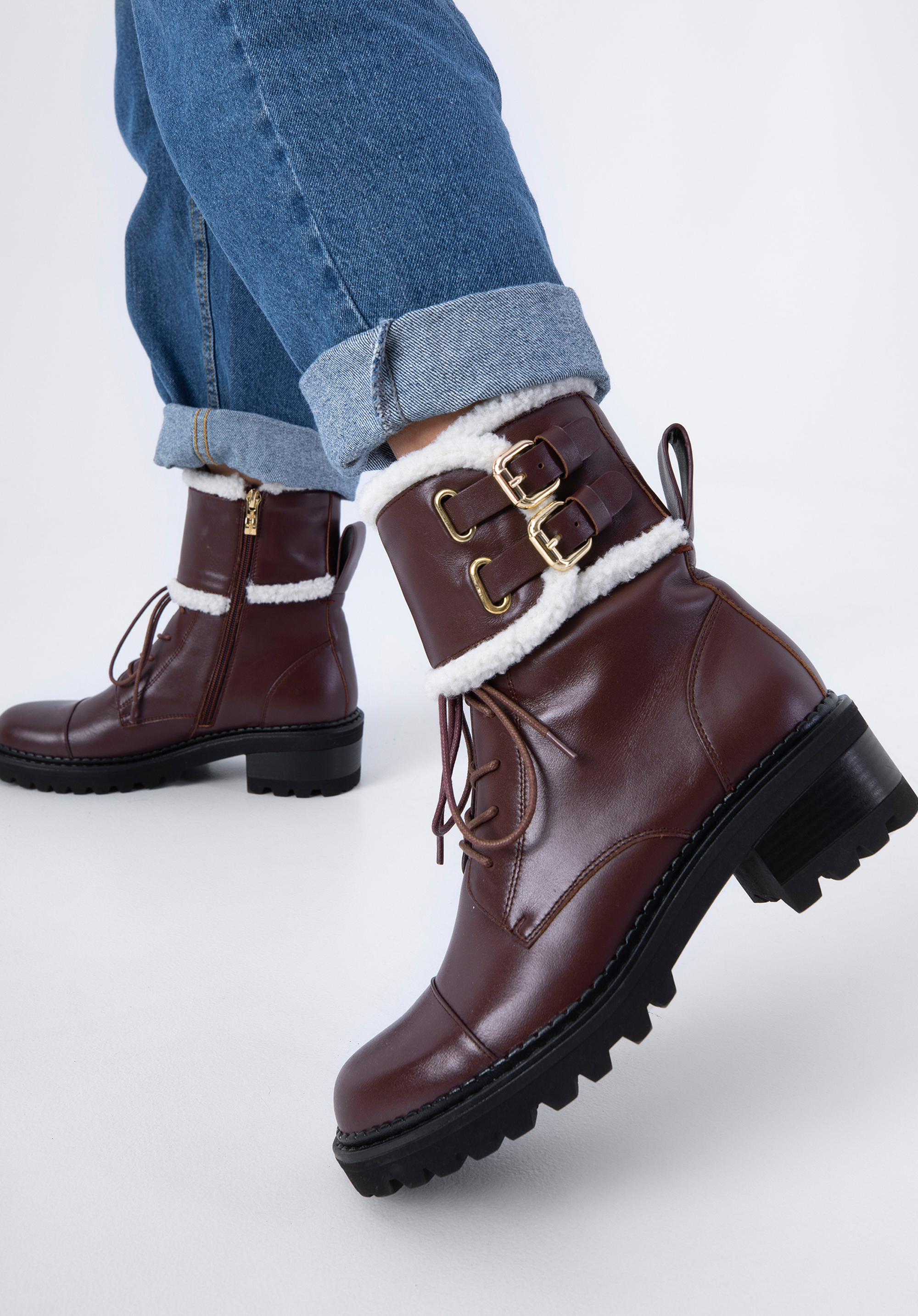 Ezt a stílusos fűzős bokacsizmát a kalandos őszi időjárásra tervezték. Prémium minőségű természetes bőrből készült, gumiból készült platform talppal és praktikus húzófüllel rendelkezik. A bolyhos műszőrme gallérral ezek a csizmák kifinomultságot kölcsönöznek minden öltözéknek. A praktikus oldalsó cipzárral és a dupla csattal záródó pánttal ez a csizma ideális társ a hideg téli napokra. Ez a bakancs izgalmat visz a téli hétköznapokba.