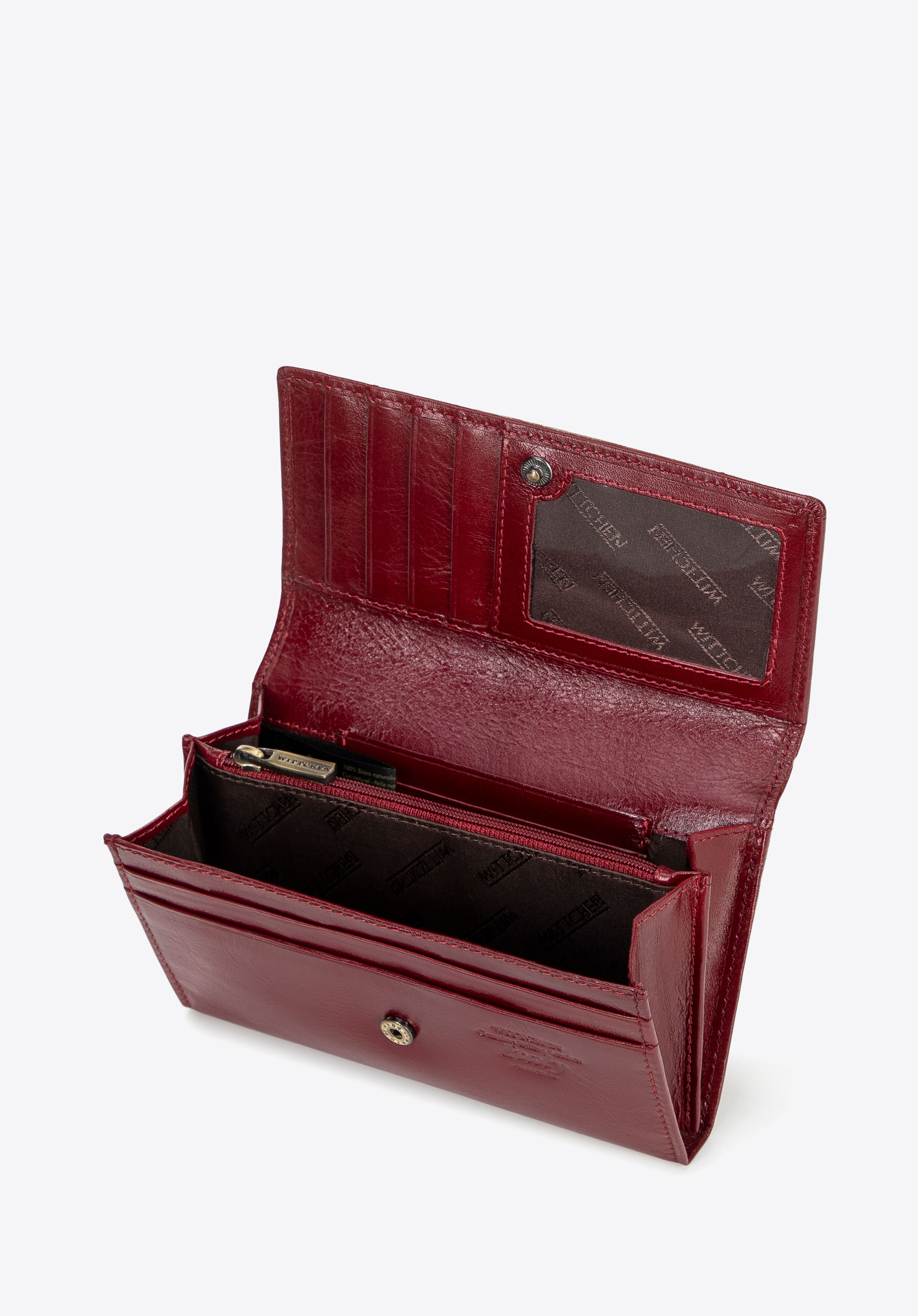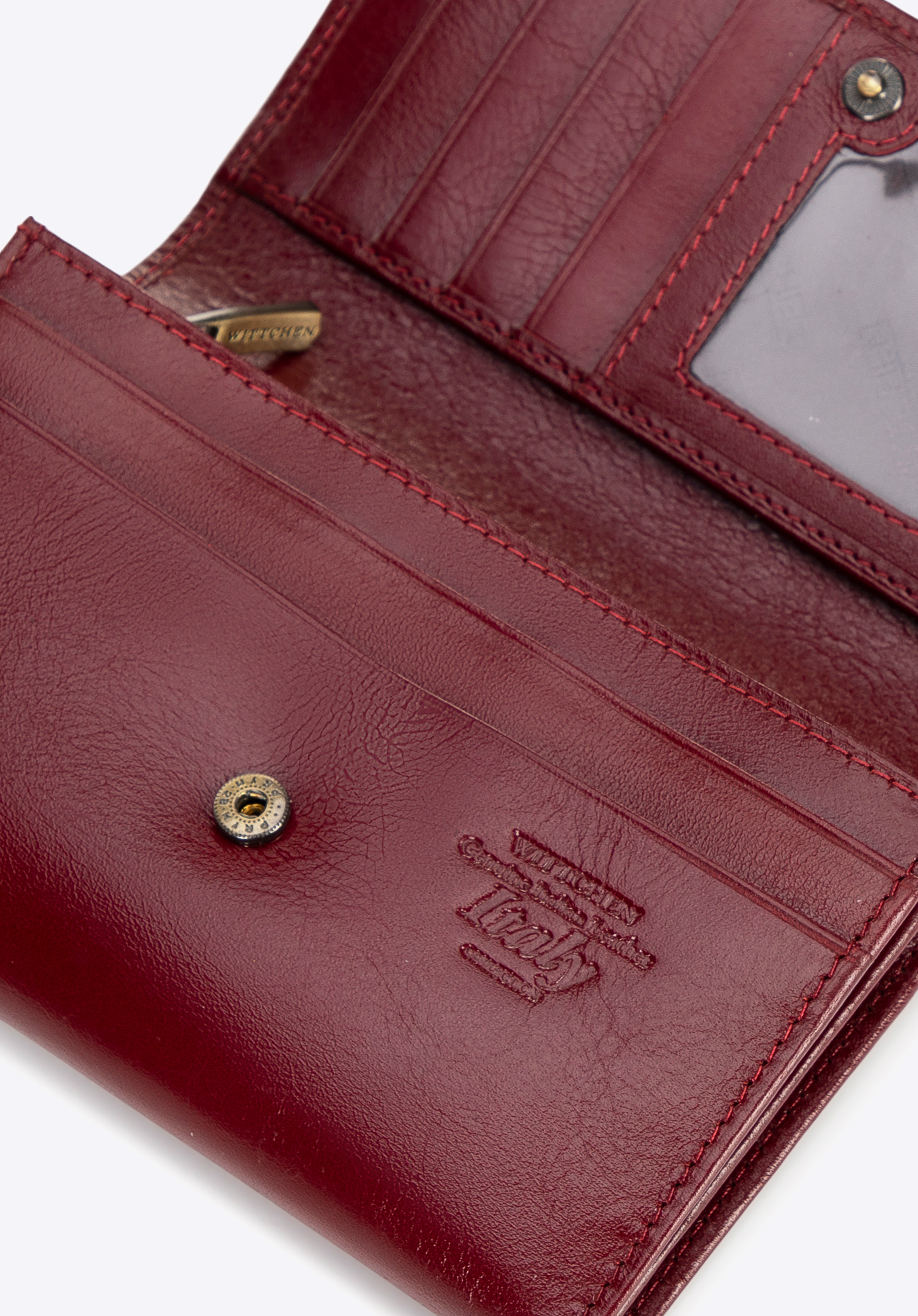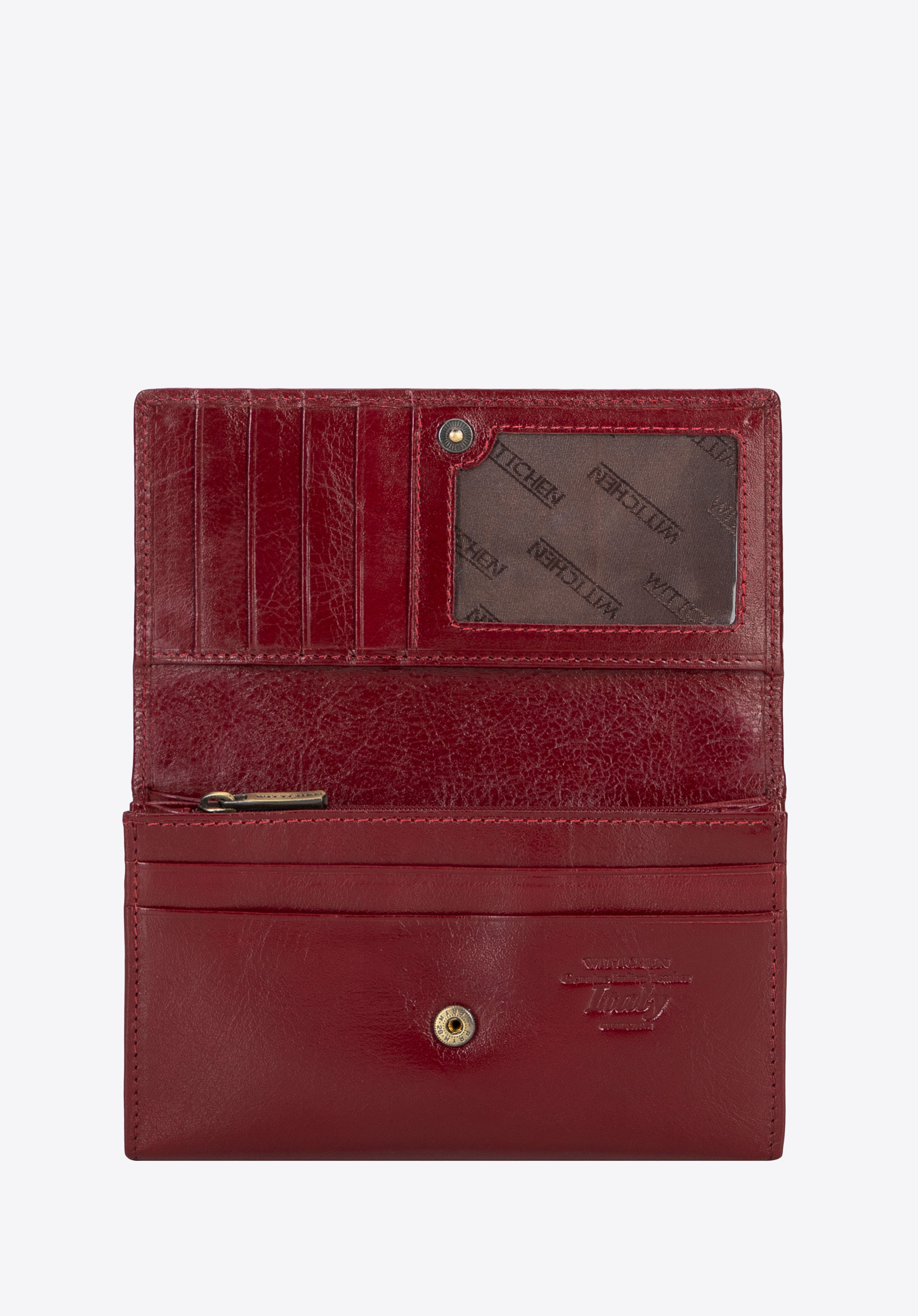 Ez a klasszikus női pénztárca tökéletes választás mindazok számára, akik értékelik az elegáns dizájnt és a kivételes kidolgozást. Sima, természetes bőrből készült, így mind a mindennapi, mind a formálisabb öltözékekhez illik. Belül két bankjegytartó rekeszt , egy cipzáras aprópénztartó zsebet , nyolc kártyatartót és öt további zsebet talál – köztük egy átlátszó rekeszt, amely tökéletes igazolvány, fénykép vagy utazási jegy tárolására.