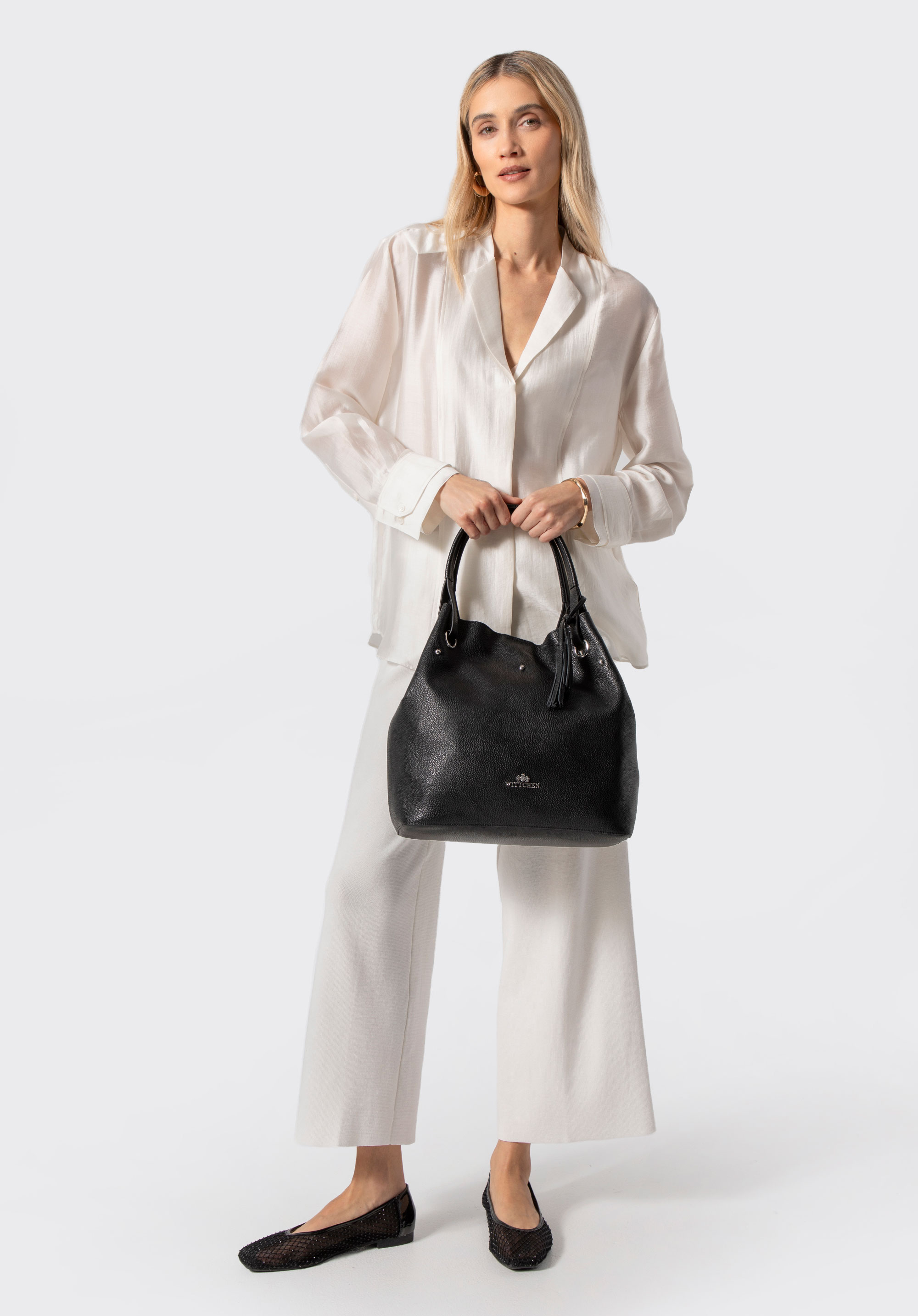 Hobo táskánk az elegancia és a funkcionalitás tökéletes keveréke. Természetes bőrből készült, tartós és egyedi designt kínál. A kézitáska levehető, állítható pánttal rendelkezik, így stílusodhoz és igényeidhez igazíthatod. Egyik fő jellemzője az alakja megváltoztathatósága – a belső, pattintható pántok segítségével a táska formáját az öltözékedhez vagy hangulatodhoz igazíthatod, így rendkívül sokoldalú választás.