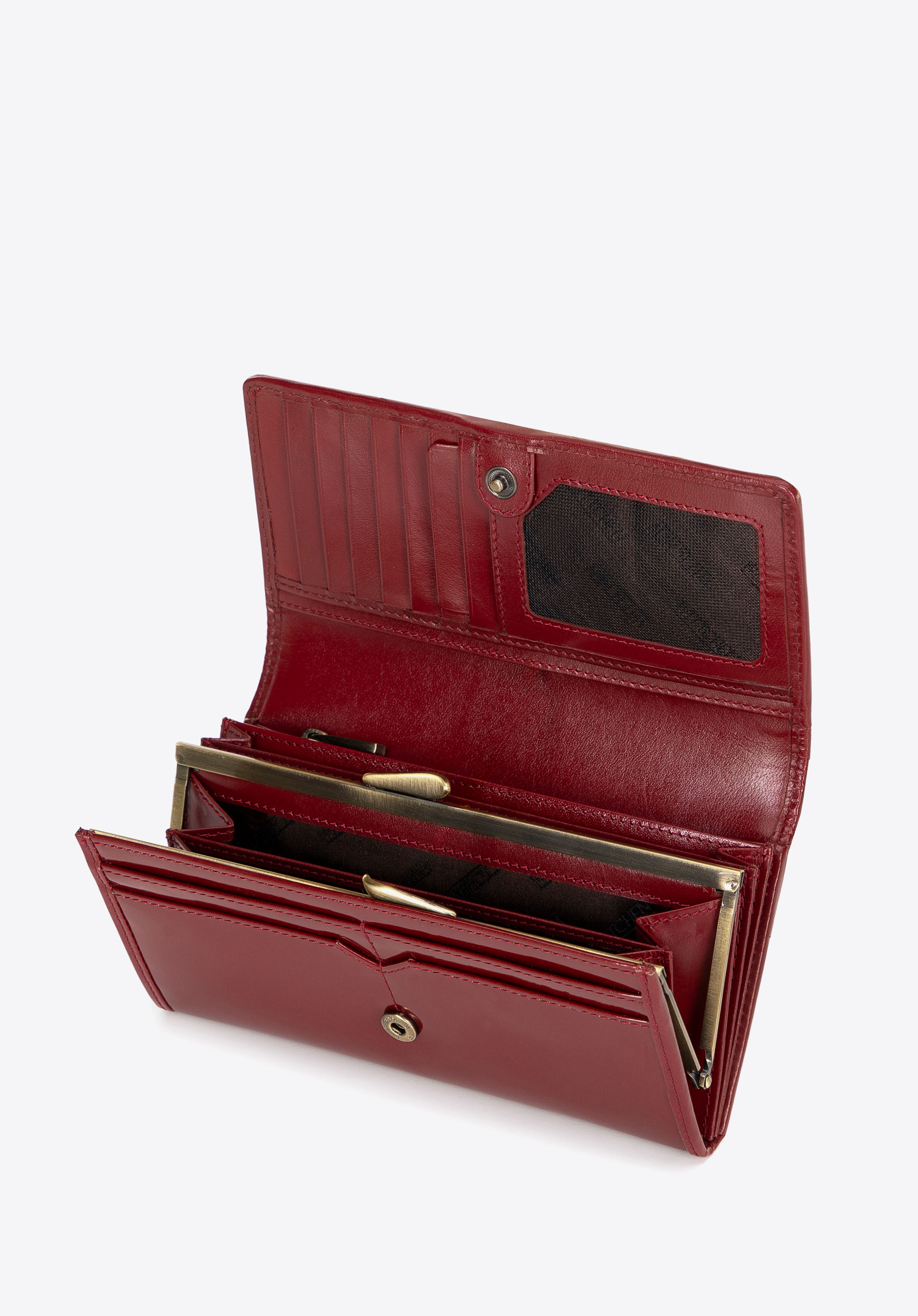 - Átgondolt felépítés: A pénztárca 3 bankjegyrekeszt, 12 kártyanyílást és 6 zsebet tartalmaz, köztük 2 cipzáras rekeszt és egy elegáns patenttel zárható érmezsebet.