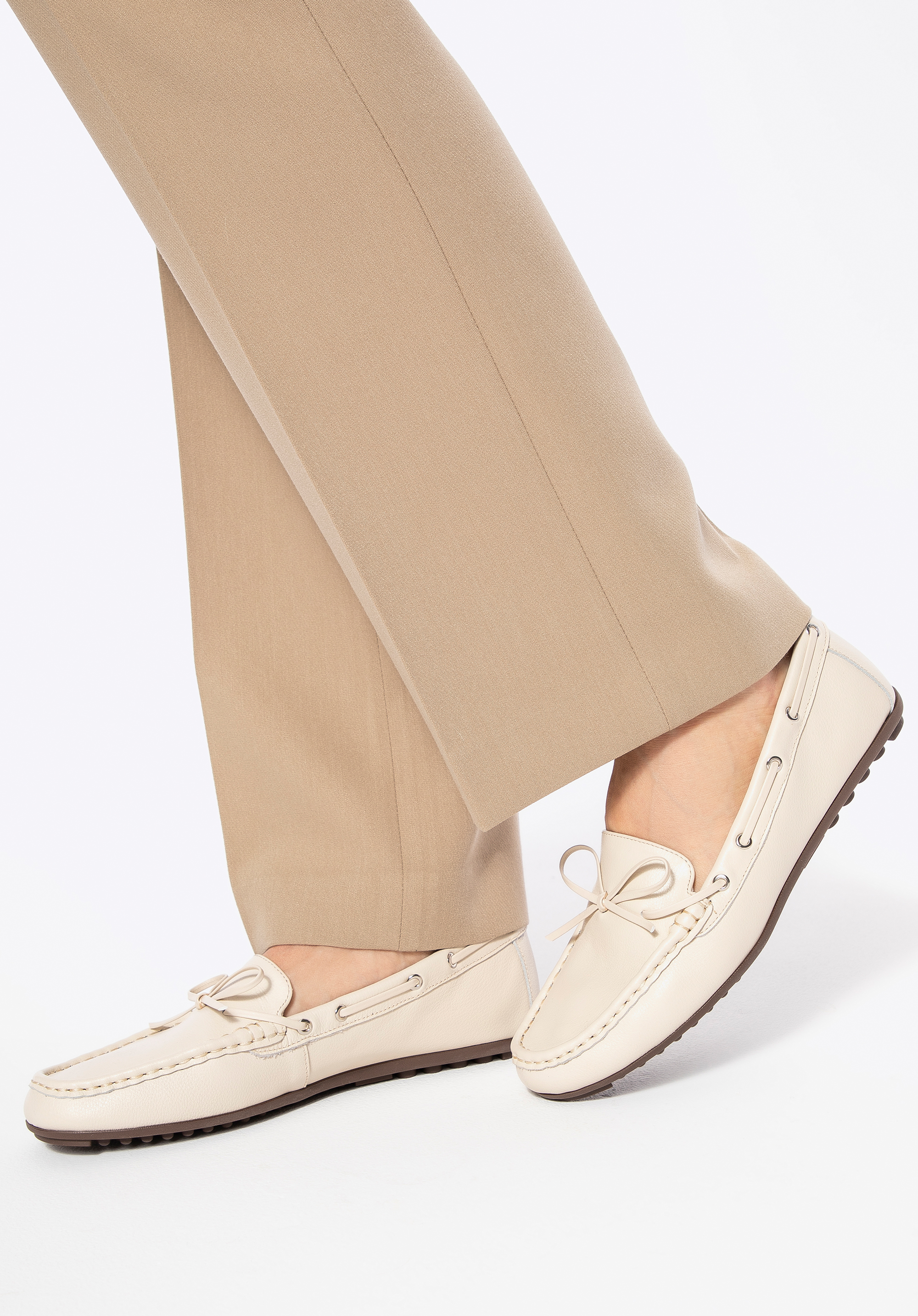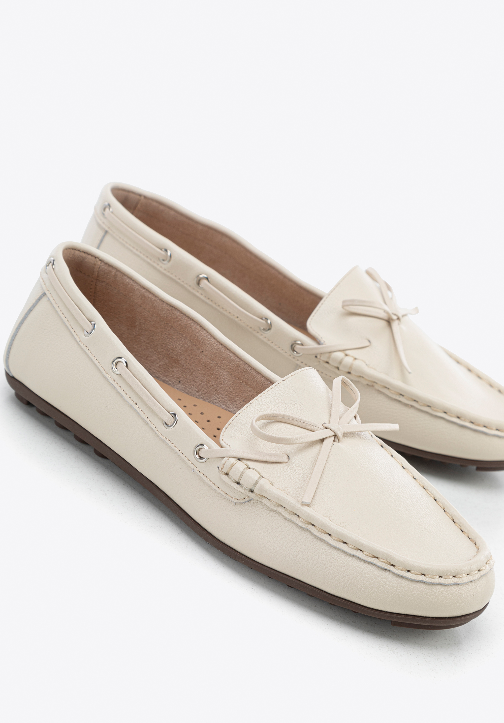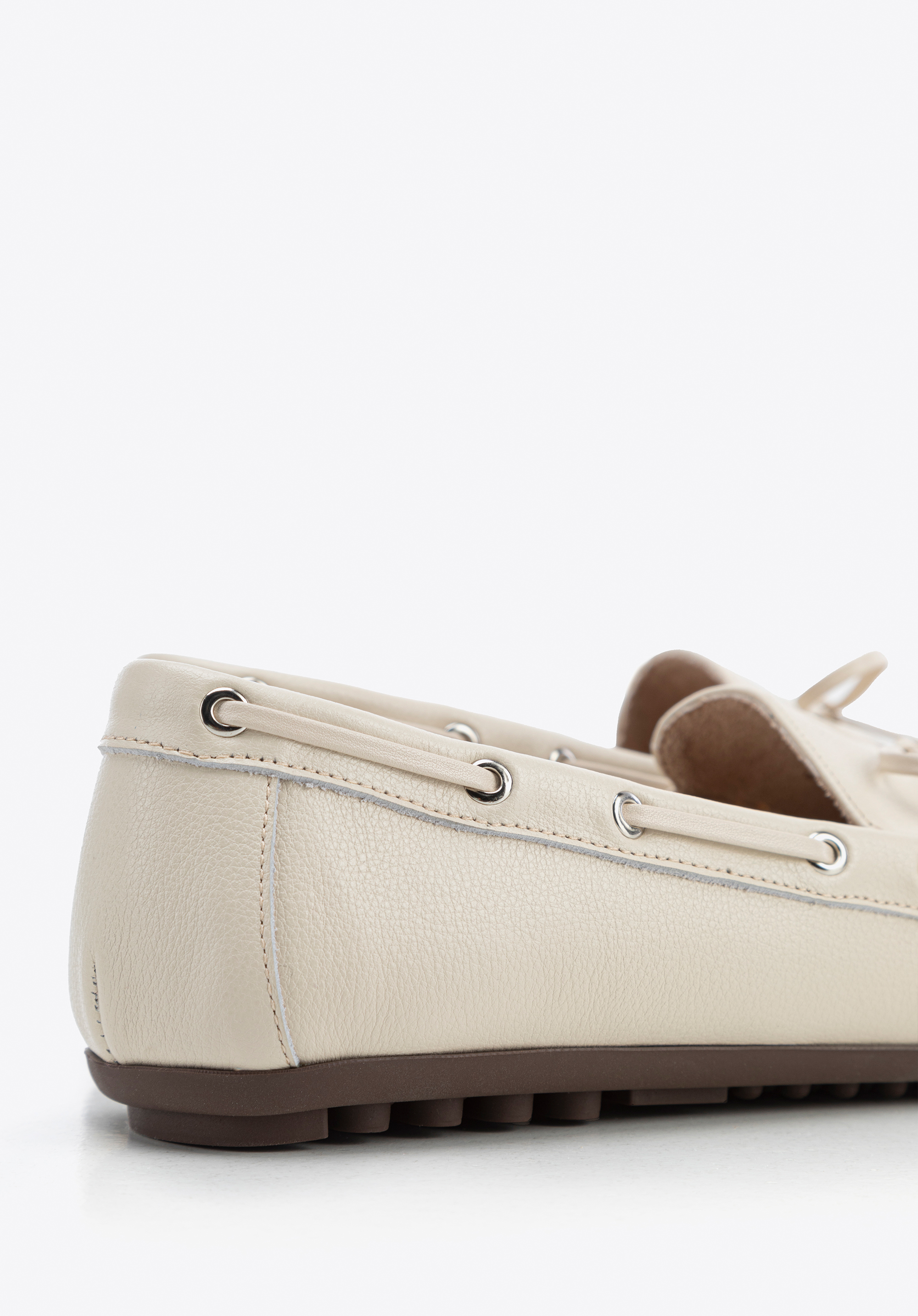 Elegancia minden lépésben – mokaszin dekoratív bőr masnival