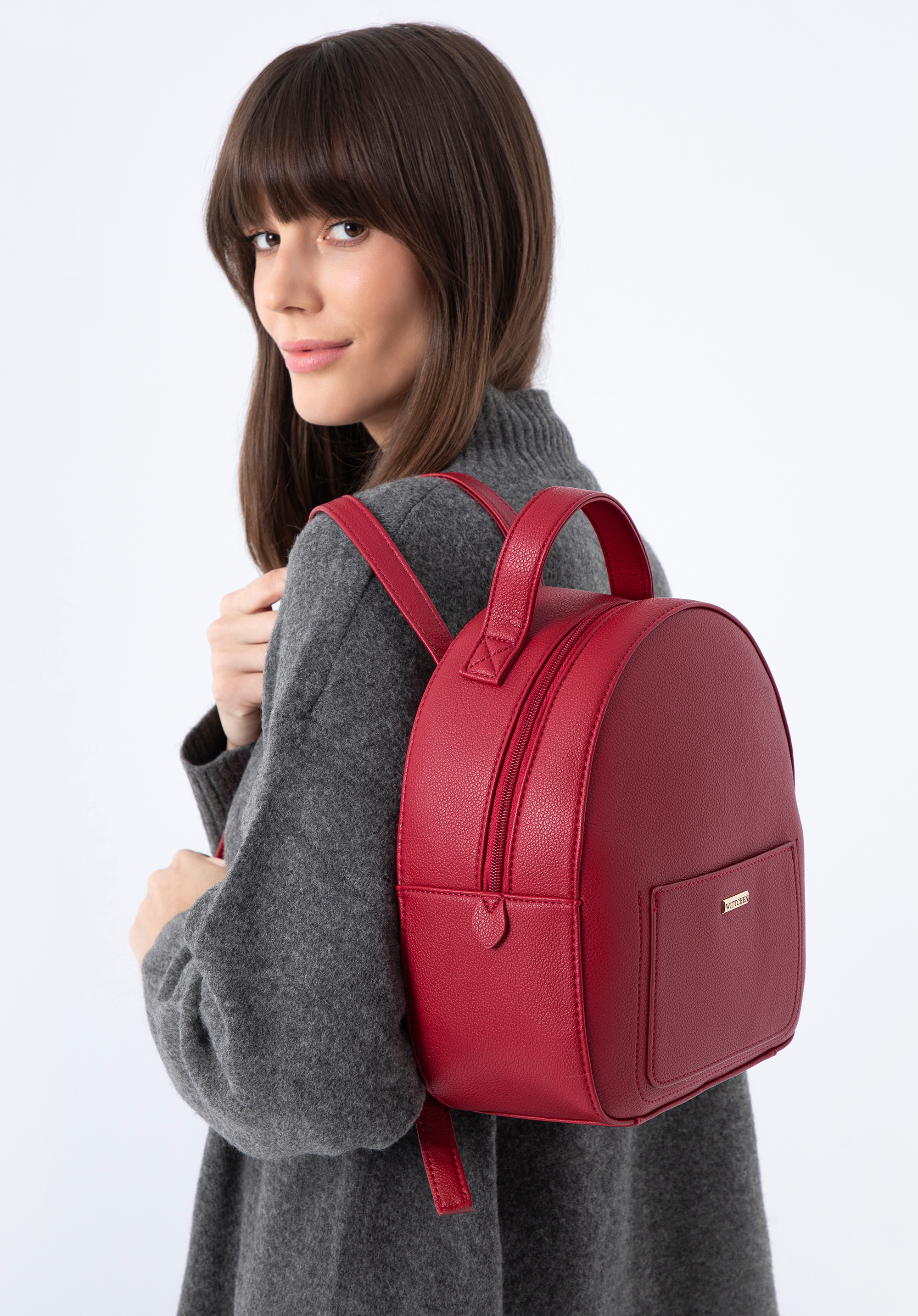Ez a hátizsák tetszeni fog a minimalista kiegészítők szerelmeseinek. Klasszikus lekerekített szabású, díszítések nélkül . Elöl nyitott zseb található , melynek formáját további dekoratív varrások hangsúlyozzák. Kellemes tapintású, finom szemcsés ökológiai bőrből készült . Belül elfér egy pénztárca, telefon, naptár, rágcsálnivalók és néhány kozmetikum – tökéletes egy hétvégi városnézéshez, piknikhez vagy egy baráti kávézáshoz. Viseld mintás ruhákhoz, vagy varázsolj eleganciát kedvenc boyfriend farmereidbe és pólóidba. Ez a kicsi, lekerekített női ökobőr hátizsák több évszakos kiegészítő, amelyet érdemes a ruhatáradban tartani.