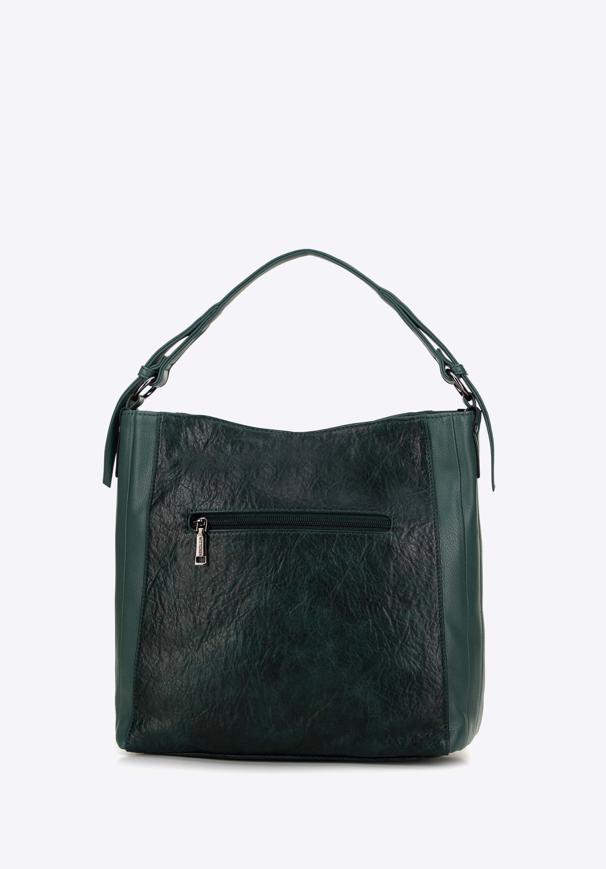 - Kivitel: Hobo táska oldalt dekoratív varrással és szegecsekkel díszített fogantyúval .