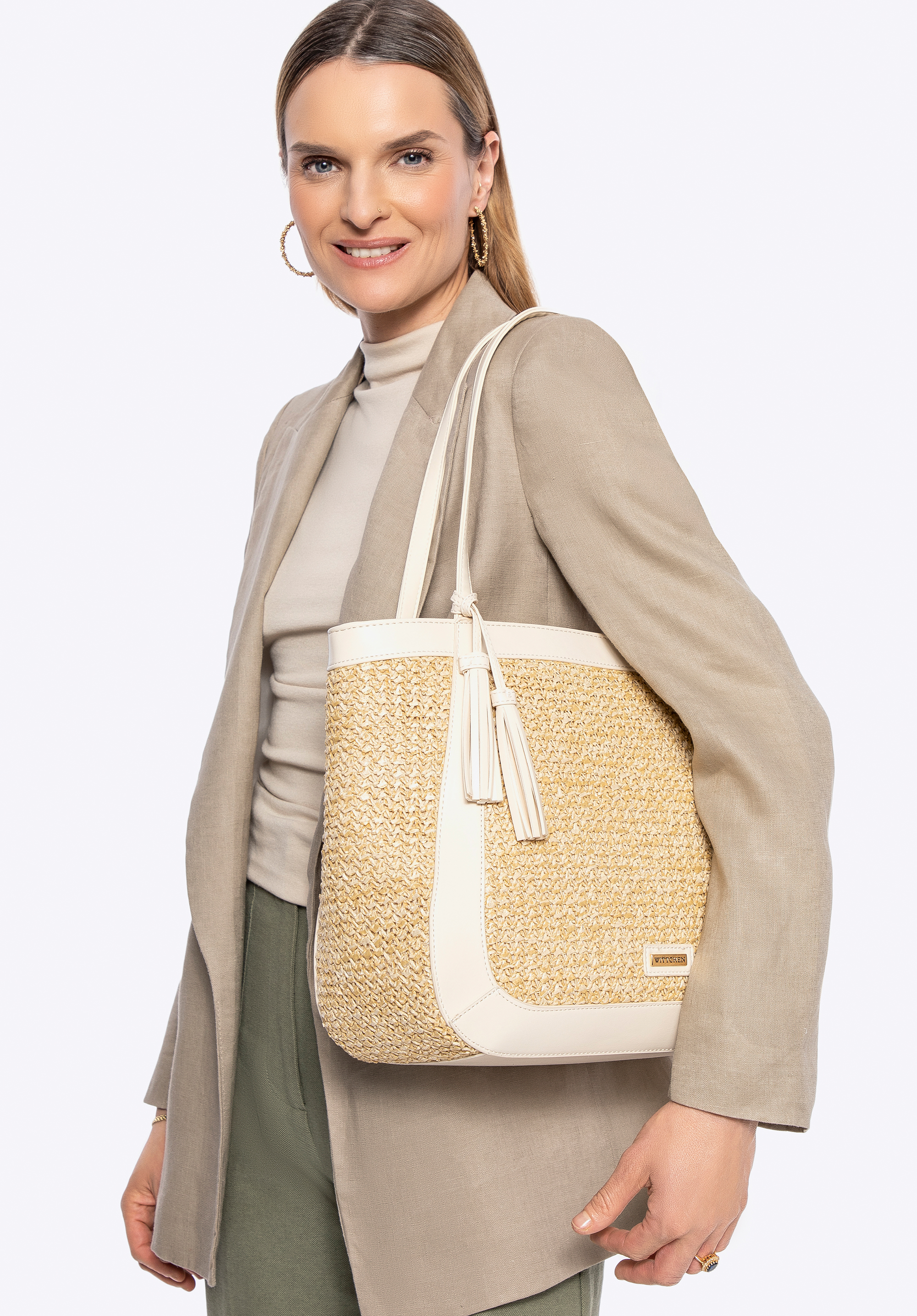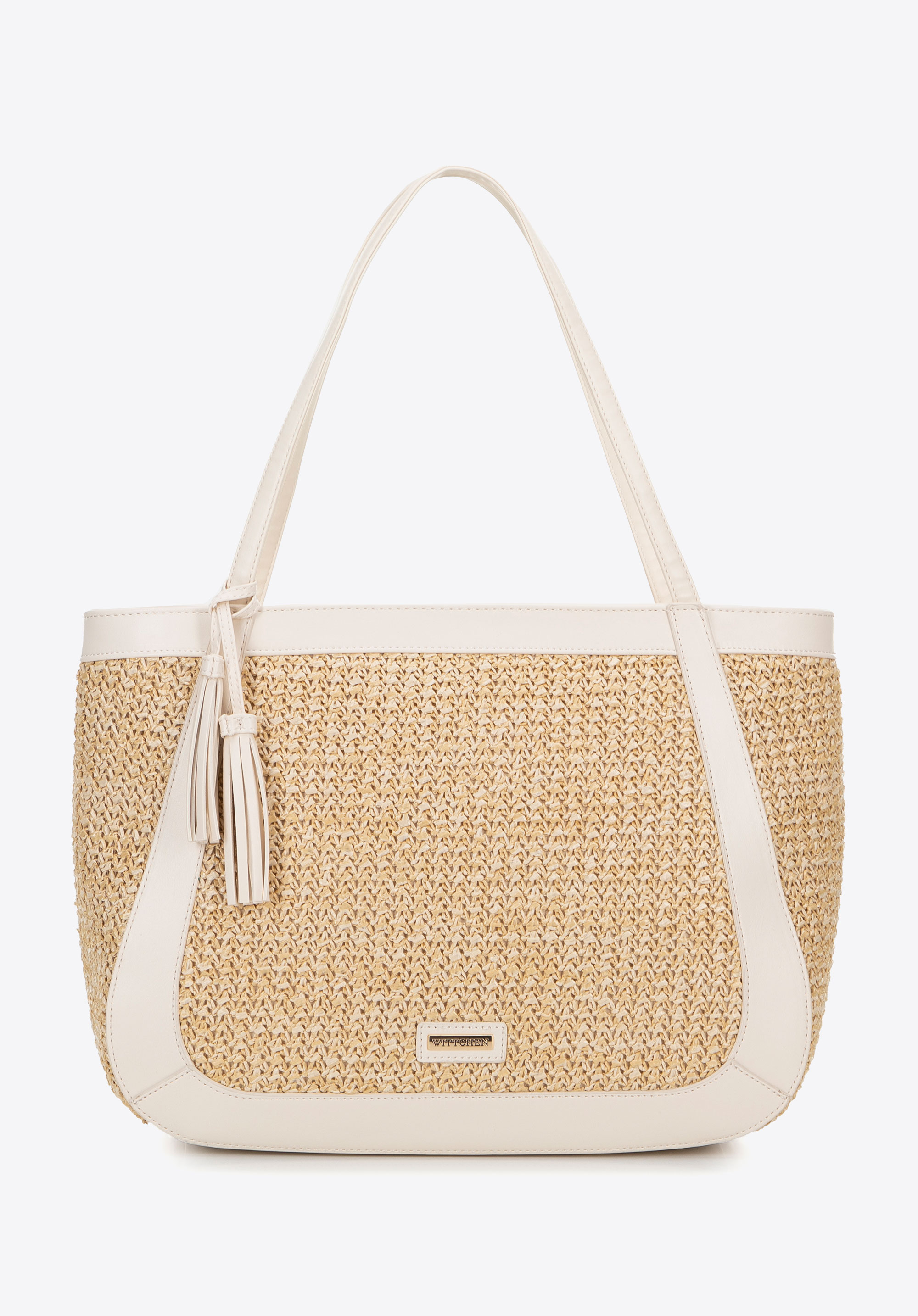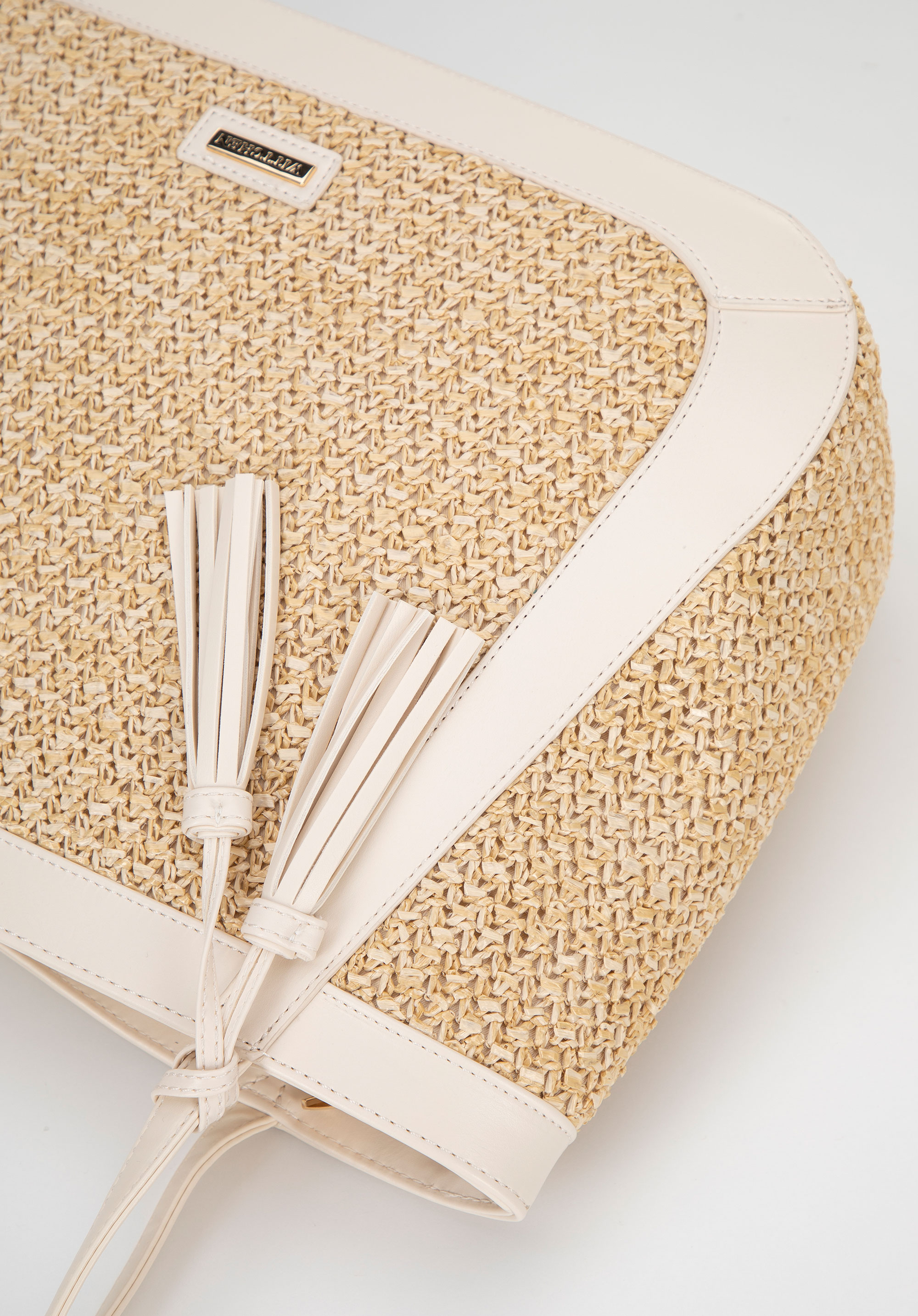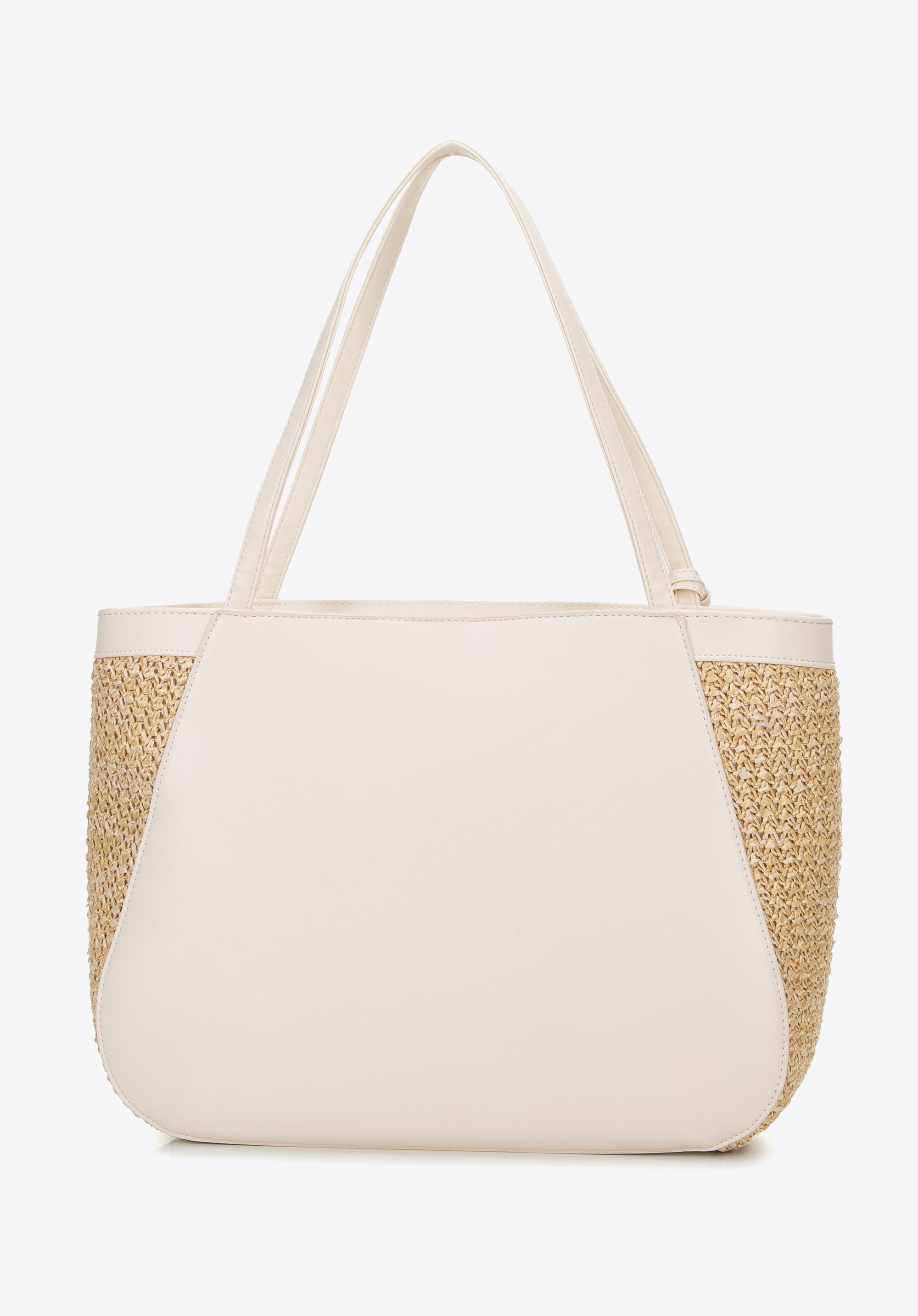 Női ökobőr fonott shoppertáska bézs-krém