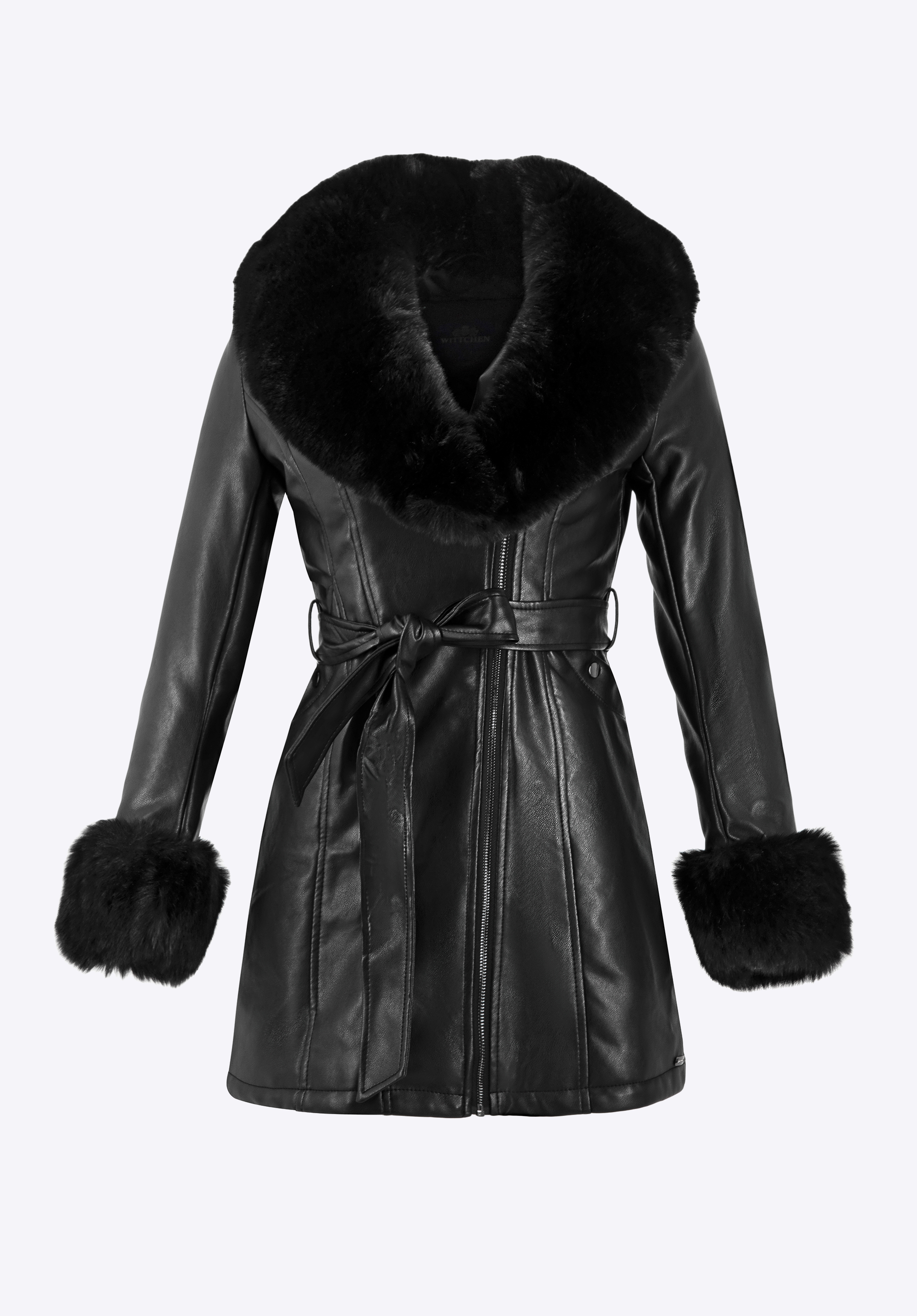 Fedezd fel az eleganciát és a modernitást egyben a női ökobőr kabátunkkal, amely a funkcionalitást a luxus stílussal ötvözi. Ez az egyedi modell tökéletes választás azoknak a nőknek, akik a hidegebb napokon az esztétikát és a kényelmet egyaránt értékelik. A levehető szőrme gallér és mandzsetta luxusérzetet kölcsönöz. A praktikus, bepattintható zsebek és a gyártó finom logója a szegélyen teszik teljessé ezt az elegáns megjelenést. Tökéletes választás minden alkalomra.