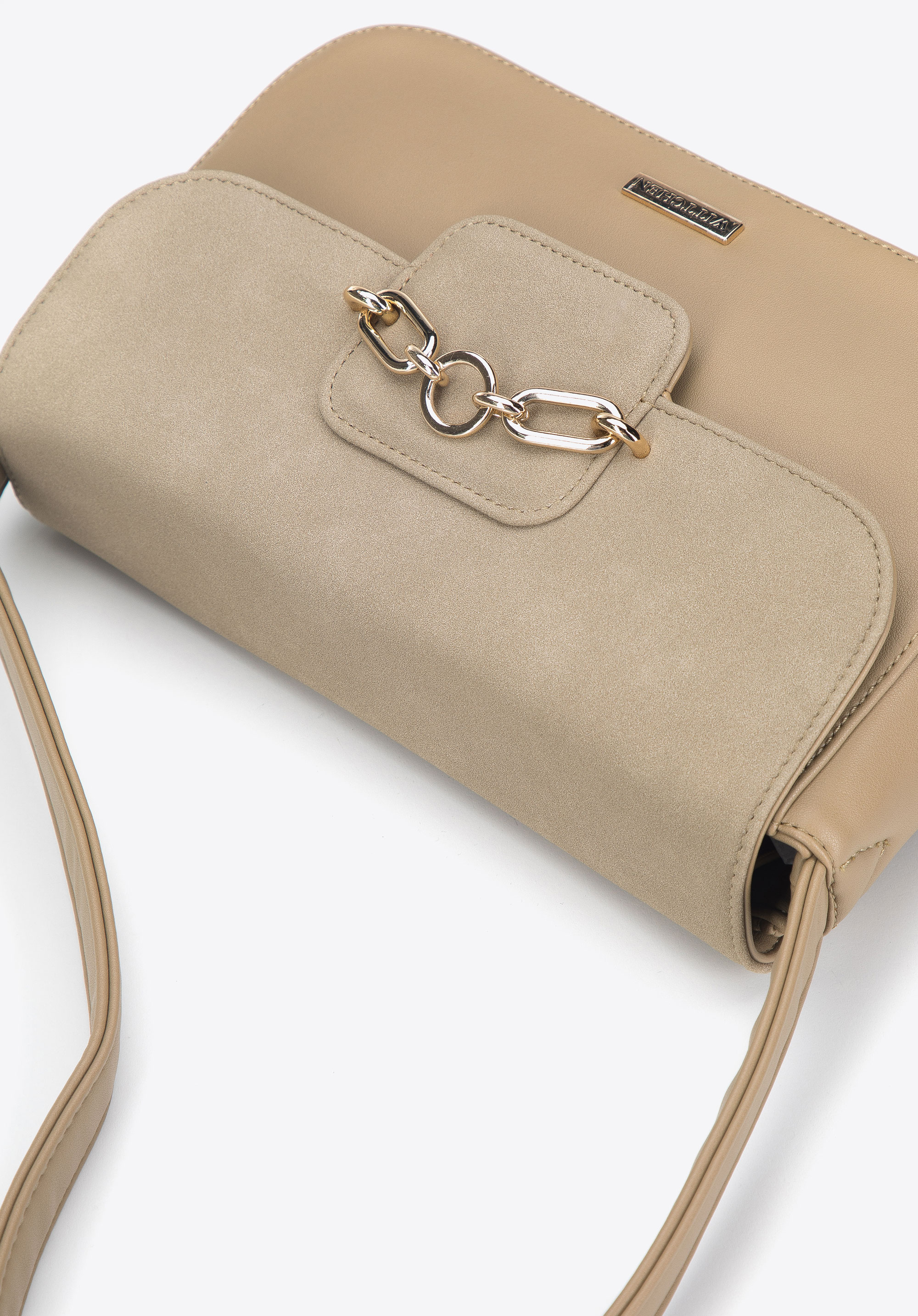 Ezzel az elegáns kistáskával minden nap stílusos leszel. Két anyagból készült: sima ökobőrből és ökovelúrból. Ezen kívül fedele széles láncszemekből álló rövid lánccal lett díszítve, ami pompát kölcsönöz neki. Kicsi, de elfér benne telefon, pénztárca, naptár és pár kozmetikum. Rövid pántja van, mellyel hordhatod kezedben, vagy a válladra akaszthatod. Remek kiegészítője lesz egy elegáns ruhának, de hétköznapi változatban farmerrel, és bőrdzekivel is stílusos lesz. Ez a női ökobőr kistáska minden modern nő időtlen kiegészítője.