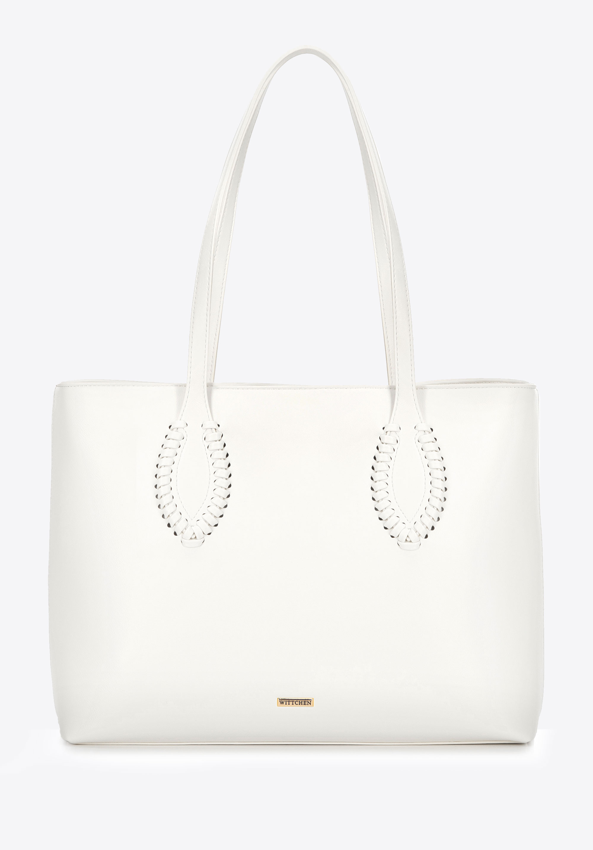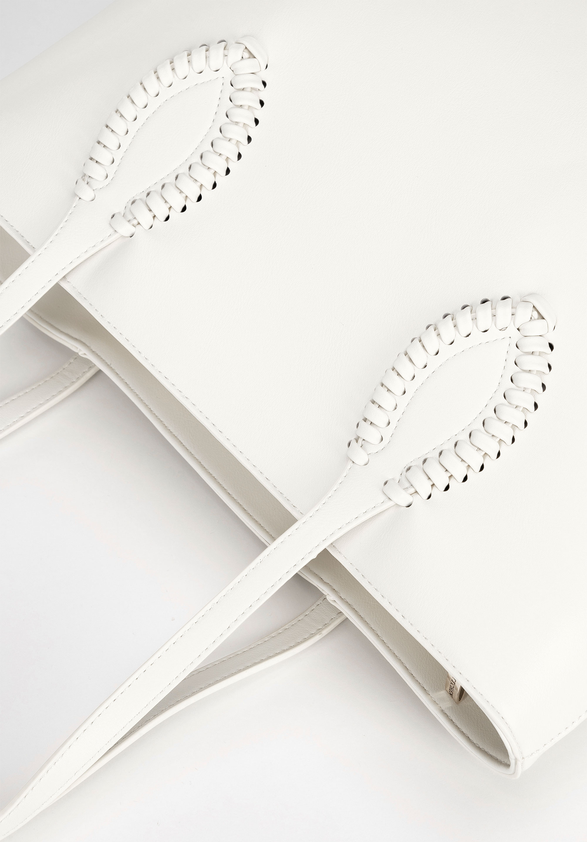 Stílusos, tágas és tökéletesen szervezett – ez a shoppertáska elengedhetetlen a mindennapi ruhákhoz. Klasszikus dizájnja finom részletekkel kibővítve tökéletesen illeszkedik az elegáns és a hétköznapi megjelenéshez. Két kényelmes fogantyú lehetővé teszi a könnyű vállon hordozást, míg a fogantyúk dekoratív szőtt részlete egyedi megjelenést kölcsönöz. A táska cipzárral záródik, belsejében pedig három praktikus zseb található, köztük egy cipzáras zseb. Egy további nyitott zseb a hátoldalon tökéletes a legfontosabb dolgok számára.