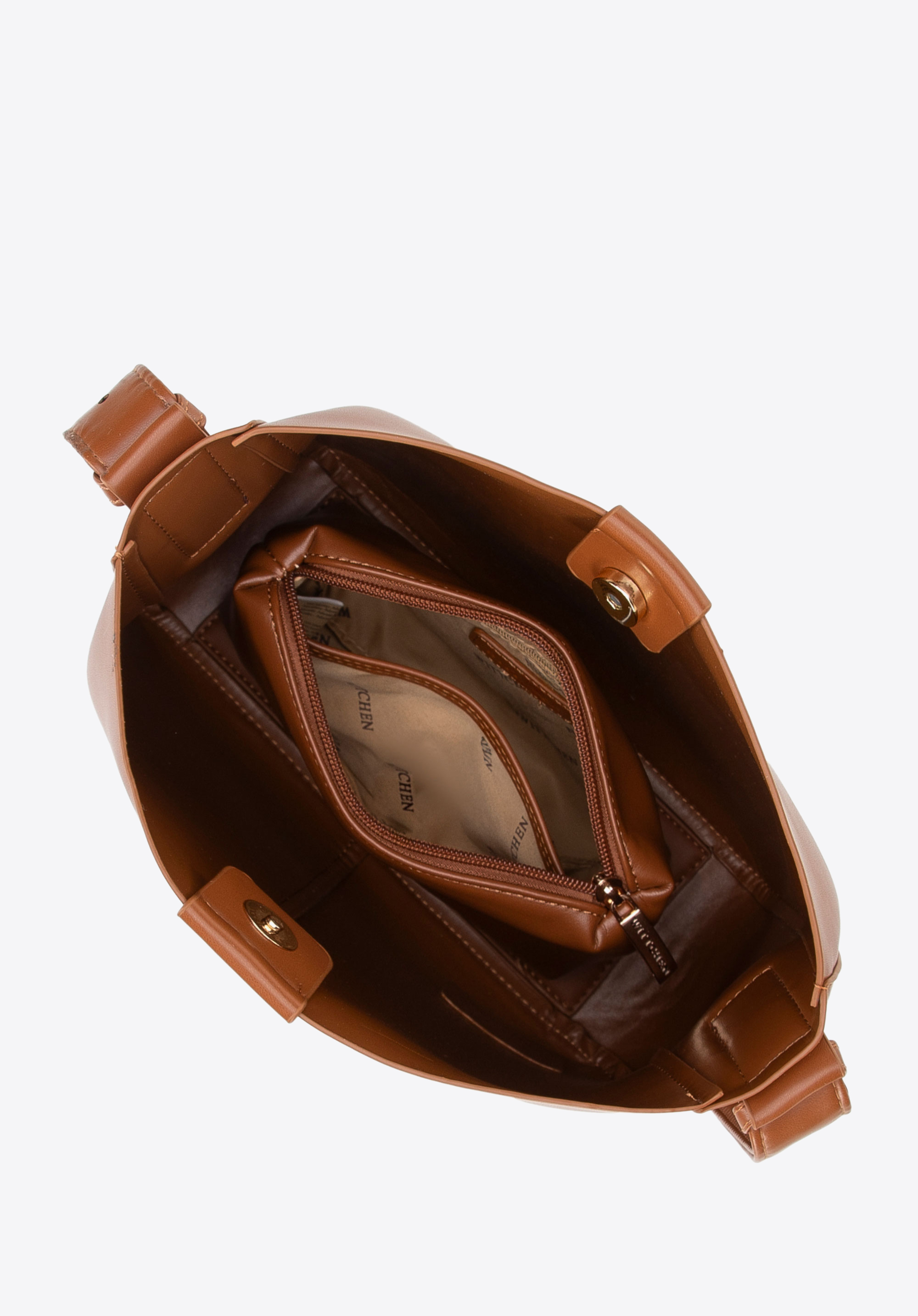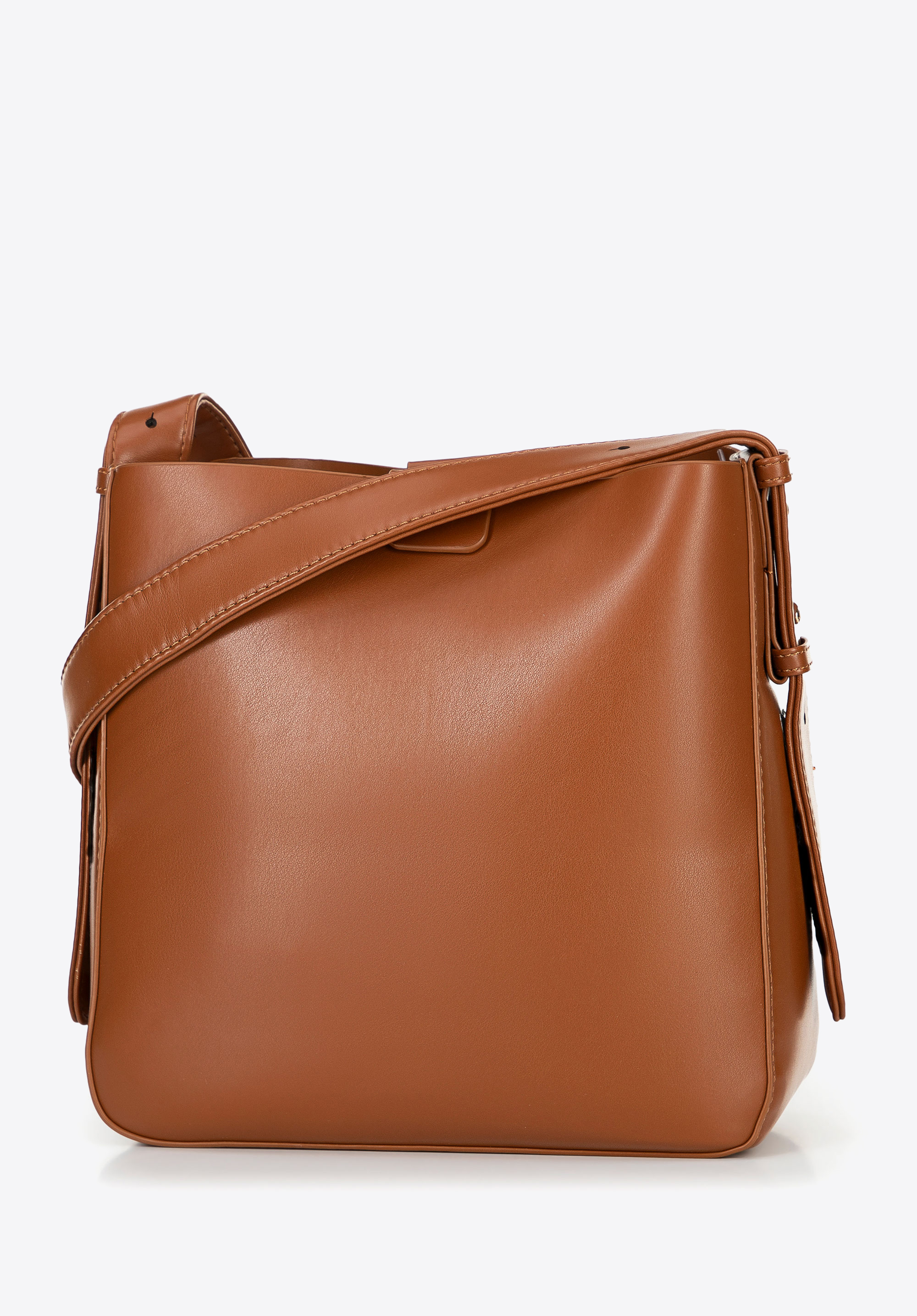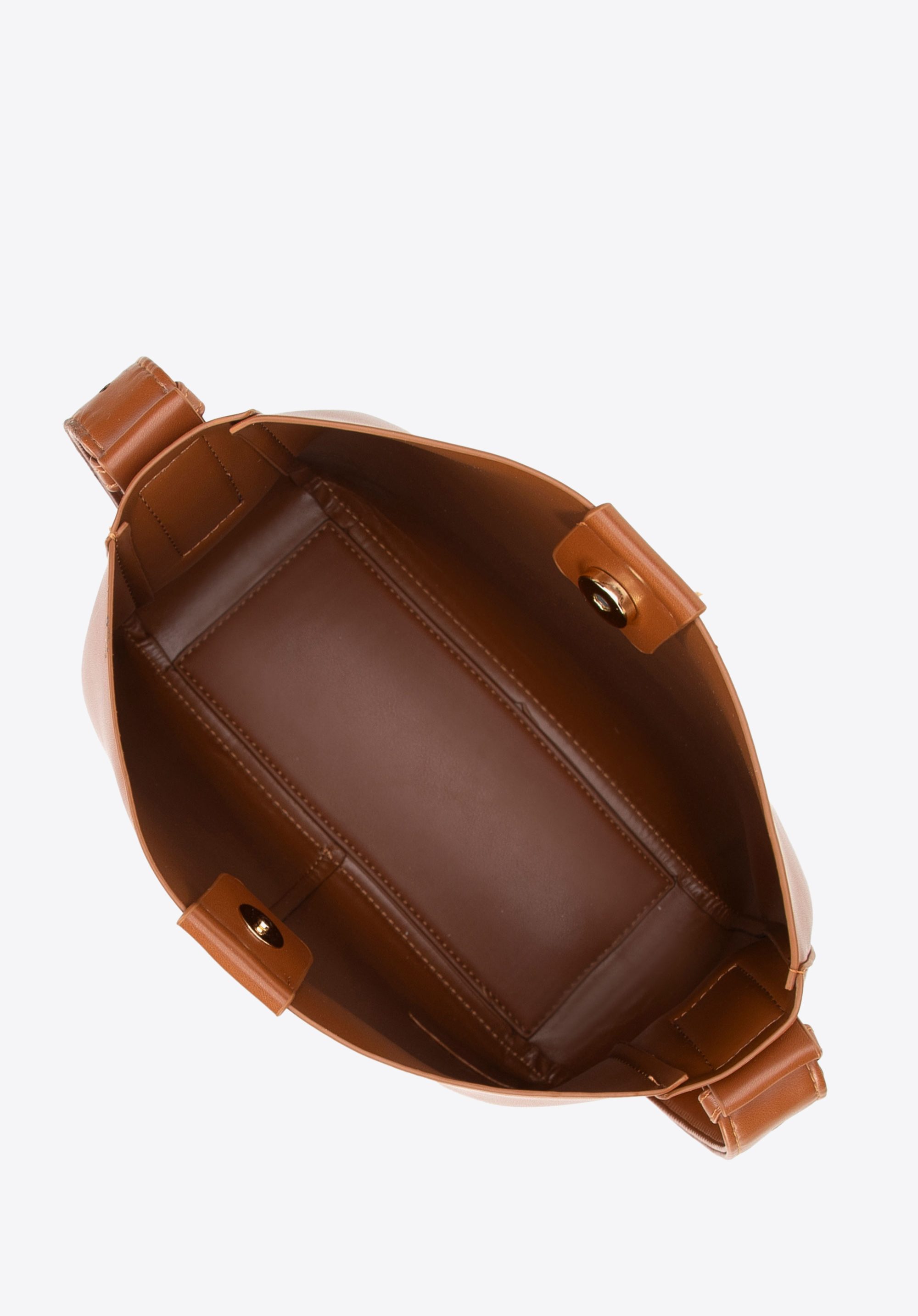 Ez az elegáns, ökobőrből készült hobo stílusú táska tökéletes választás azoknak a nőknek, akik értékelik a stílust és a praktikumot. A táska mágneses zárral rendelkezik a könnyű hozzáférés érdekében, míg az elején található diszkrét márkajelzés kifinomultságot kölcsönöz. Az állítható fogantyúnak köszönhetően a hosszát az igényeid szerint testreszabhatod, és kényelmes viseletet élvezhetsz. Belül egy kivehető tasakot találsz, amely két zsebbel – egy nyitott és egy cipzáras – van ellátva, hogy útközben is szervezetten maradhass.