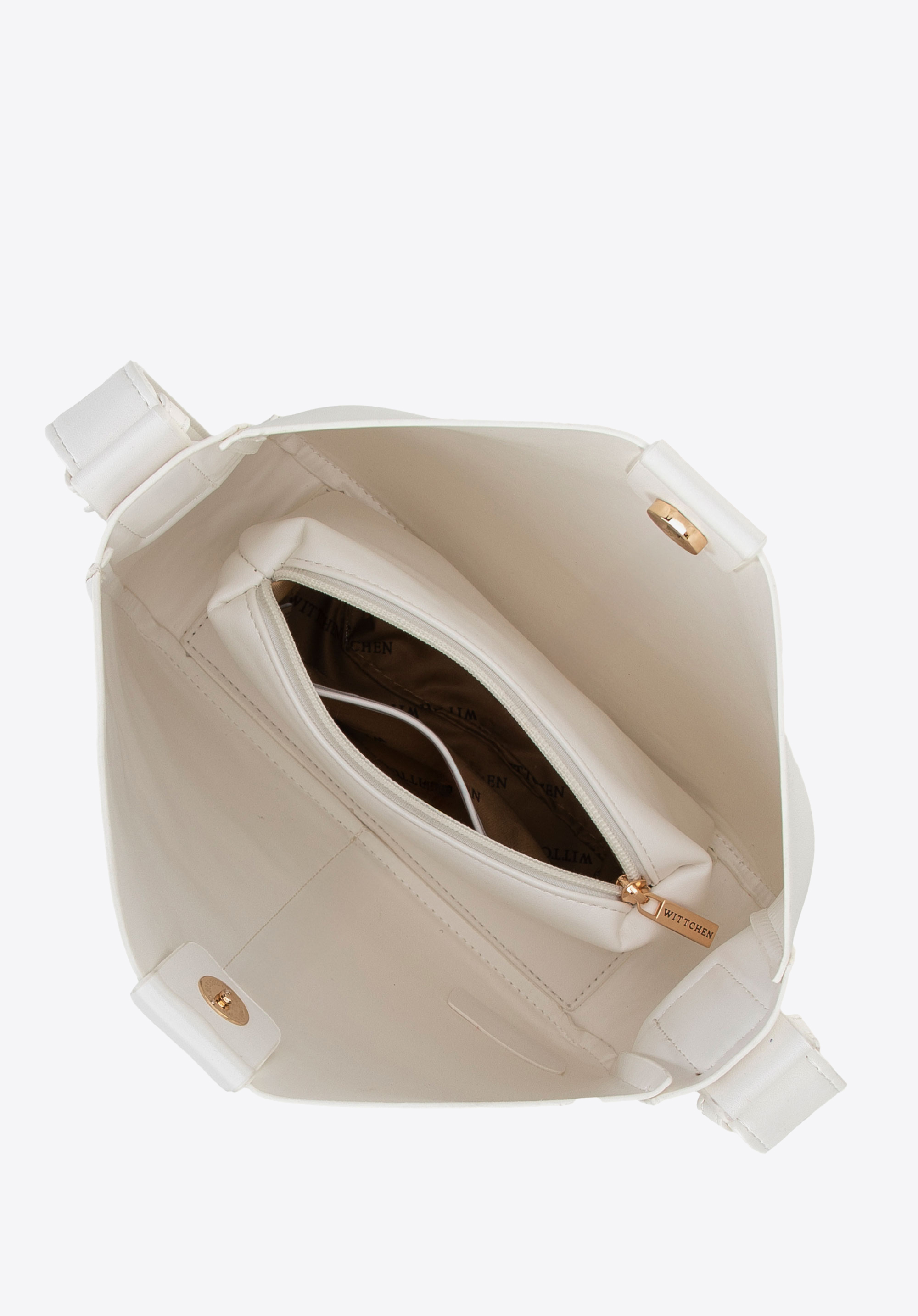 Ez az elegáns, ökobőrből készült hobo stílusú táska tökéletes választás azoknak a nőknek, akik értékelik a stílust és a praktikumot. A táska mágneses zárral rendelkezik a könnyű hozzáférés érdekében, míg az elején található diszkrét márkajelzés kifinomultságot kölcsönöz. Az állítható fogantyúnak köszönhetően a hosszát az igényeid szerint testreszabhatod, és kényelmes viseletet élvezhetsz. Belül egy kivehető tasakot találsz, amely két zsebbel – egy nyitott és egy cipzáras – van ellátva, hogy útközben is szervezetten maradhass.