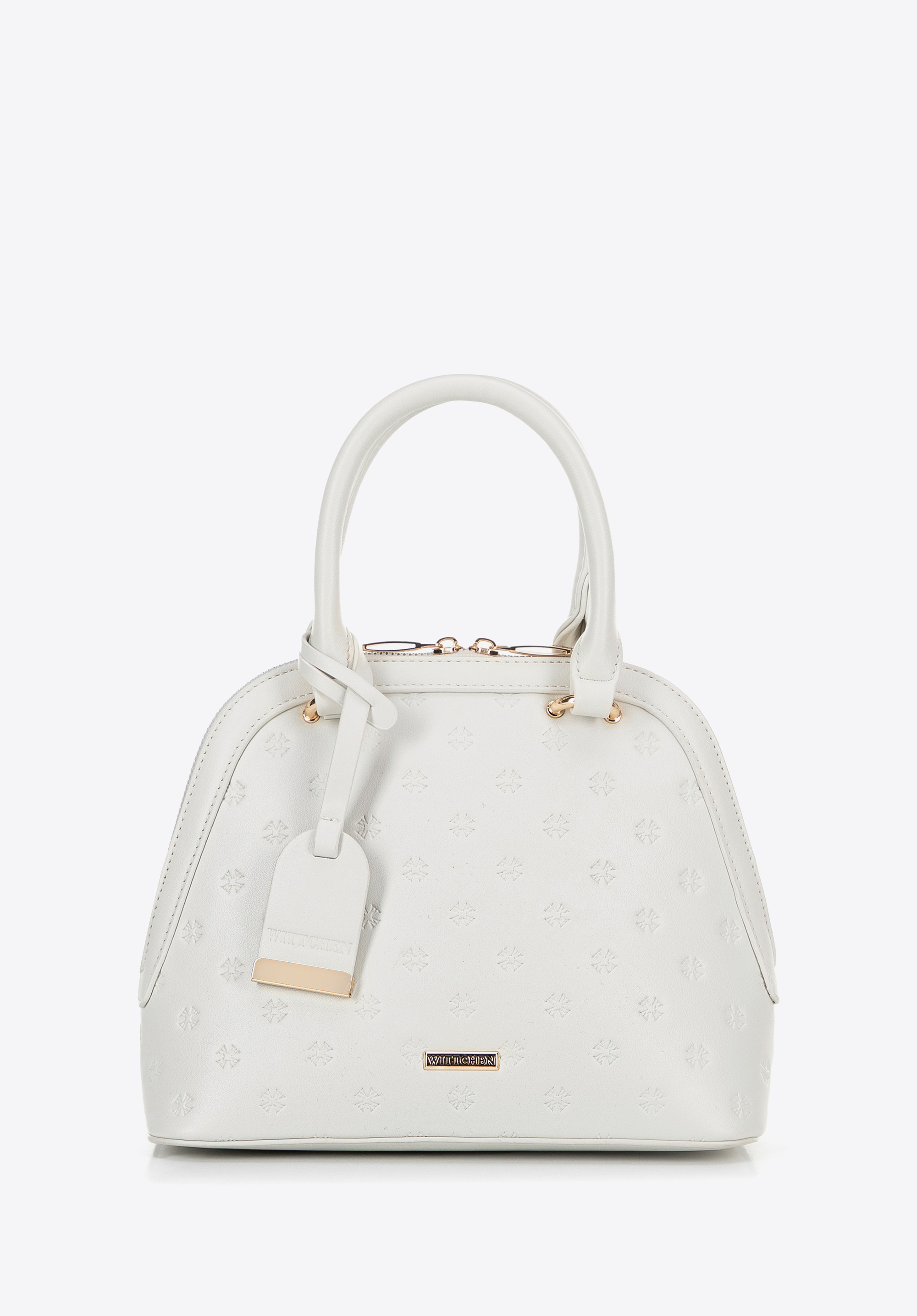 Stílusos és funkcionális – ez a kézitáska a klasszikus stílus és a modern dizájn tökéletes kombinációja. Trapéz alakú, felül keskenyedő formája könnyedséget kölcsönöz a sziluettnek és kiemeli annak elegáns karakterét. Ökobőrből készült, mindennapi használatra és különleges alkalmakra egyaránt tökéletes. A két fogantyú gondoskodik a kézben tartás kényelméről, a levehető, állítható pánt pedig lehetővé teszi a vállon való viselést. Az egész táska cipzárral van rögzítve, amely védi a tartalmat és modern megjelenést kölcsönöz a dizájnnak.