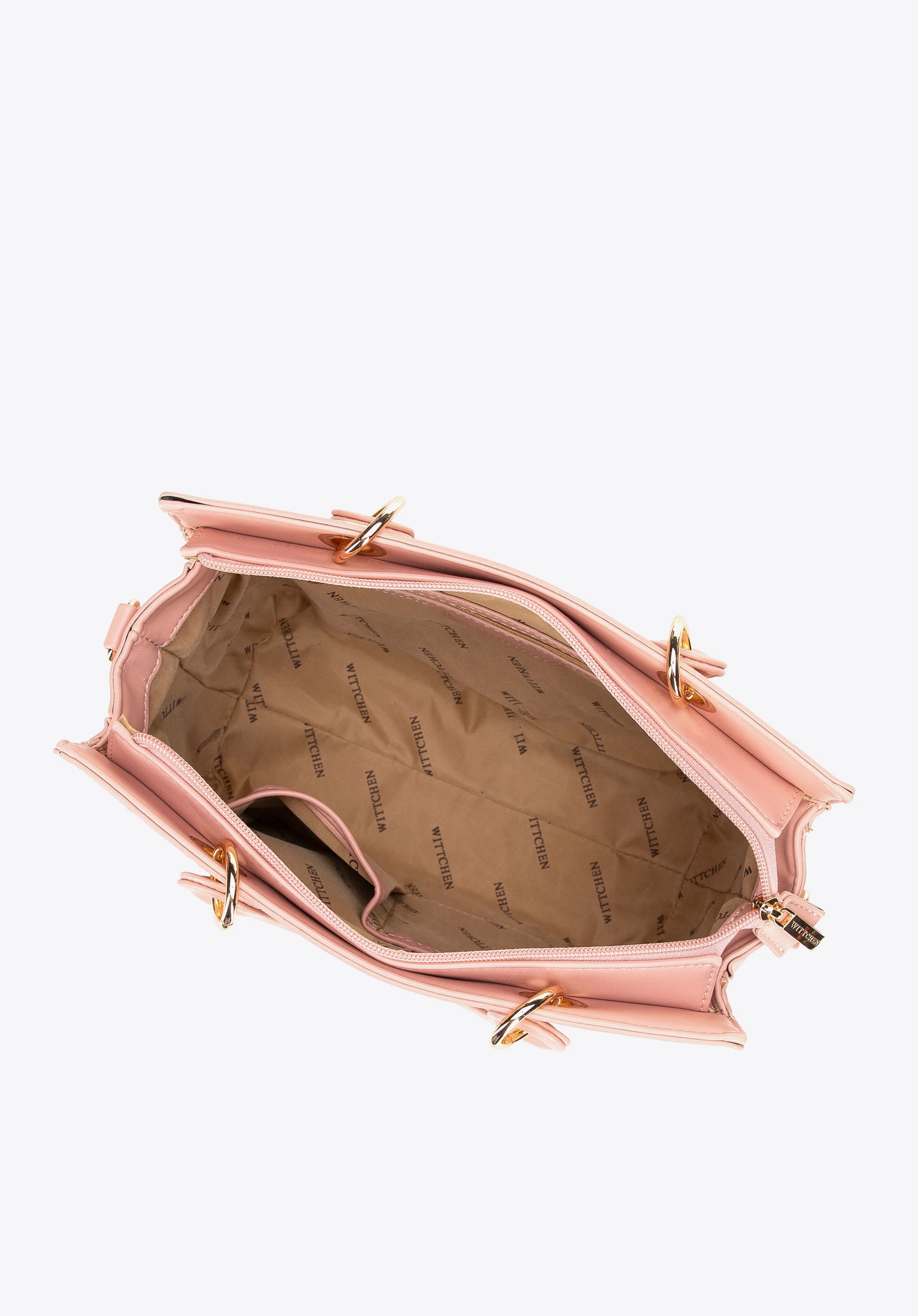 - Két fogantyú: A fényes részletekkel ellátott kényelmes fogantyúknak köszönhetően a táskát kézben vagy vállon is viheted.
