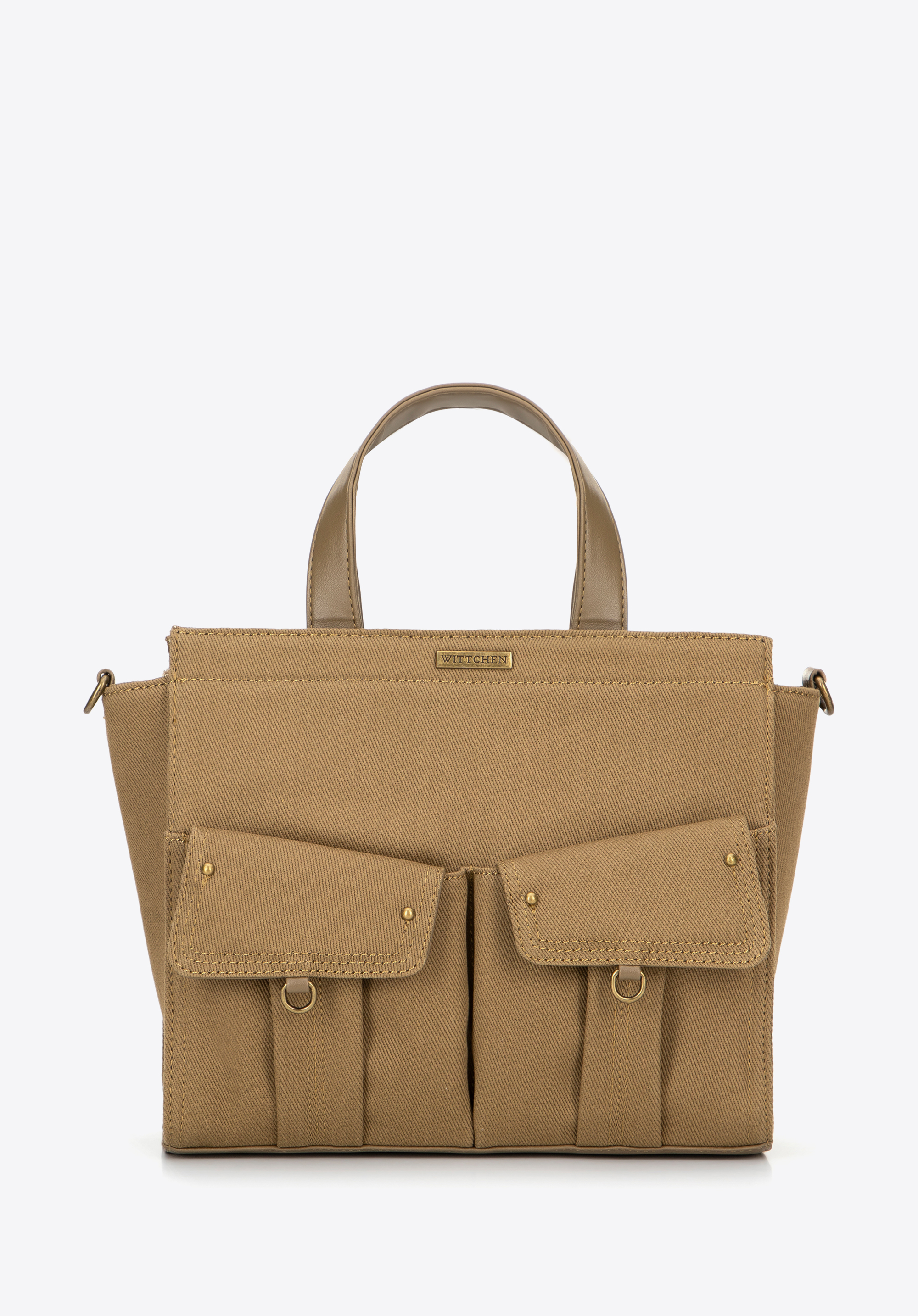 Bemutatjuk a táskát, amely a klasszikus dizájnt a modern funkcionalitással ötvözi. Pamutból , poliészterből és műbőrből készült, így tartós és ellenáll a napi használatnak. Két ökobőrből készült fogantyú biztosítja a kényelmes hordozást a kézben, az állítható pánt pedig kényelmes vállviselést tesz lehetővé. A kézitáska elején két stílusos, mágneses záródású füles zseb található, amelyek tökéletesek a kéznél tartani kívánt apró tárgyak számára.