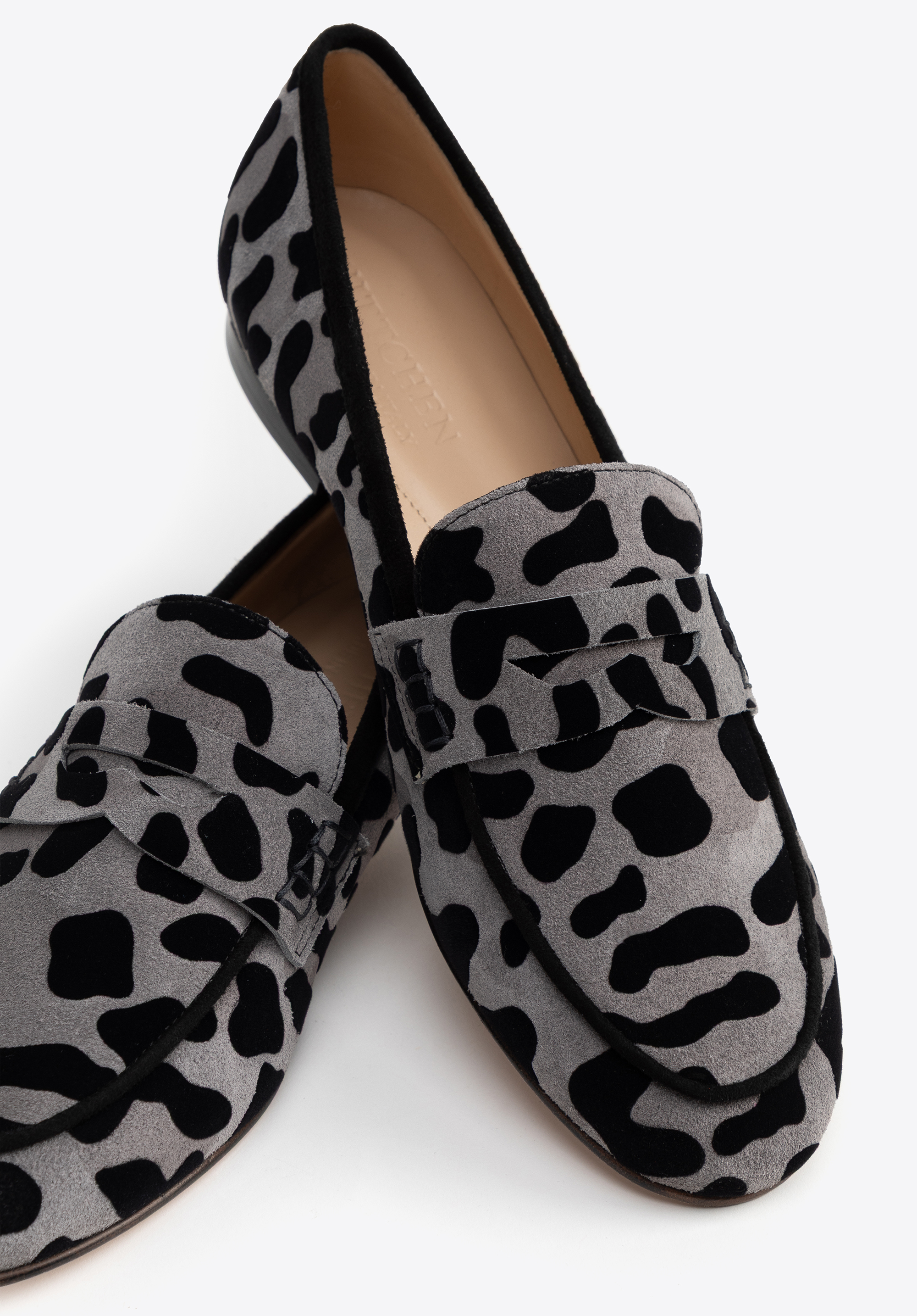 Válassz olyan eleganciát, amely soha nem megy ki a divatból! Ez a mokaszin a finom szürke-fekete párducmintát ötvözi a kivételes mindennapi kényelemmel. Természetes bőrből készült, tartósságot és kiváló viselési élményt kínál. A bőr talpbetét és bélés maximális puhaságot és légáteresztést biztosít, tökéletesen alkalmazkodik a láb formájához. Időtlen dizájnjával és szakszerűen kialakított sziluettjével ez a mokaszin számtalan viseletet könnyedén kiegészít.