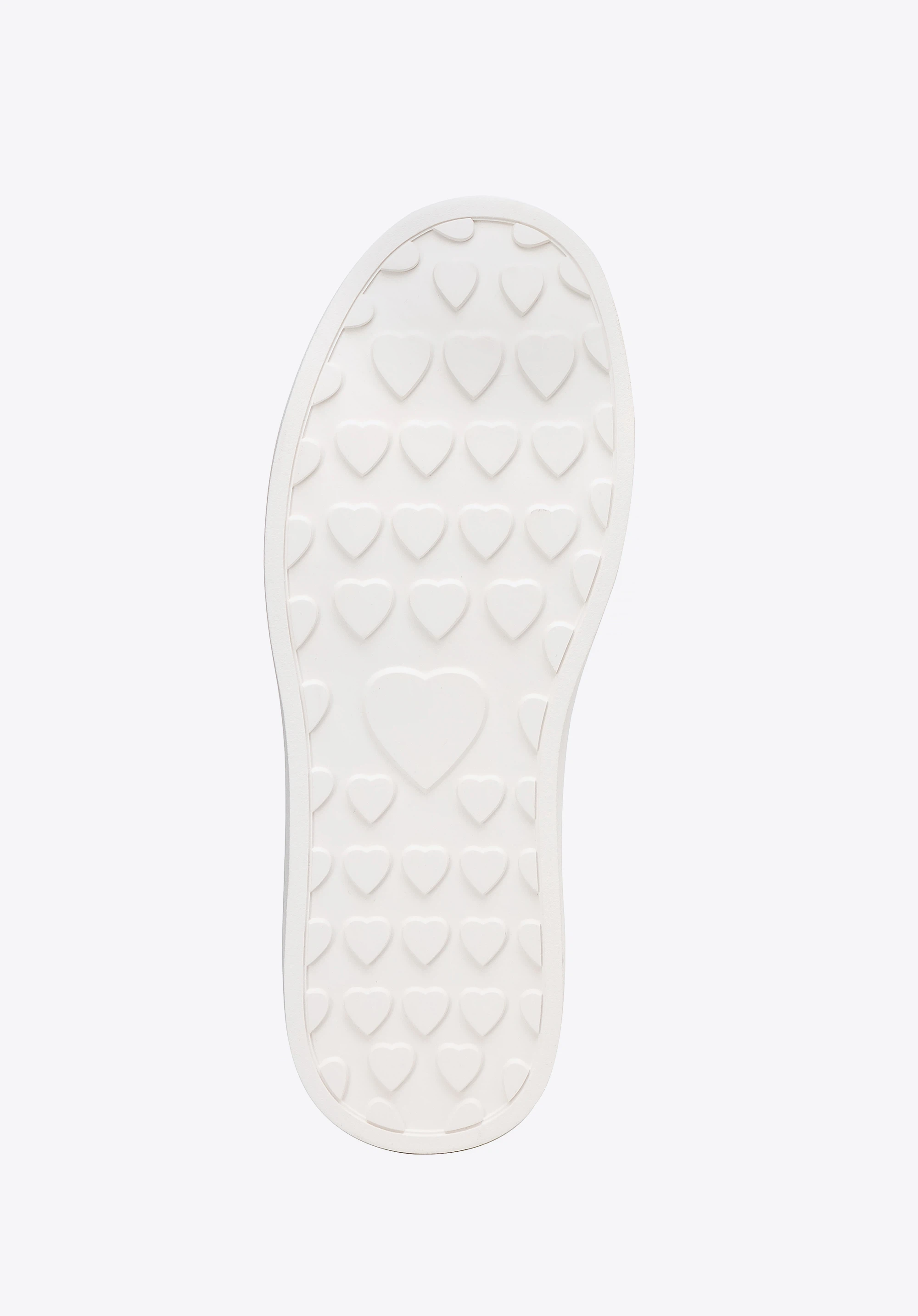 Szív alakú barázdák: Egyedülálló részlet a talpon, amely jellegzetes és eredeti stílust ad a tornacipőnek.