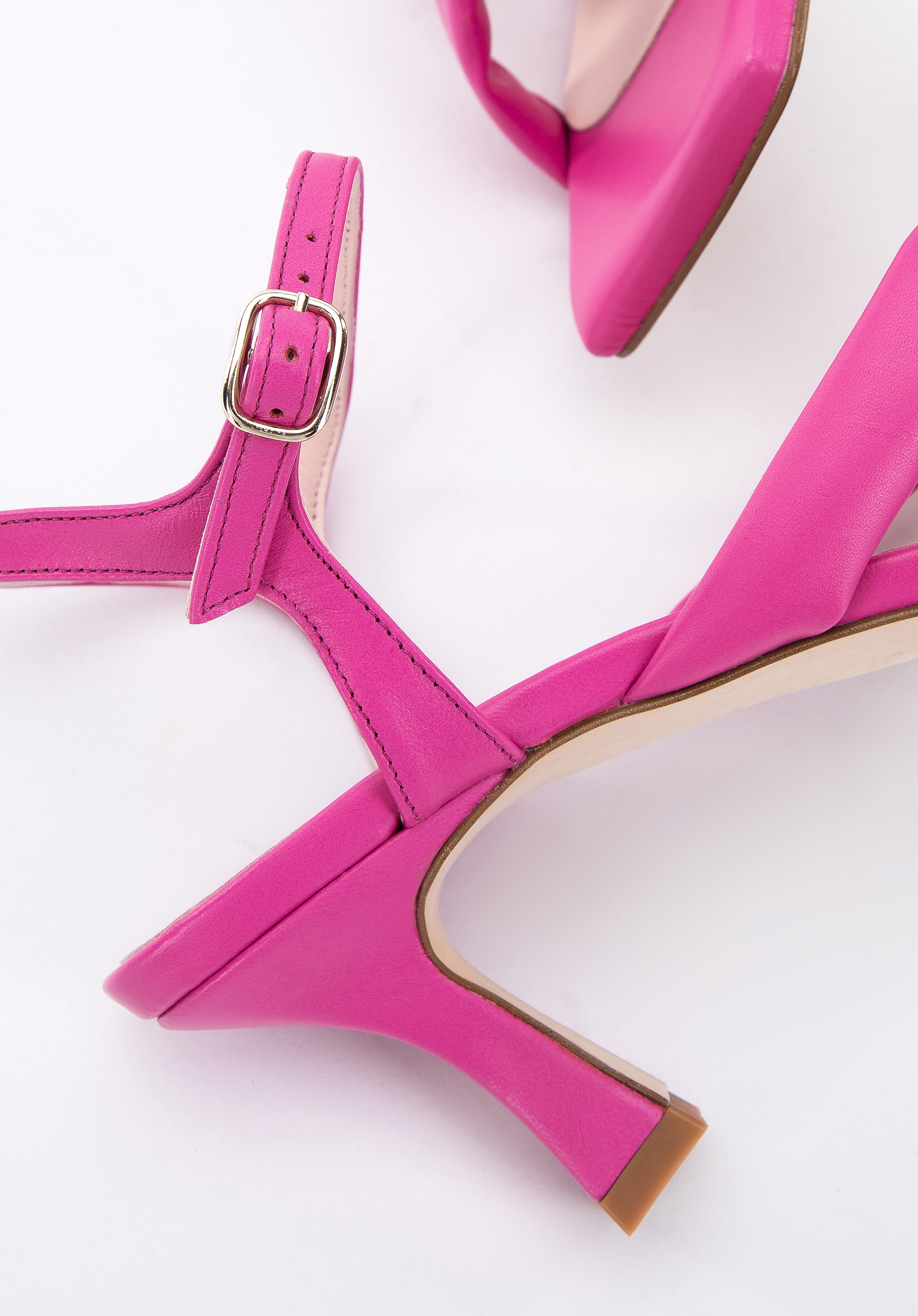 Ezek a divatos és kényelmes szandálok minden nő számára tökéletesek, akik szeretnek jól kinézni. Spanyolországban készült, kiváló minőségű természetes bőrből. Tűsarokkal a még vonzóbb megjelenés érdekében. A bokacsatos pánttal és a szögletes orrral ezek a slip-on szandálok rendkívül kényelmes viseletet biztosítanak. Ez a klasszikus dizájn karaktert kölcsönöz egy A-vonalú ruhának, valamint egy bővebb fazonú nadrágnak és ingnek. Ezek a női szandálok rendkívül kifinomult és nőies cipők.