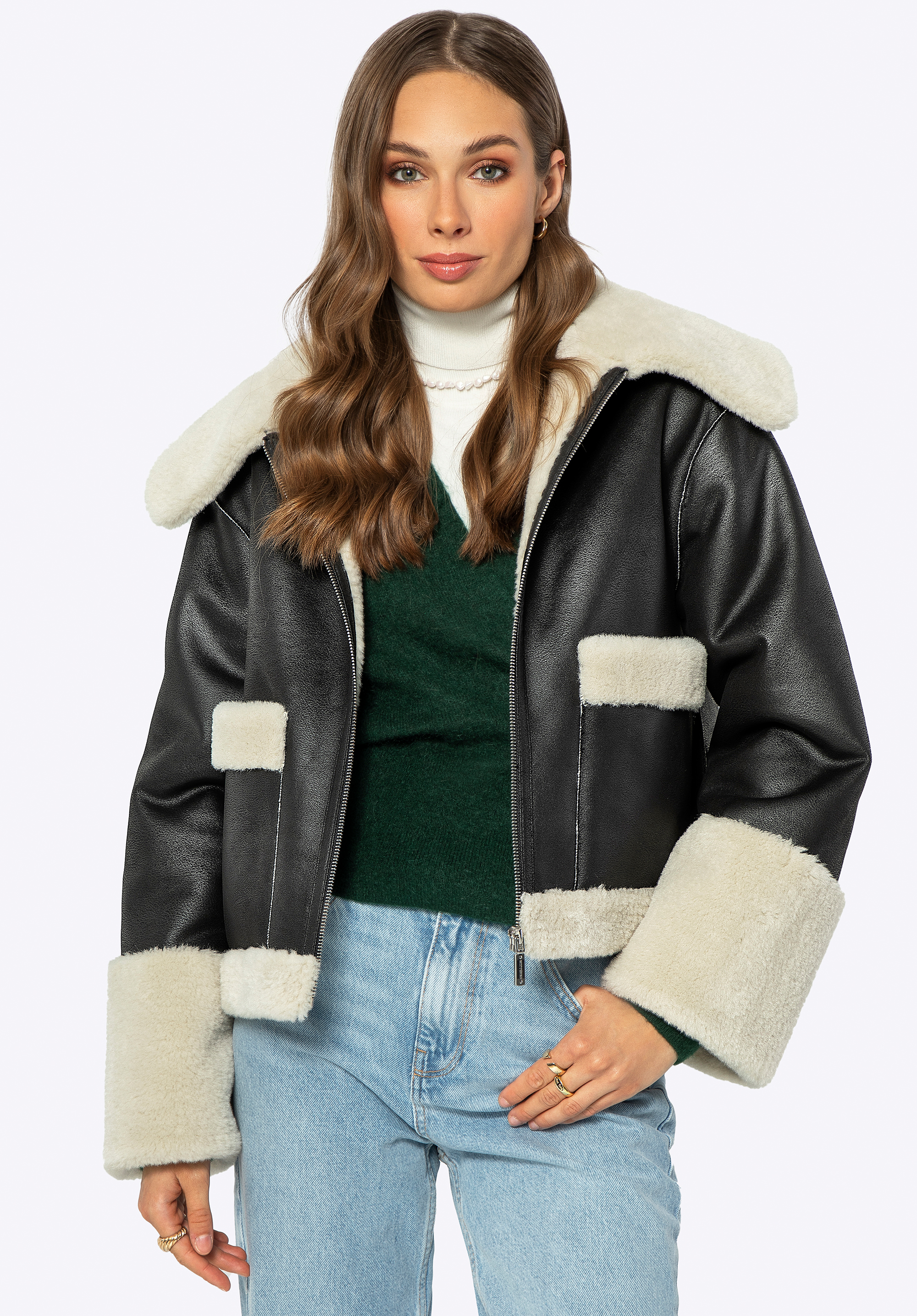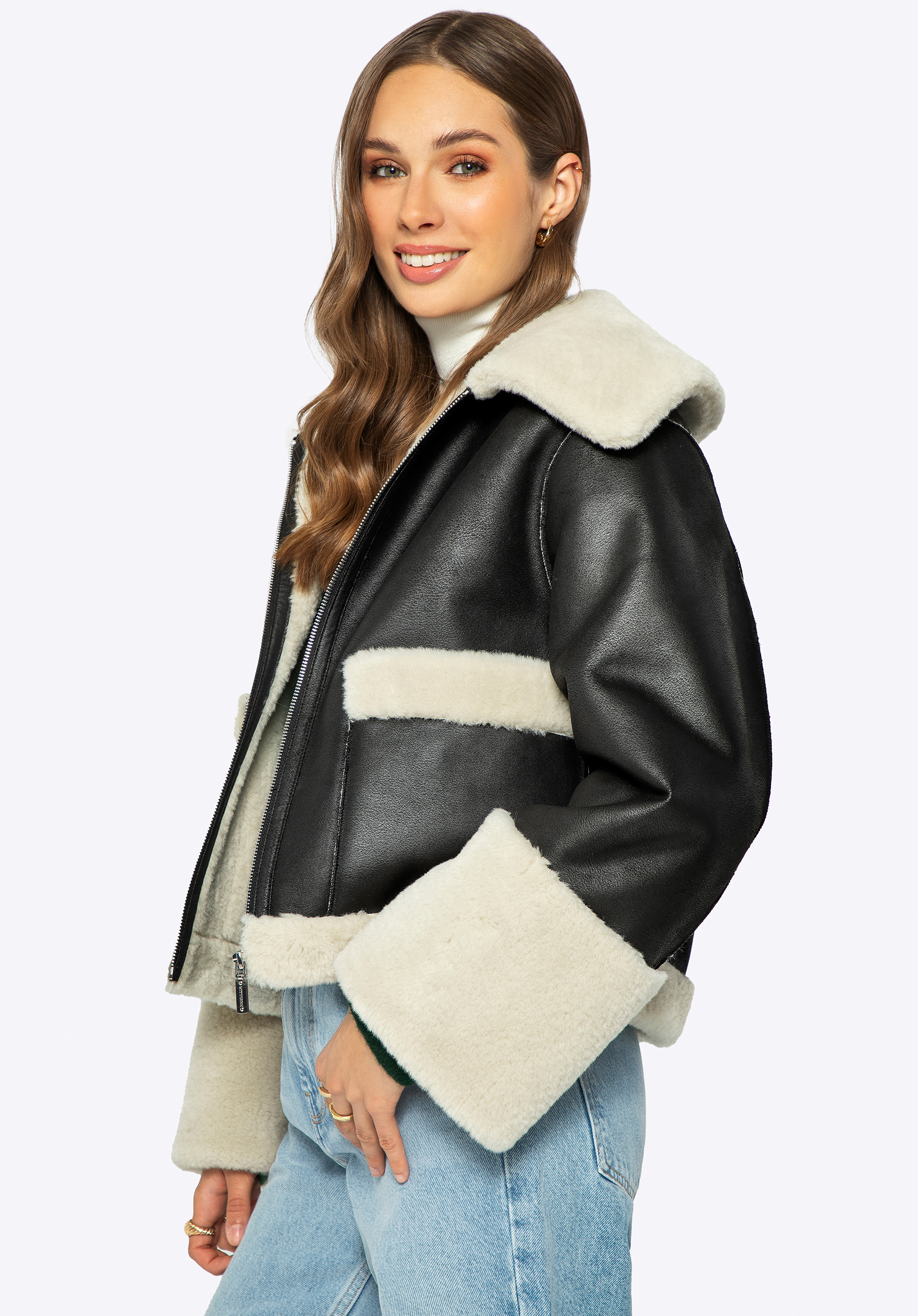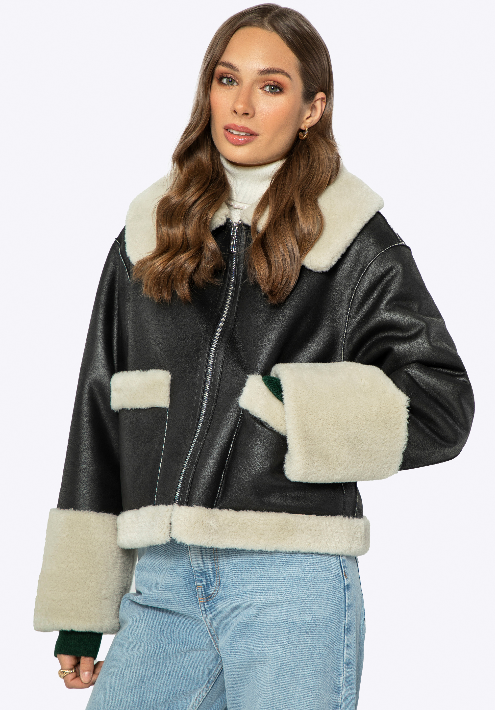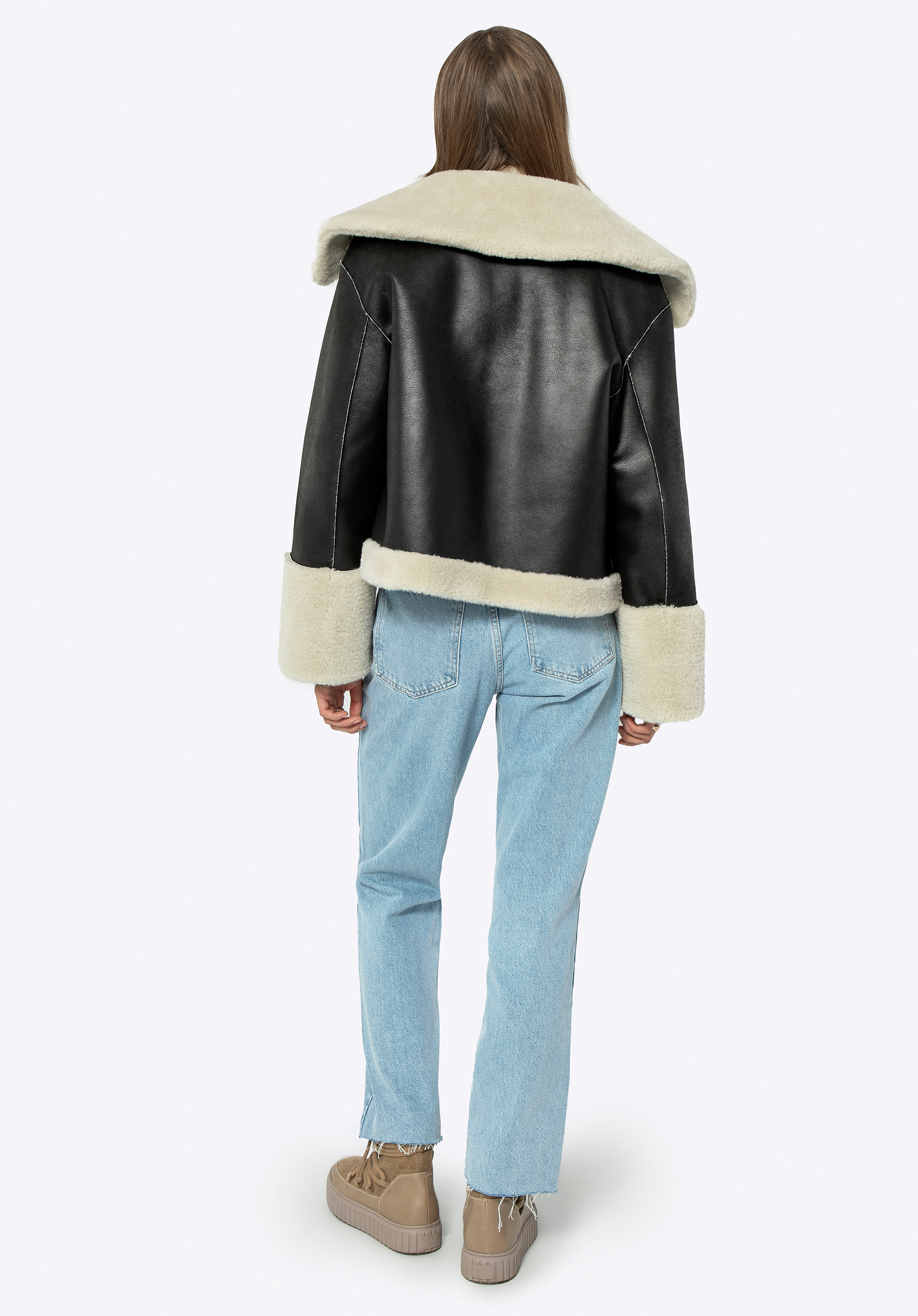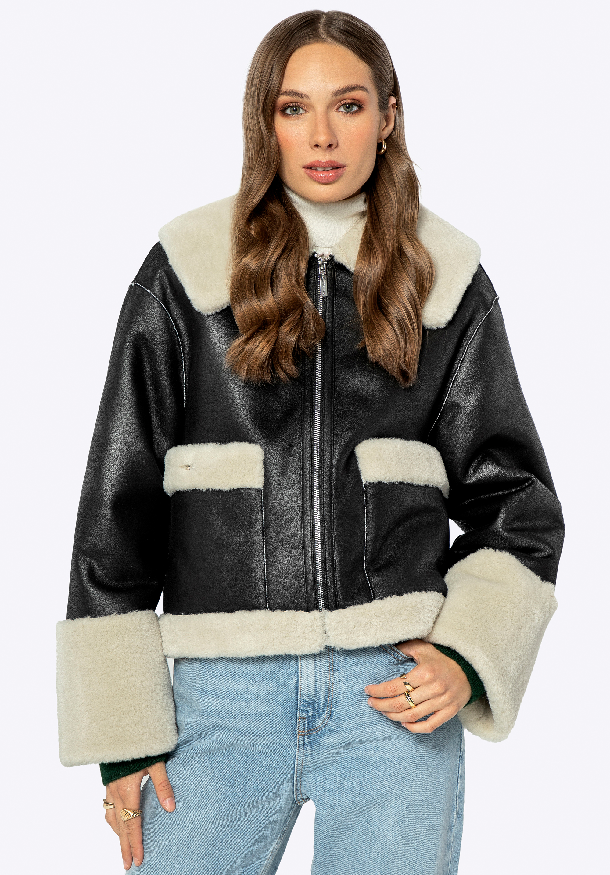 - Anyaga: Puha és finom műszőrme a kabát bélésén, gallérján, zsebeiben és alján.