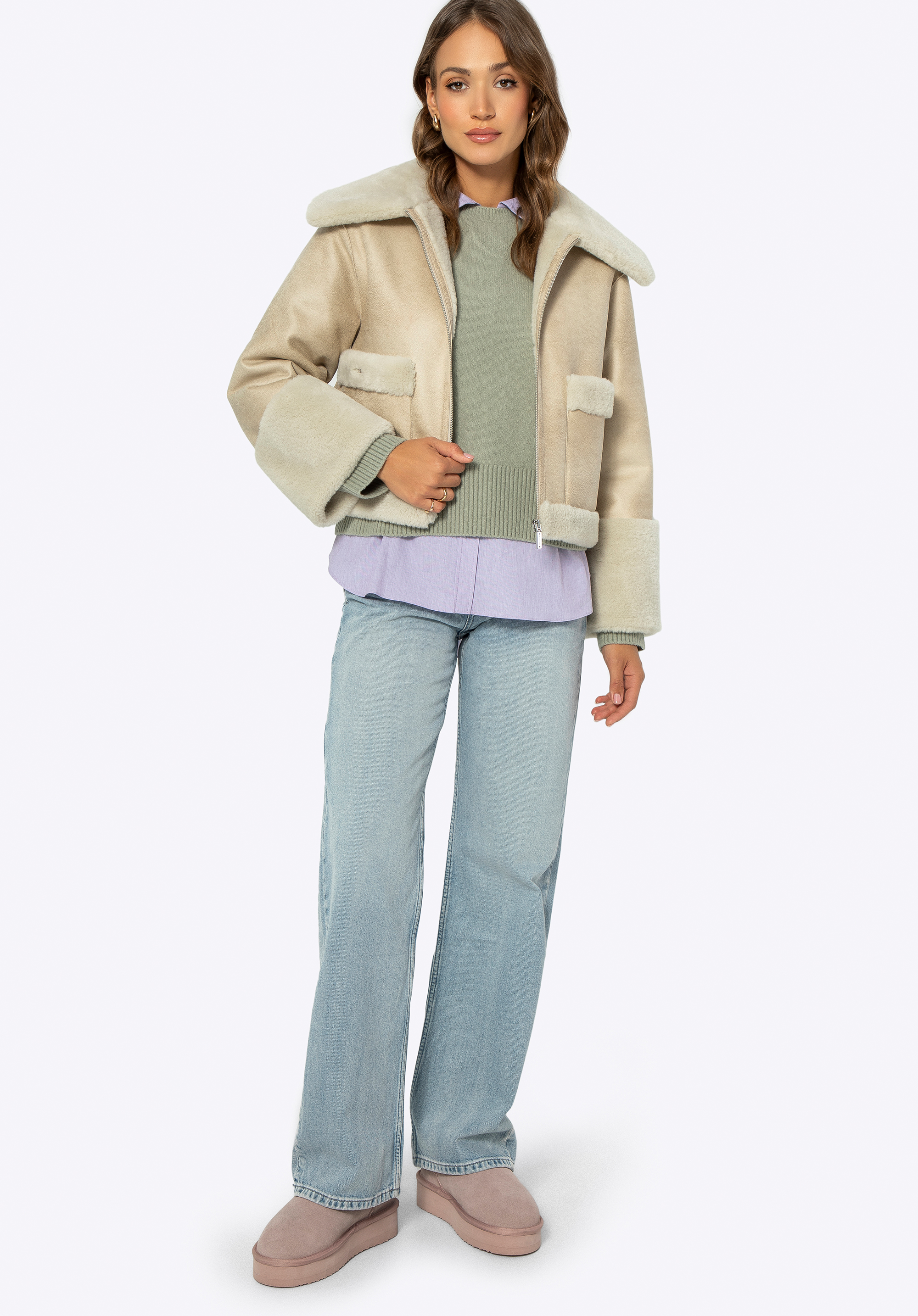 Tekintsd meg legújabb, műszőrme bélésű női kabátunkat – tökéletes azok számára, akik nagyszerűen szeretnének kinézni, miközben kényelmesek maradnak. Nem csak melegen tart, hanem egyedi stílust is kölcsönöz ruhatáradnak. Kabátunk párnázott gallérral rendelkezik, amely extra védelmet nyújt a szél és a hideg ellen, így még a legkiszámíthatatlanabb időjárási napokon is kényelmet biztosít. A finom műszőrme nem csak eleganciát, hanem otthonosságot is kölcsönöz, így tökéletes téli sétákhoz és esti sétákhoz. A kabát cipzárral záródik és két téglalap alakú zsebbel rendelkezik, amelyek biztosan tetszeni fognak azoknak, akik értékelik a funkcionalitást. Ideálisak kulcsokhoz, telefonokhoz vagy kis tárgyakhoz, amelyeket kéznél szeretnél tartani.