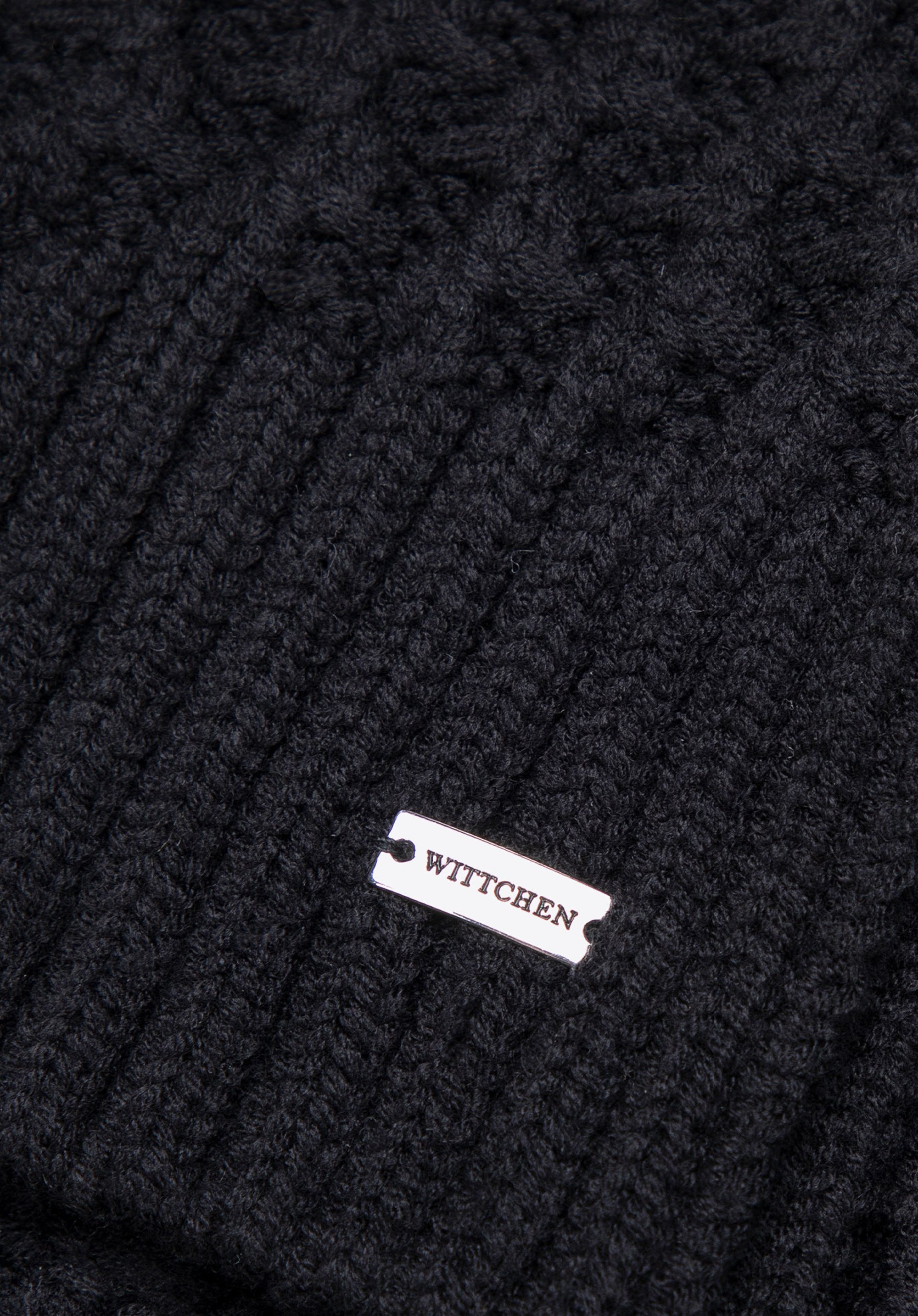 - Dekoratív kötött minta Textúrát és vizuális könnyedséget kölcsönöz, kiemelve a kiegészítő nőies jellegét.