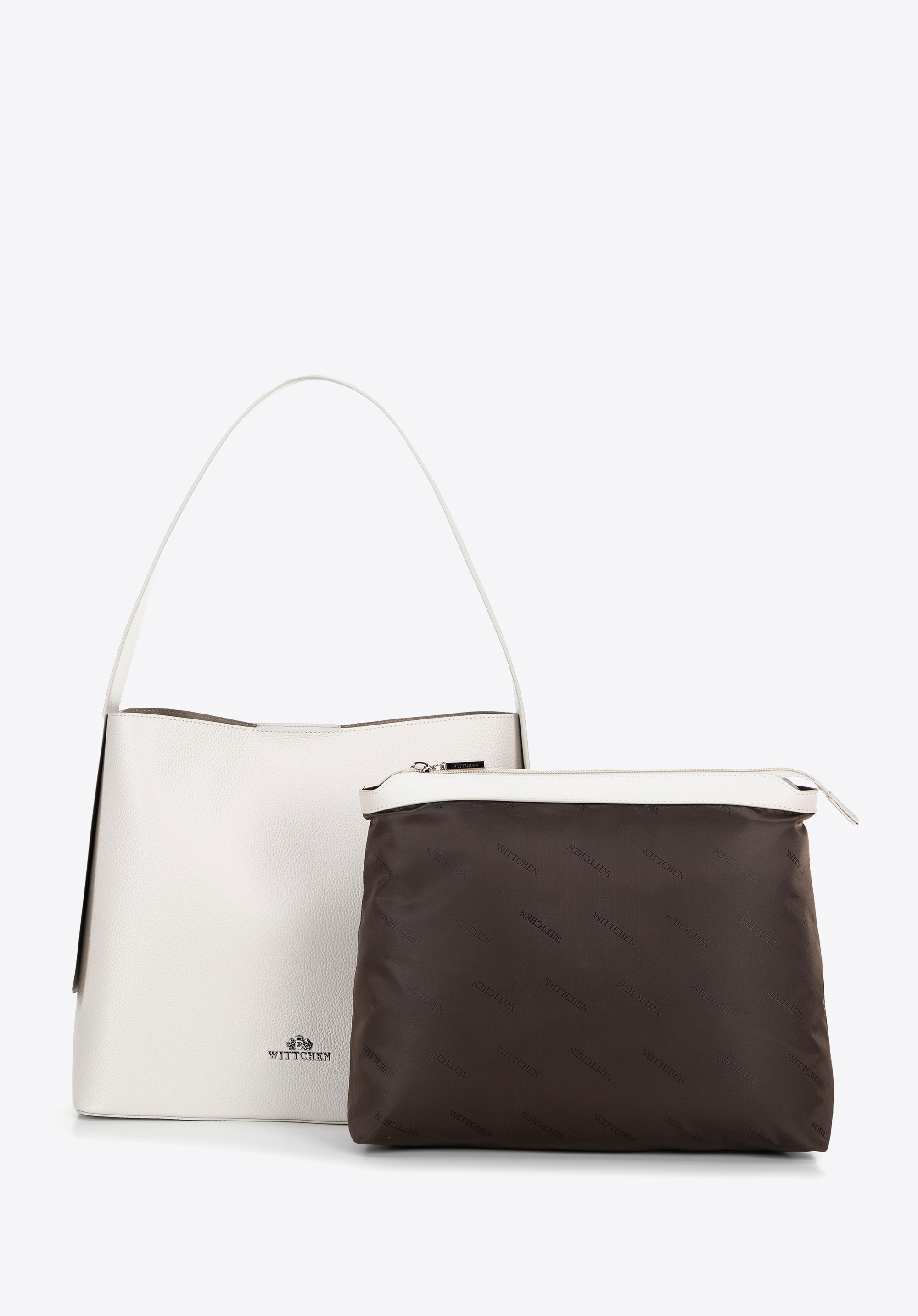 Elegáns, funkcionális és időtlen - női shopper táskánk a klasszikus és a modern kombinációja. Természetes bőrből készült, amelyet tartósság és elegáns megjelenés jellemez. A természetes bőrt utánzó mikroszálas fogantyú kényelmes hordozást biztosít, míg a belsejében található kivehető, nagyméretű, cipzáras tasak a belső tér rendszerezését teszi élvezetessé.