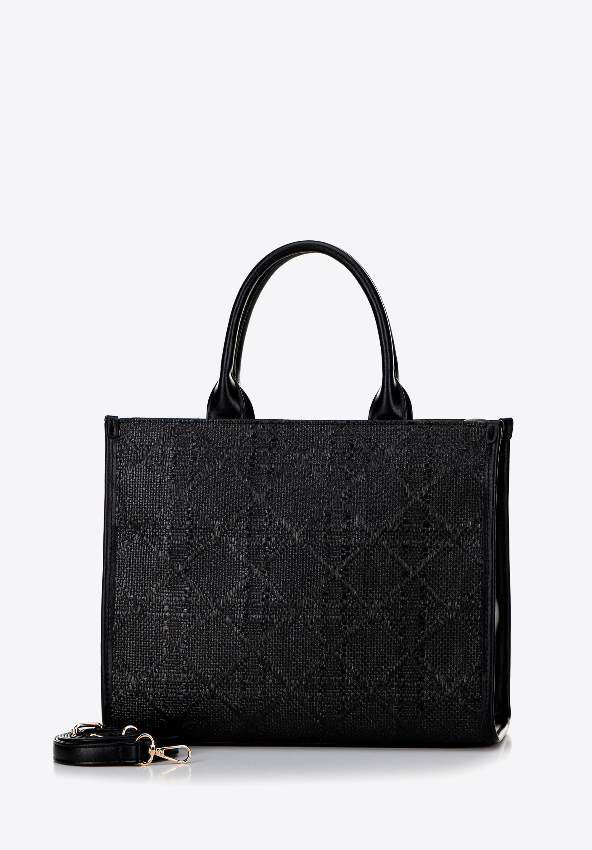 Fedezd fel az elegáns shoppertáskát, amely ötvözi a funkcionalitást a modern dizájnnal. Polipropilénből (fonott) és poliuretánból (ökobőr) készült, így garantálja a tartósságot és a mindennapi használatnak való ellenállást. A táska biztonságos cipzárral záródik, amely kényelmes hozzáférést biztosít a belső térhez. Belül három zseb található, köztük egy cipzáras, amely ideális az apróbb tárgyak tárolására. A két ökobőr fogantyú lehetővé teszi, hogy a táskát kényelmesen lehessen kézben vagy vállon hordani. A stílusos szabásnak köszönhetően a táska mindennapi és formálisabb öltözékhez egyaránt illik.