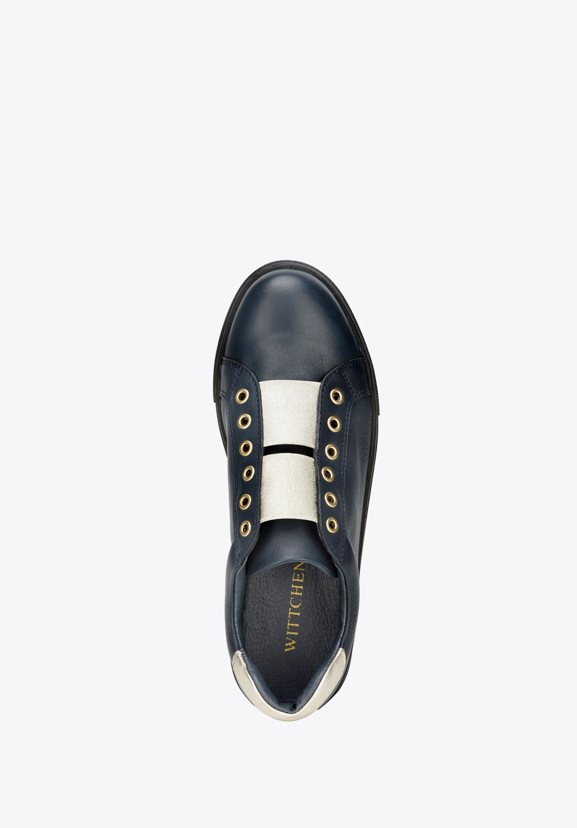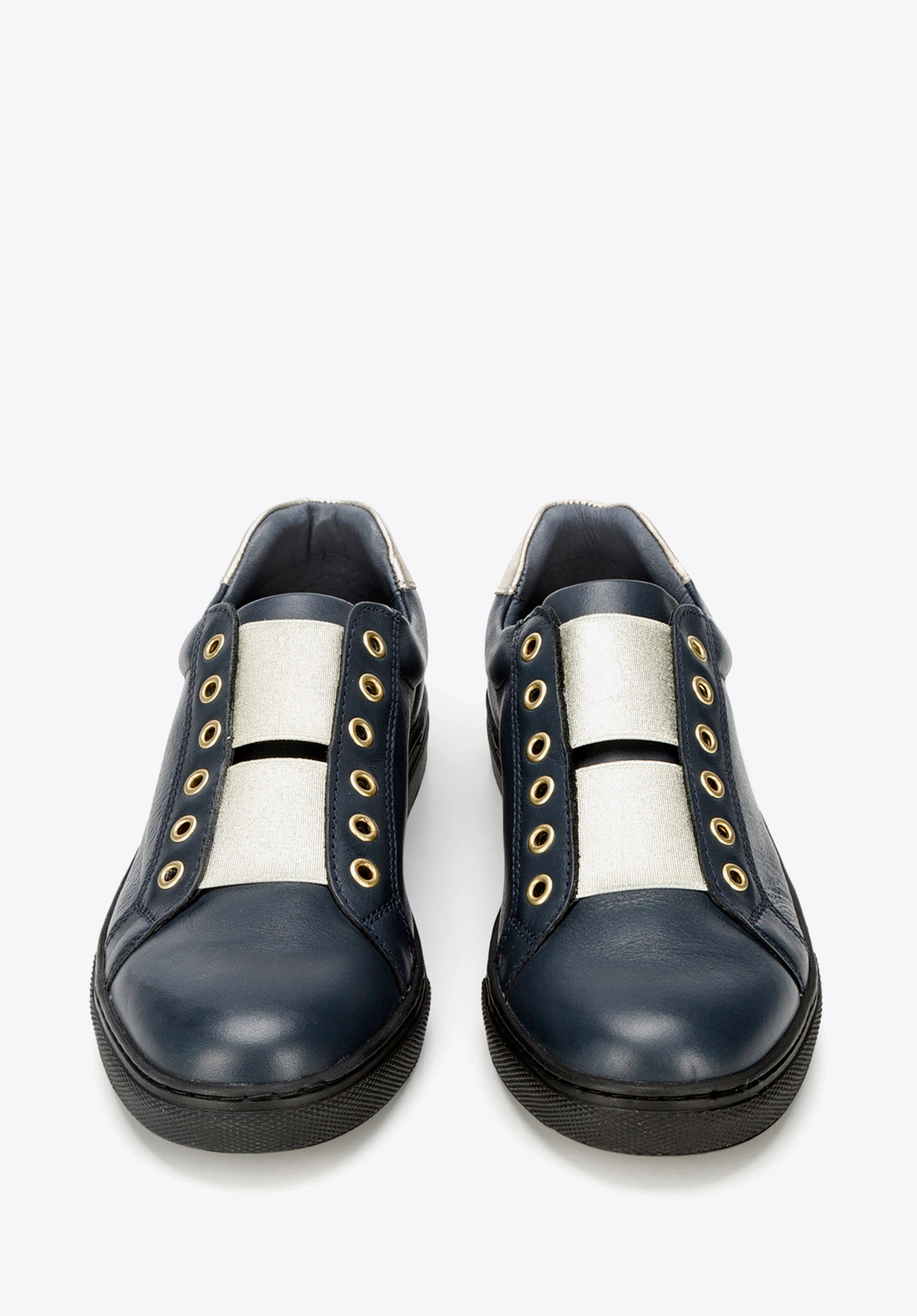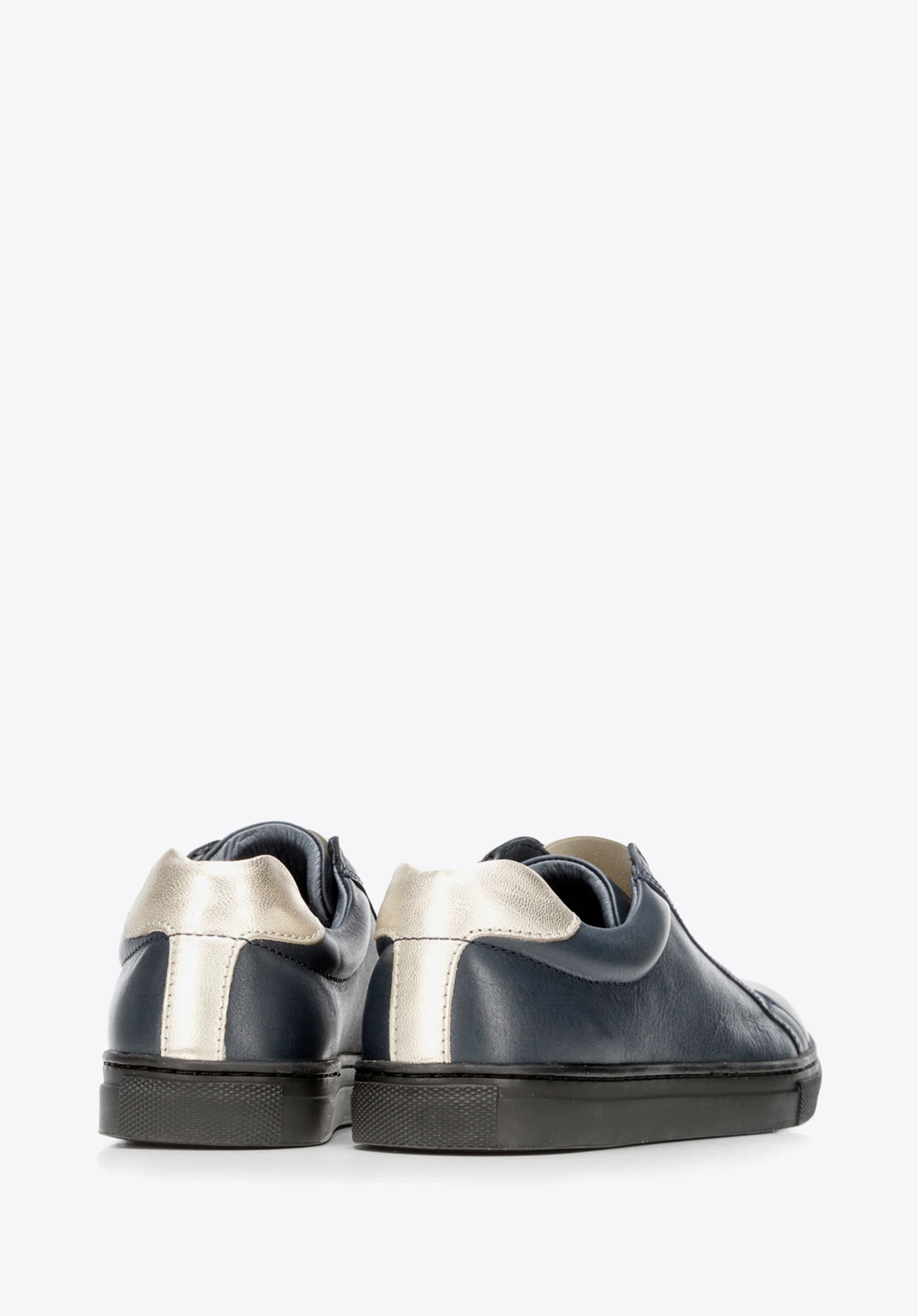 A sneakers cipők évek óta nagyon népszerűek a nők és a férfiak körében is. Ez a modell a sportcipők jelenlegi trendjeinek és funkcionalitásának a kombinációja. Remekül mutatnak a lábon, és nagyon kényelmes viselet. Kiváló minőségű szemes bőrből készültek. A cipőfűző aszimmetrikus arany színű lyukai csak dekorációként szolgálnak. Ezek a női rugalmas cipők tökéletesek a mindennapi viselethez.