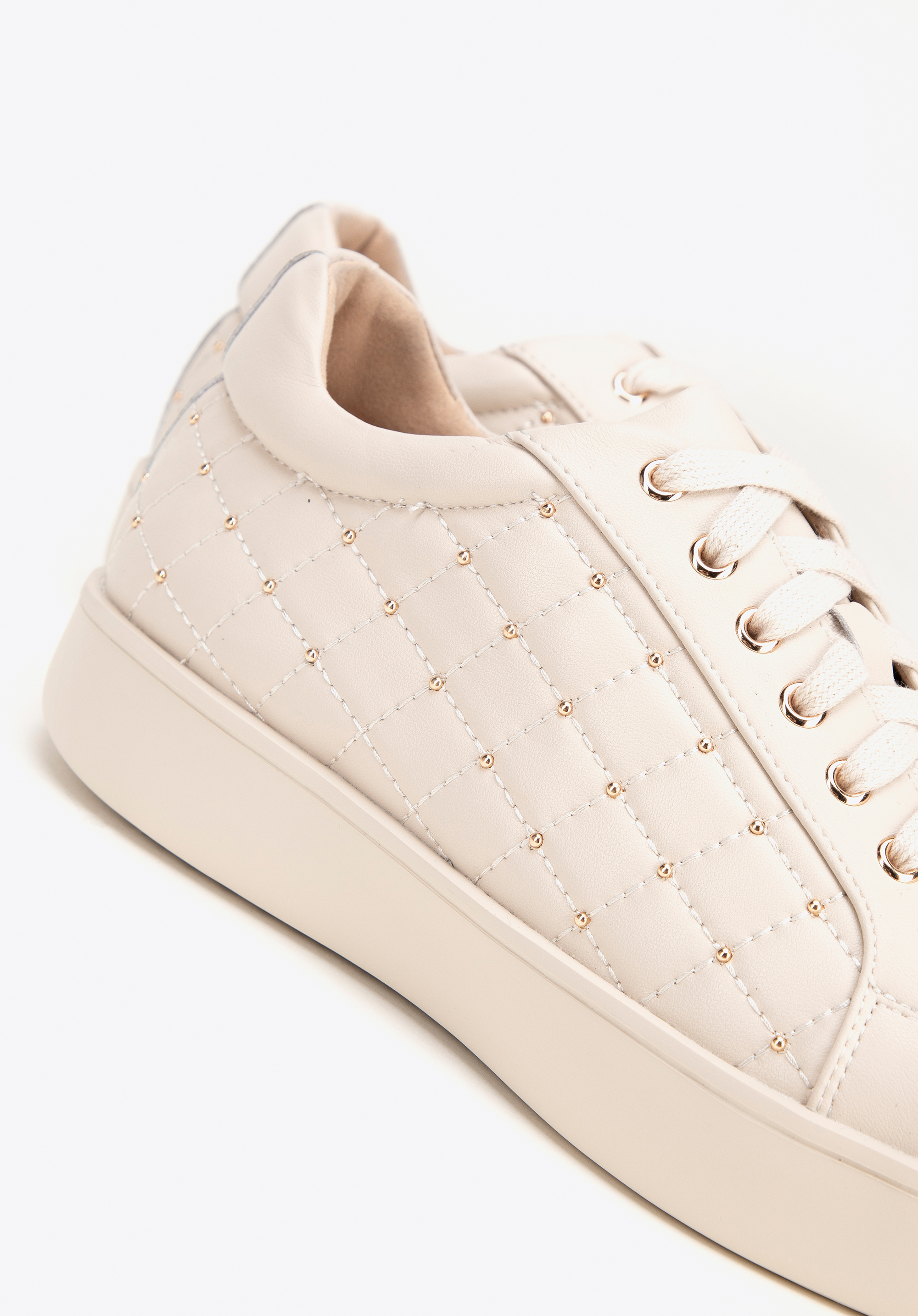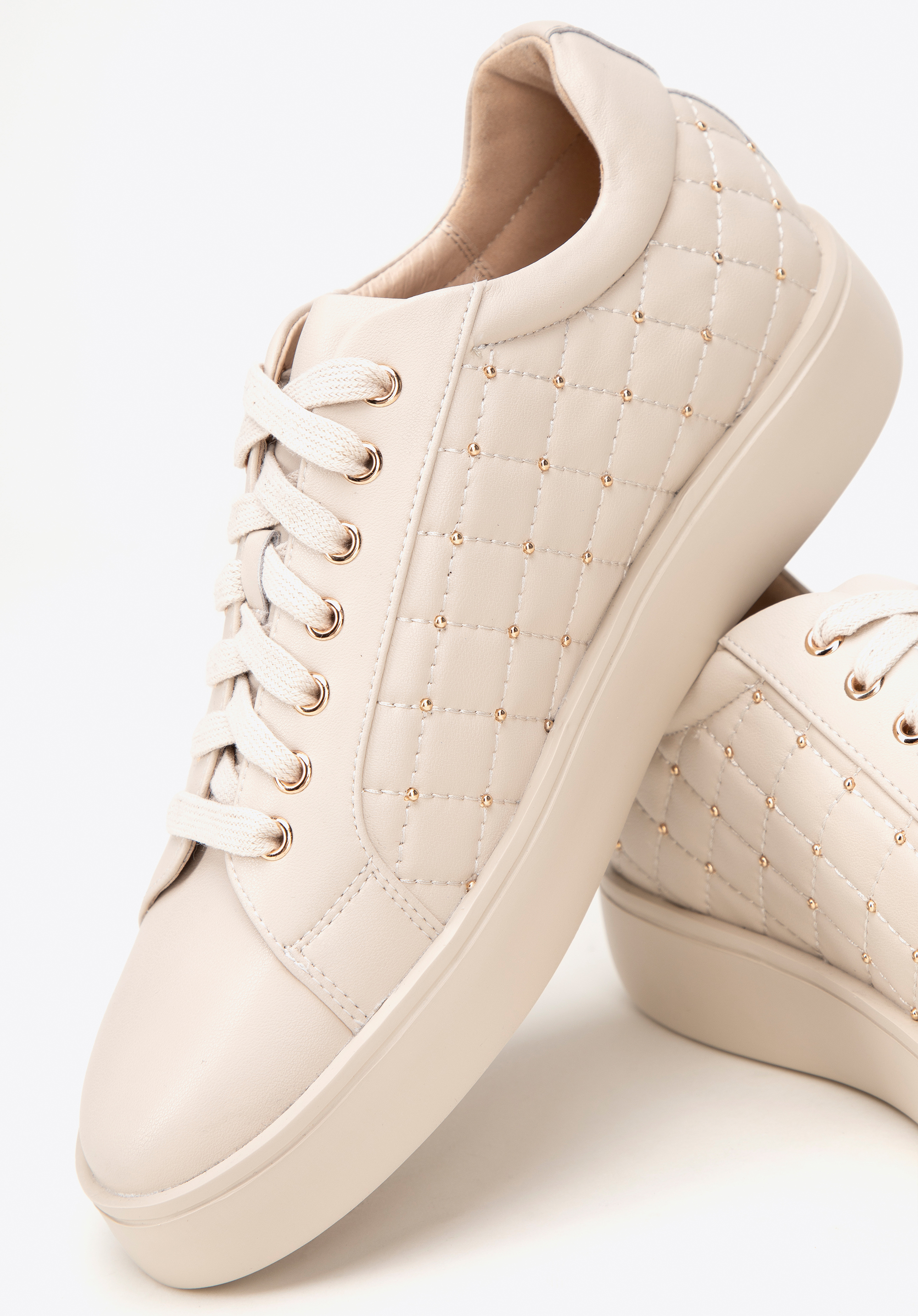 Válassz eleganciát a kényelemmel kombinálva a bőrből készült női edzőcipőinknek köszönhetően. Pontosan olyan modern nők számára készült, akik értékelik a stílust és a kényelmet egyaránt. Ez a cipő kiválóan kiegészít minden ruhatárat, és egy csipet luxust adnak minden ruhához. A lekerített orr finom eleganciát kölcsönöz a cipőnek, időtlen, nőies megjelenést kölcsönözve. A steppelt felsőrész csillogó szegecsekkel feltűnő részlet, amely egyedi, divatos karaktert kölcsönöz a cipőnek.